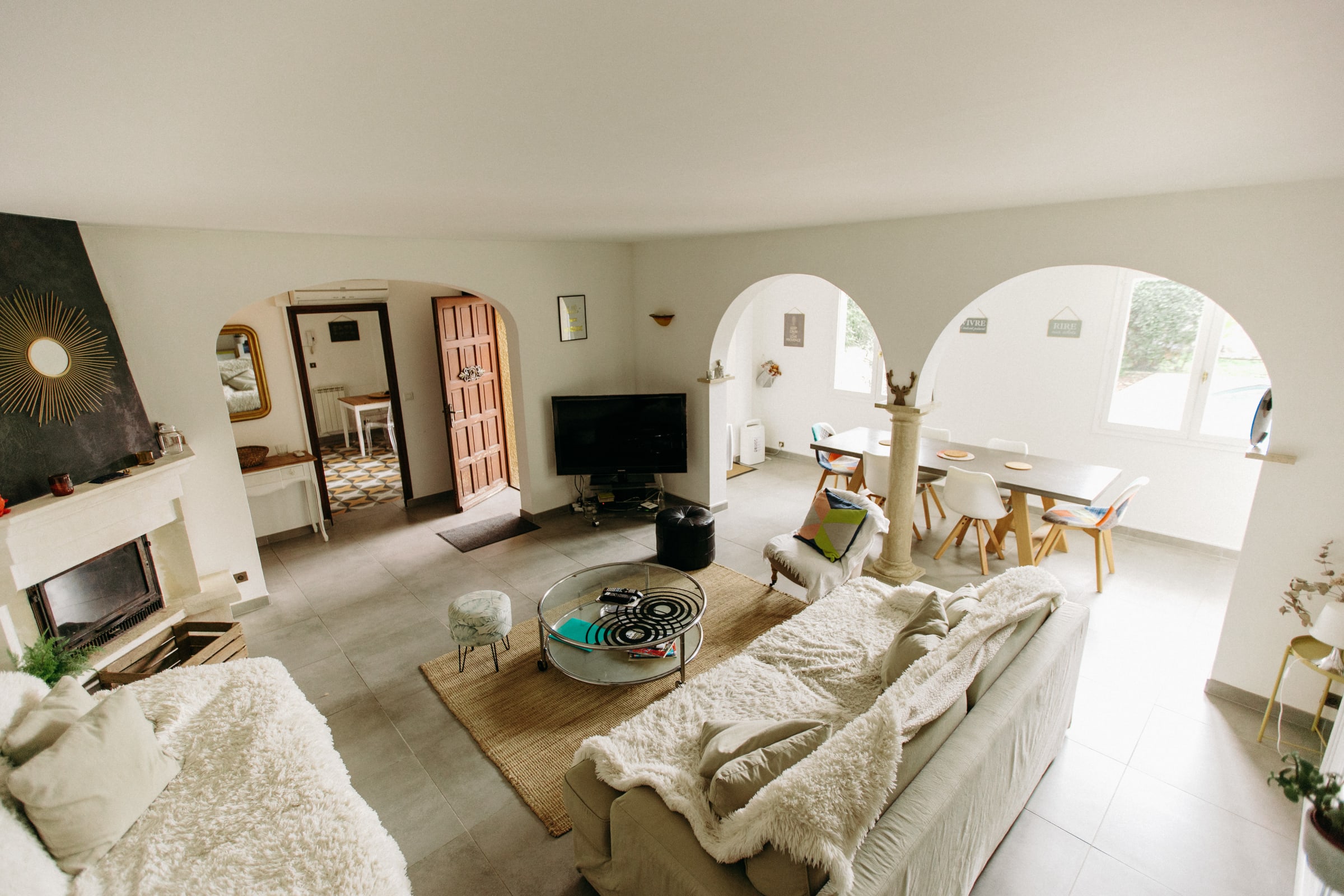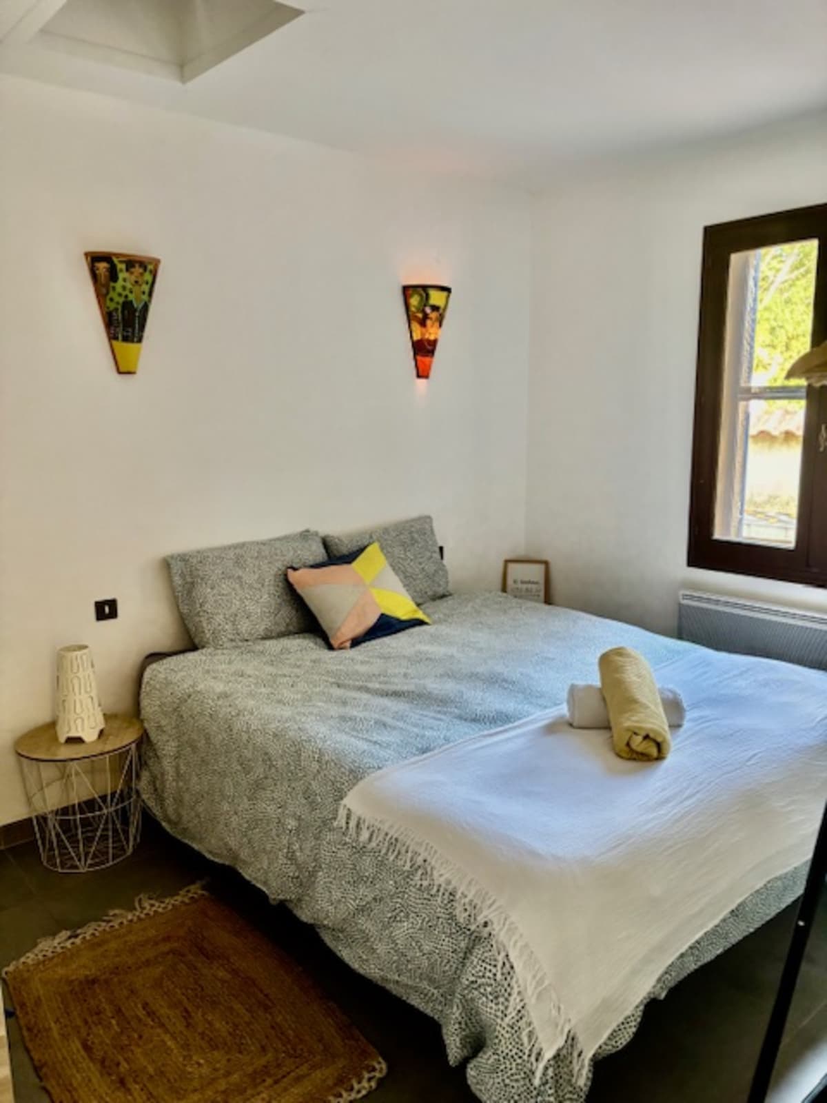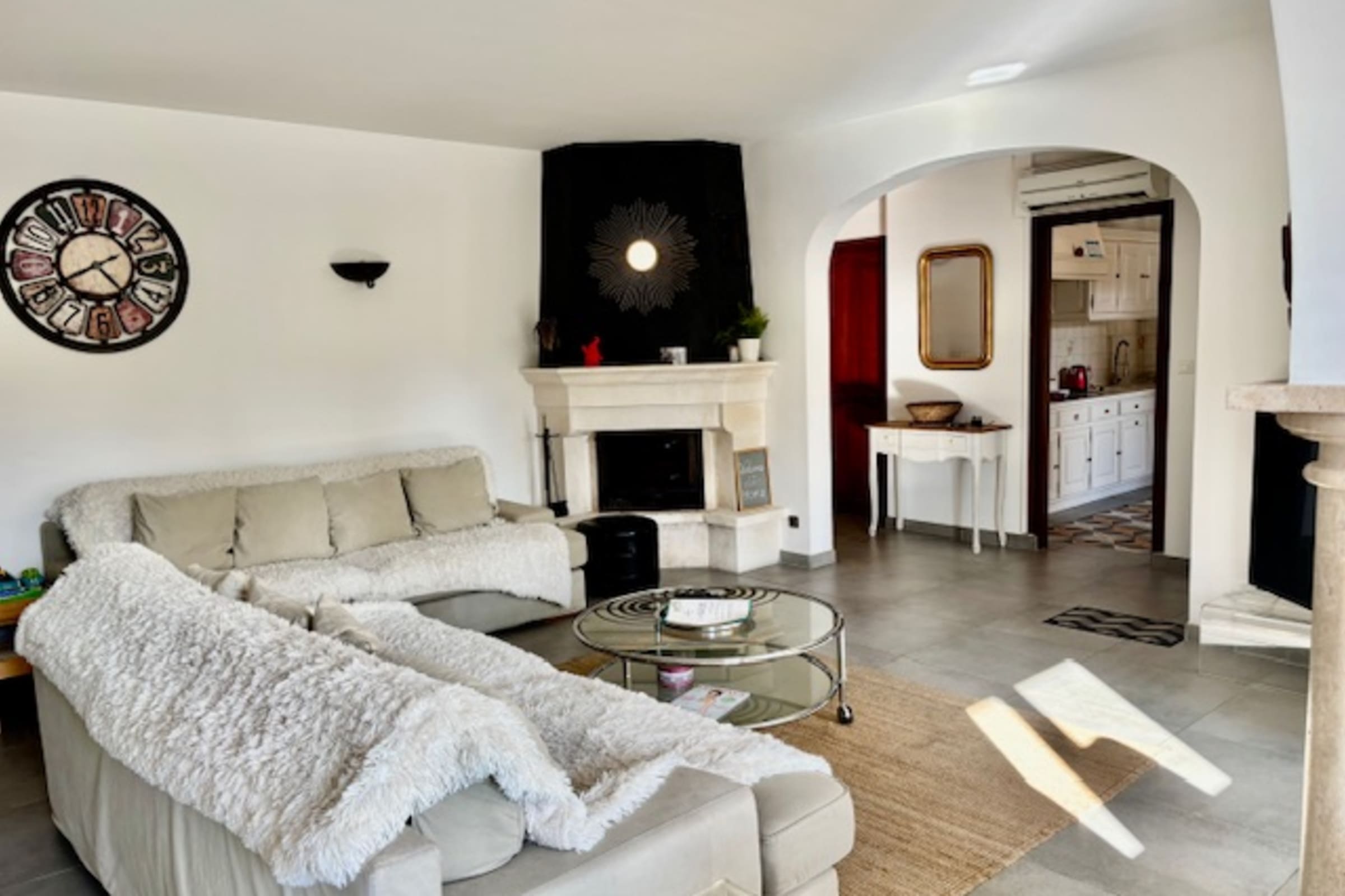 The villa boasts four bedrooms that can comfortably accommodate up to eight guests, as well as two bathrooms, a spacious and comfortable living room that opens onto a bright and sunny dining room, and a fully equipped kitchen. The fenced property welcomes our furry friends, so feel free to bring your dogs along!