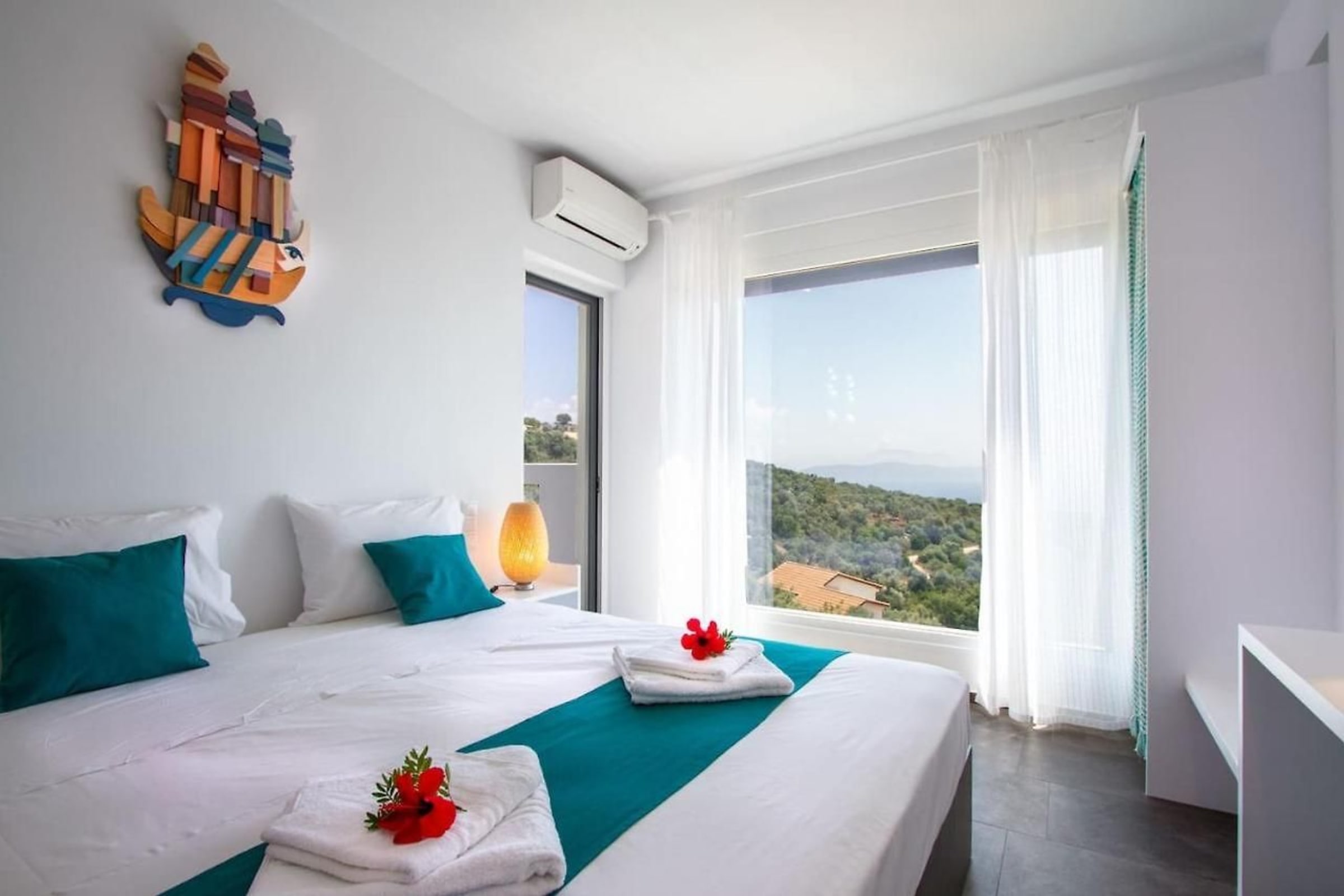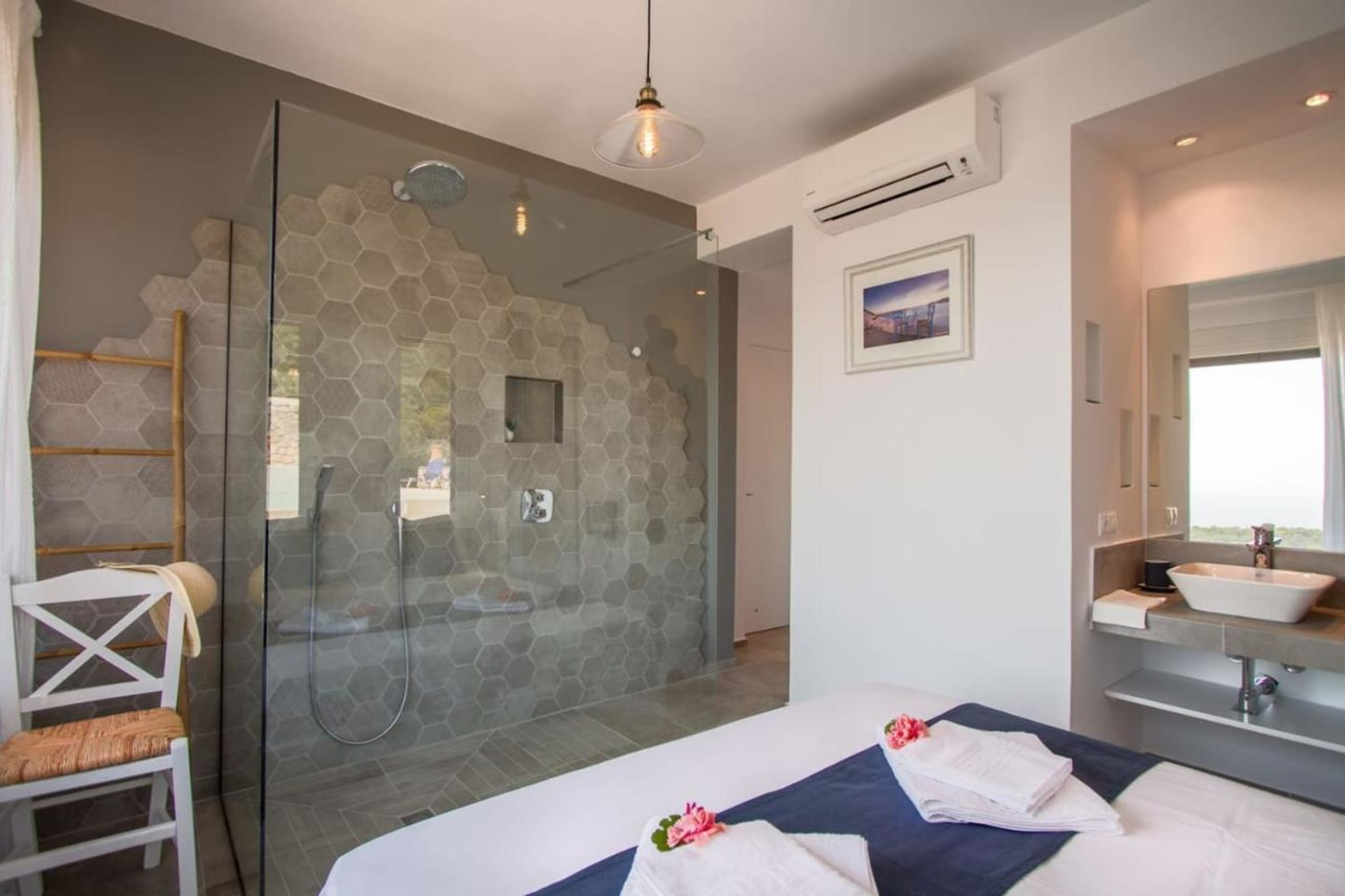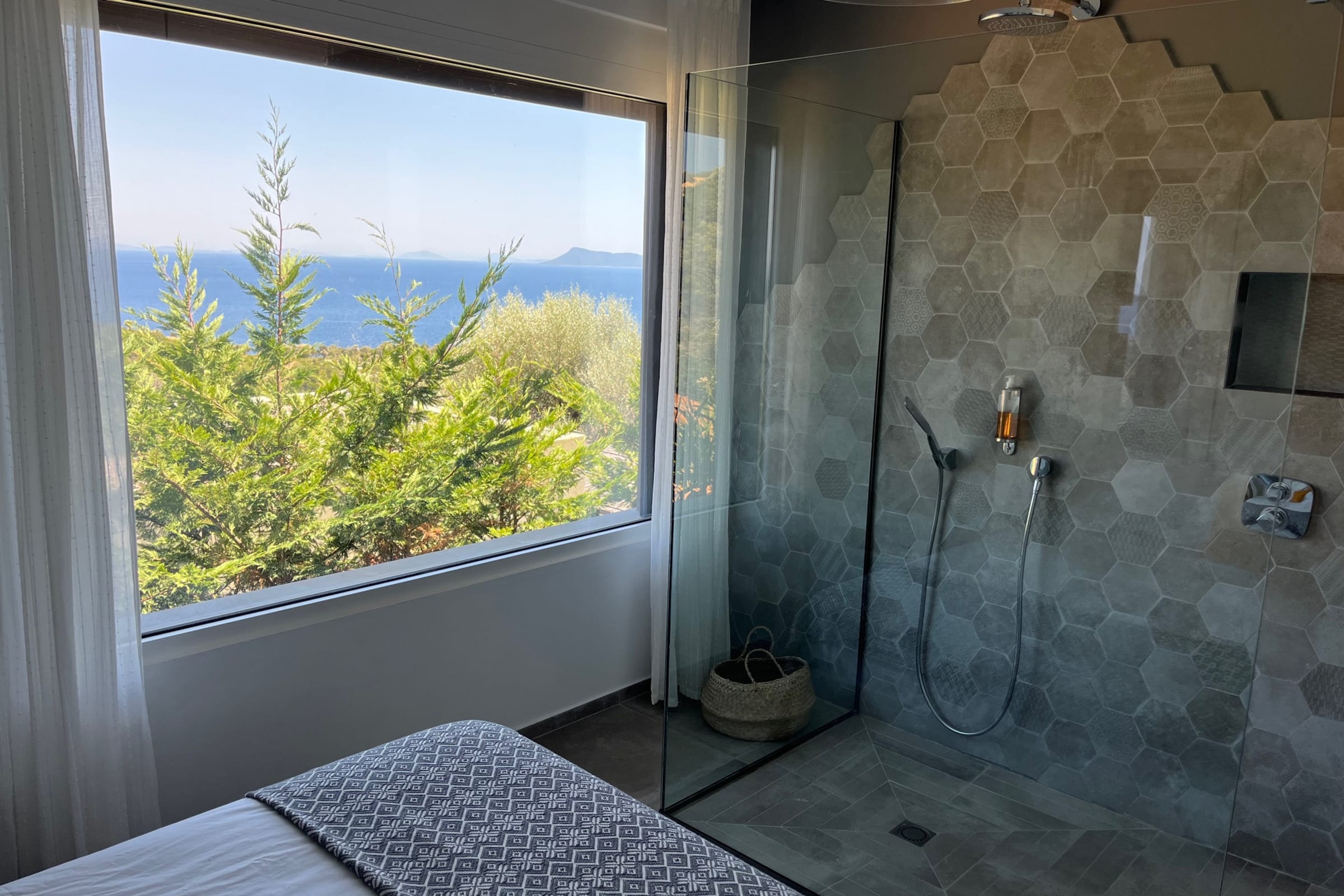 With 160 m² of living space and 2700 m² of landscaped grounds, Villa Arkoudi offers a unique retreat providing ample space for relaxation and accommodation for up to 8 guests. With four bedrooms, each offering sea views and ensuite facilities, the villa is perfectly organized with plenty of room to unwind and enjoy the stunning surroundings.