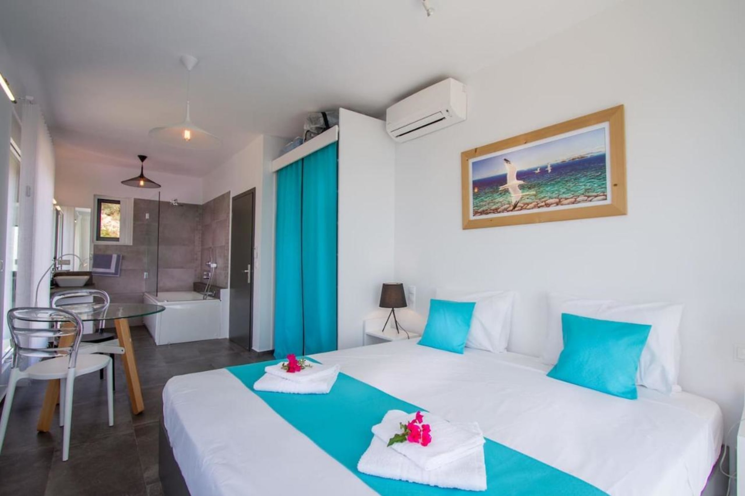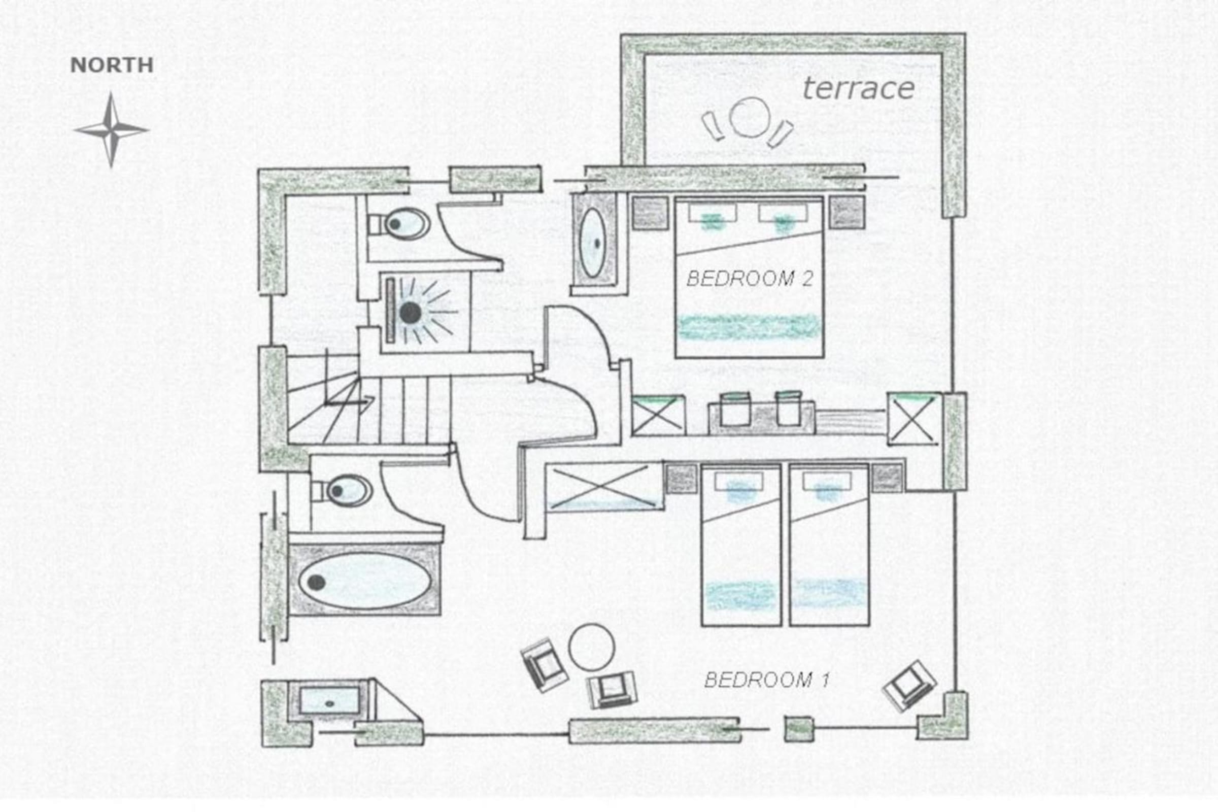 Garden Bedroom: This room has a 180x200 bed that can be split into two 90x200 beds upon request. Guests can enjoy private access to a private garden terrace with views of the ocean and an outdoor shower. The room has en-suite toilet, shower and washbasin.