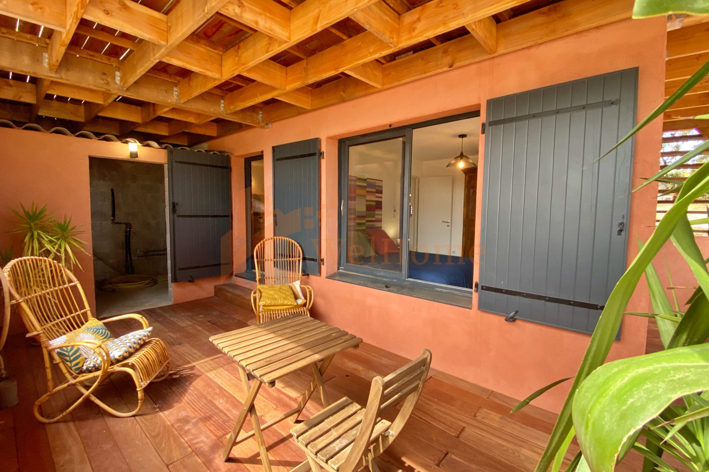 On the garden level, two additional bedrooms await, also furnished with 160 x 200 cm beds, wardrobes, and fans. A second bathroom and a charming English courtyard complete this level, providing a refreshing ambiance and soft natural light.
