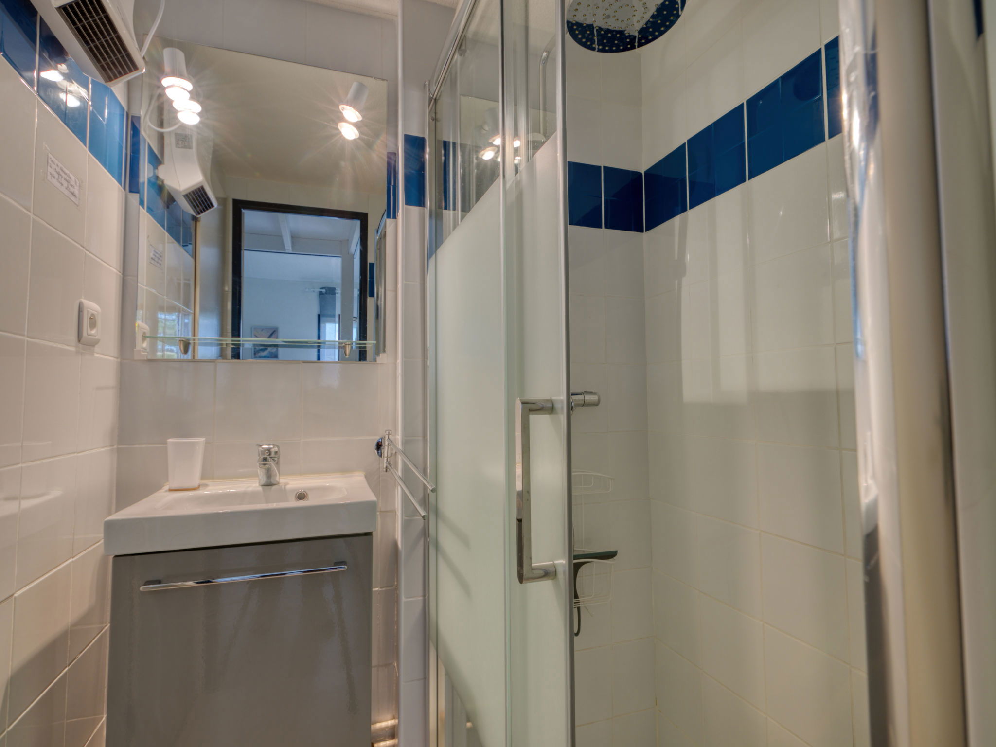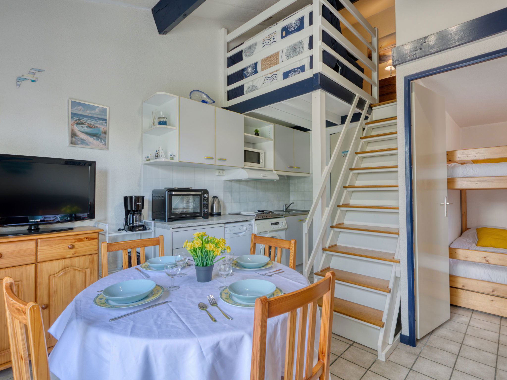 3-room terraced house 37 m2 on 2 levels. Living room with TV (flat screen). Exit to the terrace. 1 room with 1 x 2 bunk beds (80 cm, length 190 cm). Kitchenette (3 hot plates, dishwasher, toaster, kettle, microwave, freezer, electric coffee machine). Shower, sep. WC. Electric heating. Upper floor: gallery with 1 sofabed (140 cm, length 190 cm). 1 room with sloping ceilings with 1 french bed (1 x 140 cm, length 190 cm). Large terrace 25 m2, west facing position. Terrace furniture, electric barbecue. Facilities: washing machine, hair dryer. Internet (WiFi, free). Parking space n 175. Please note: 1 small pet/ dog allowed. Smoke alarm. Offer by a private individual according to Art. 155, IV of CGI.