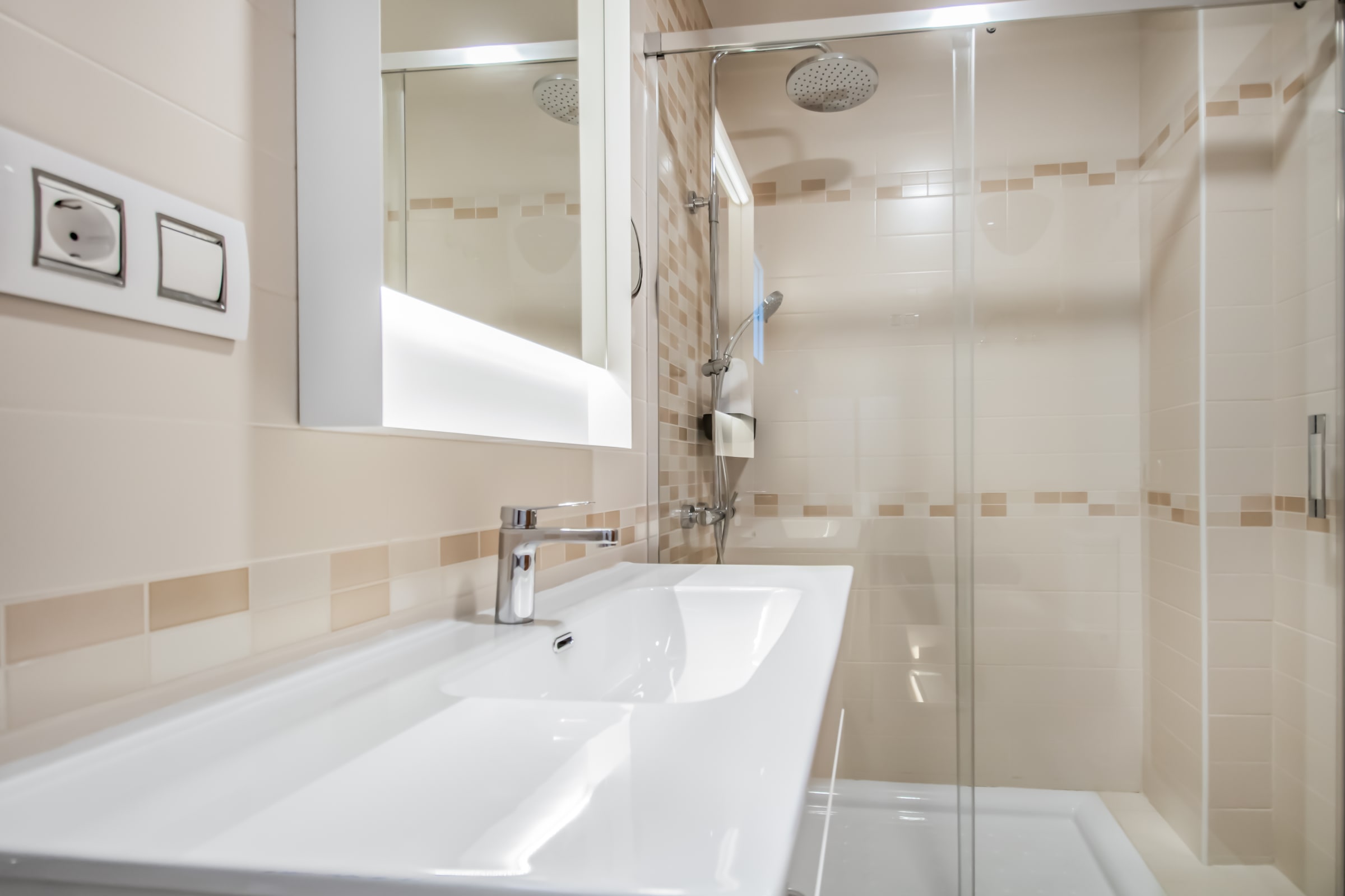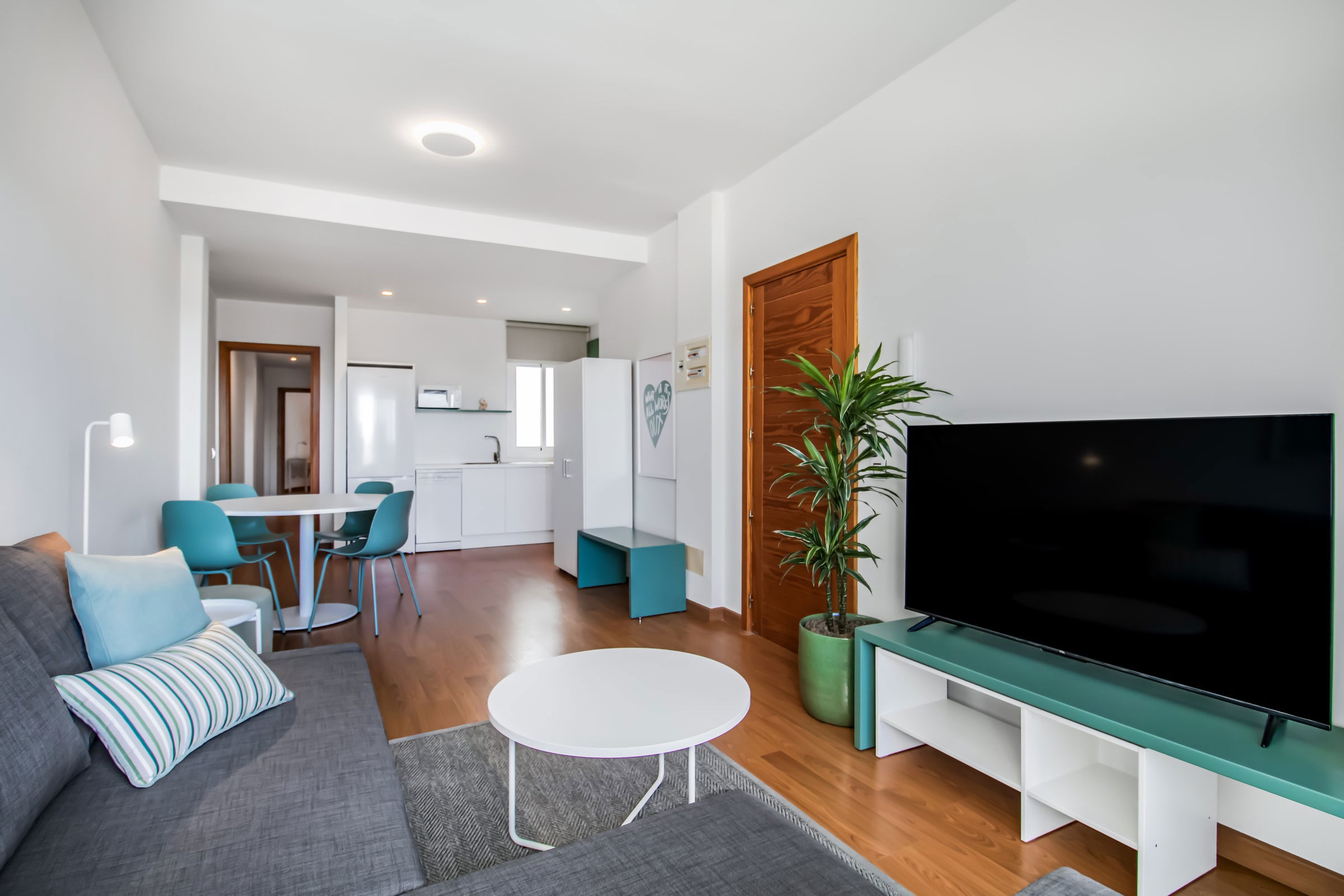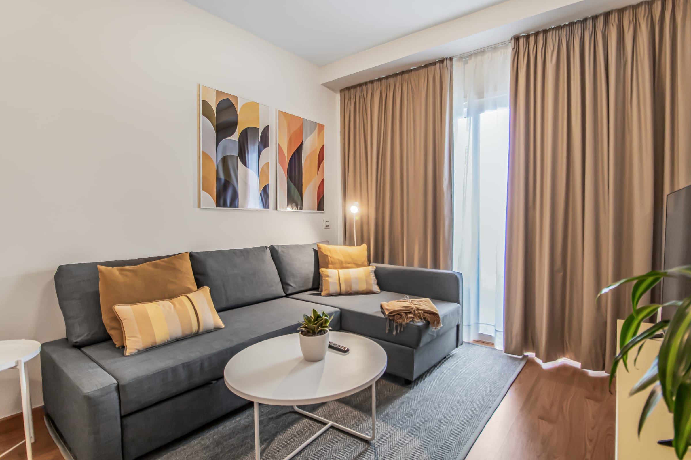The apartment offers a modern kitchen equipped with everything you need for your stay, from appliances to utensils.