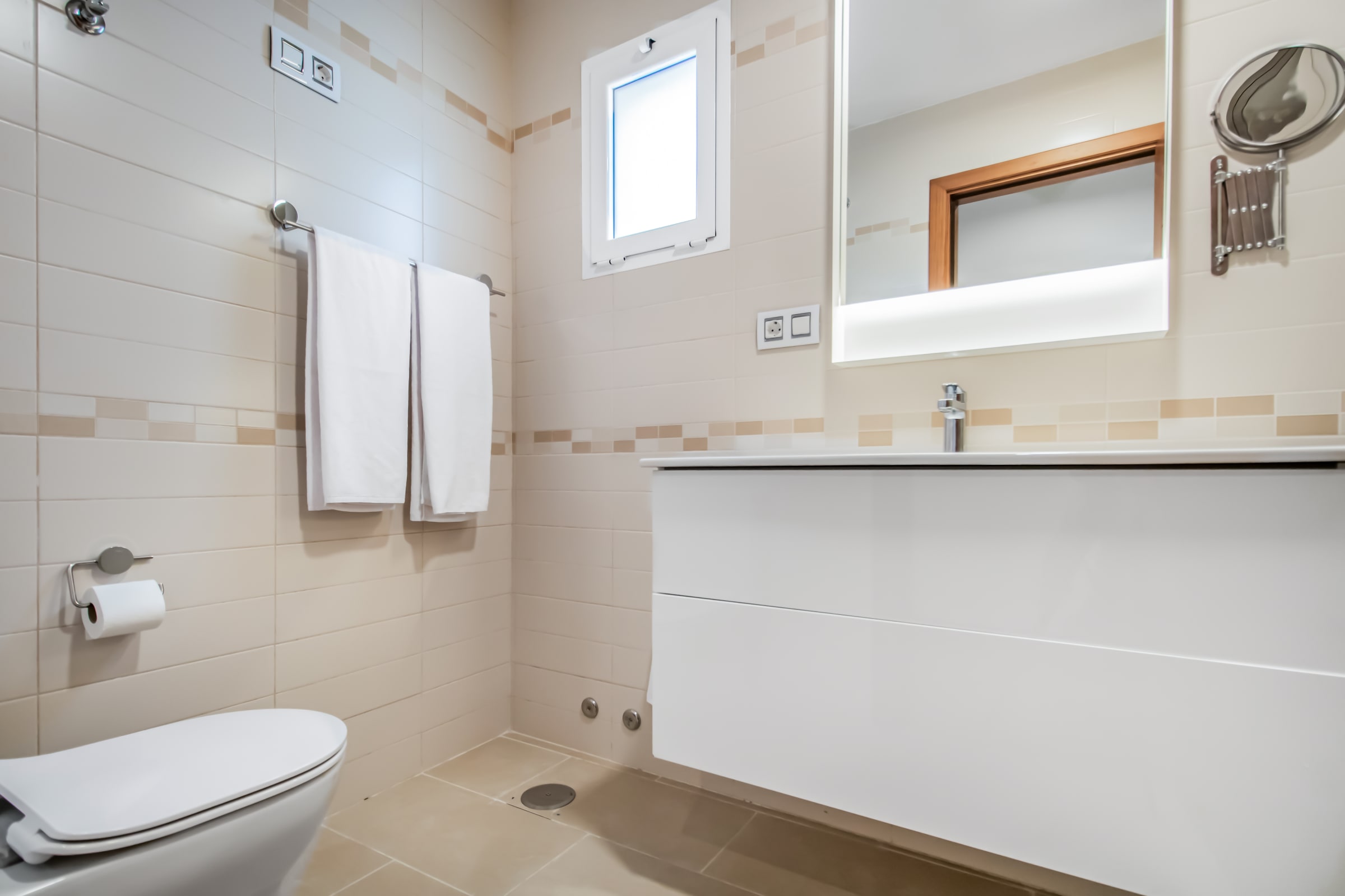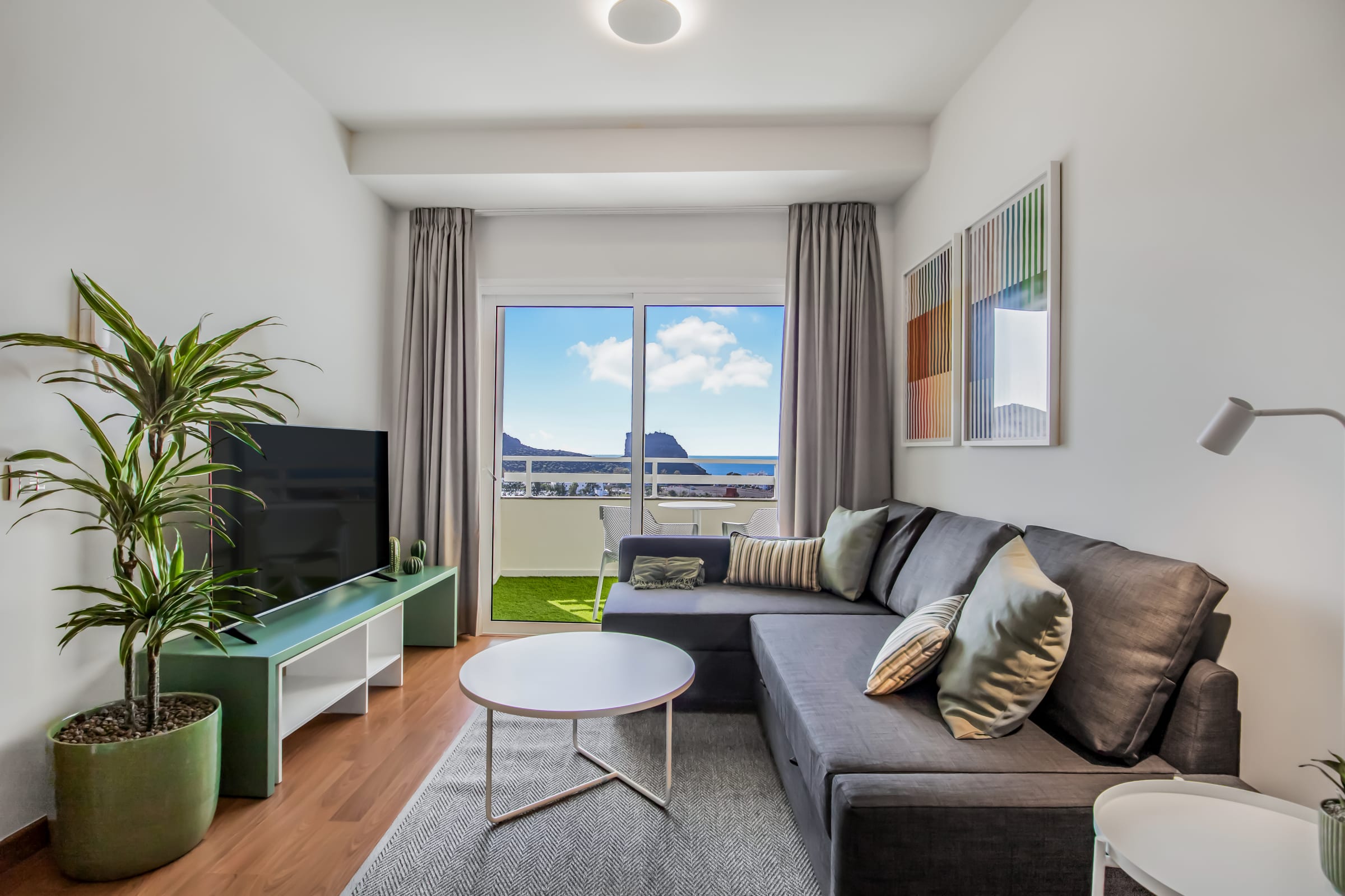 Each bedroom is well-lit, providing a comfortable and inviting atmosphere. Enjoy your morning coffee or evening drinks on the balcony, which boasts panoramic views of both the sea and the mountains.