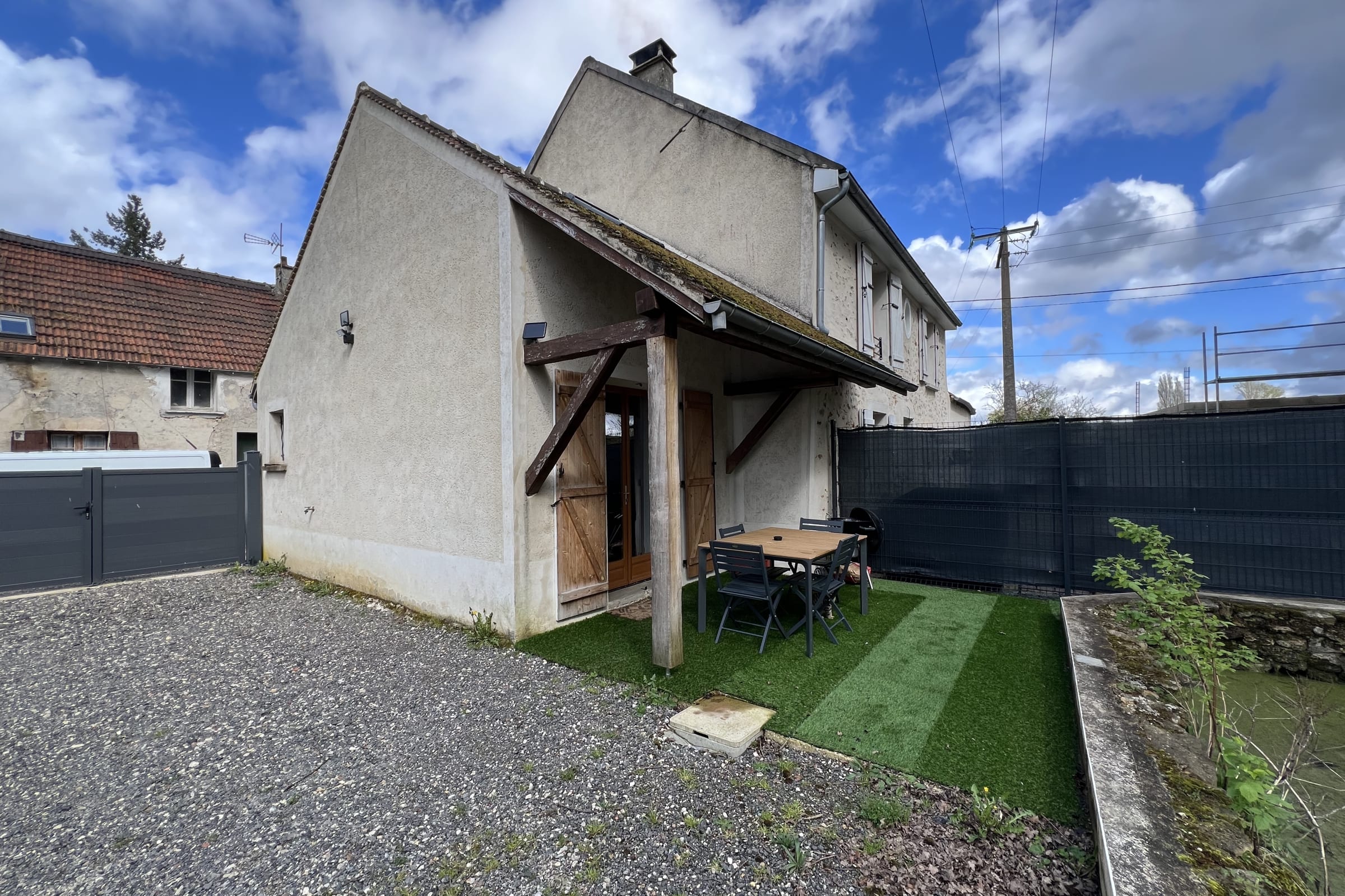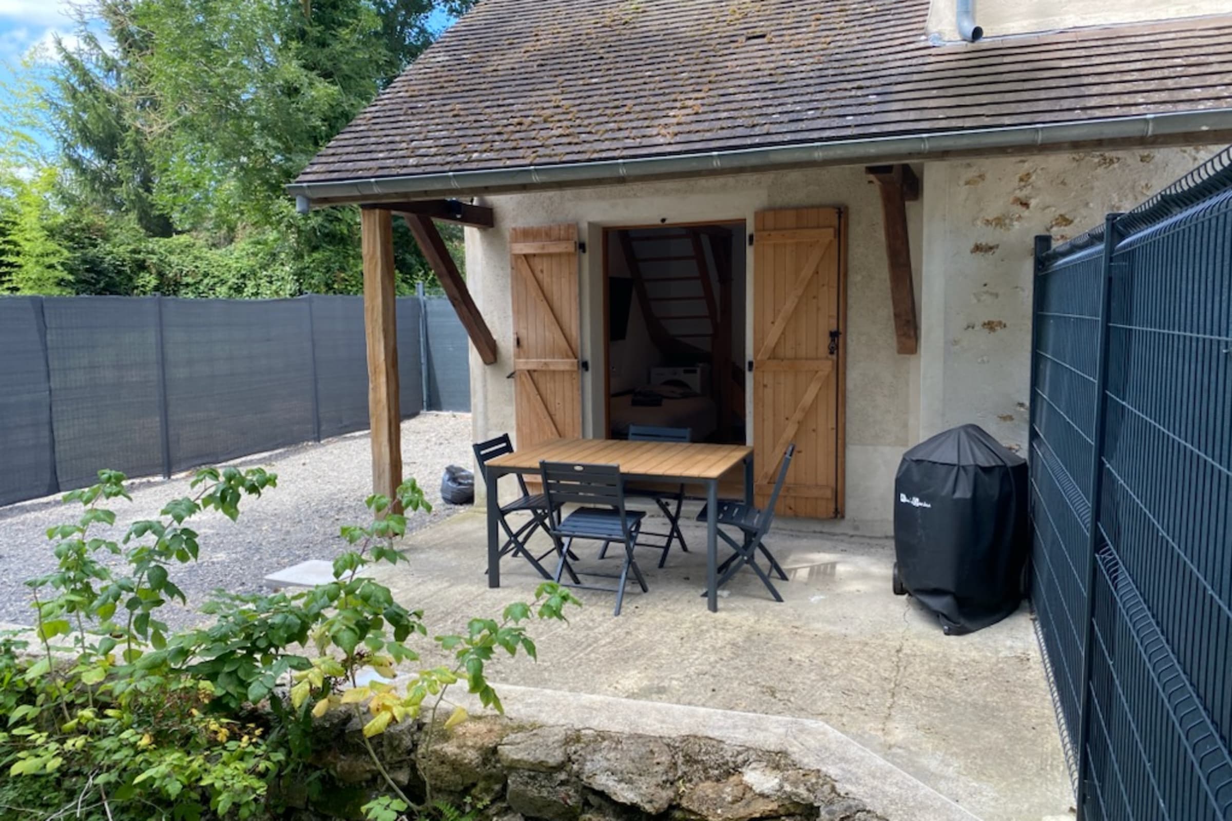La maison dispose d'un espace extérieur avec une table de jardin, 6 chaises extérieures et d'un barbecue avec tous ses ustensiles.