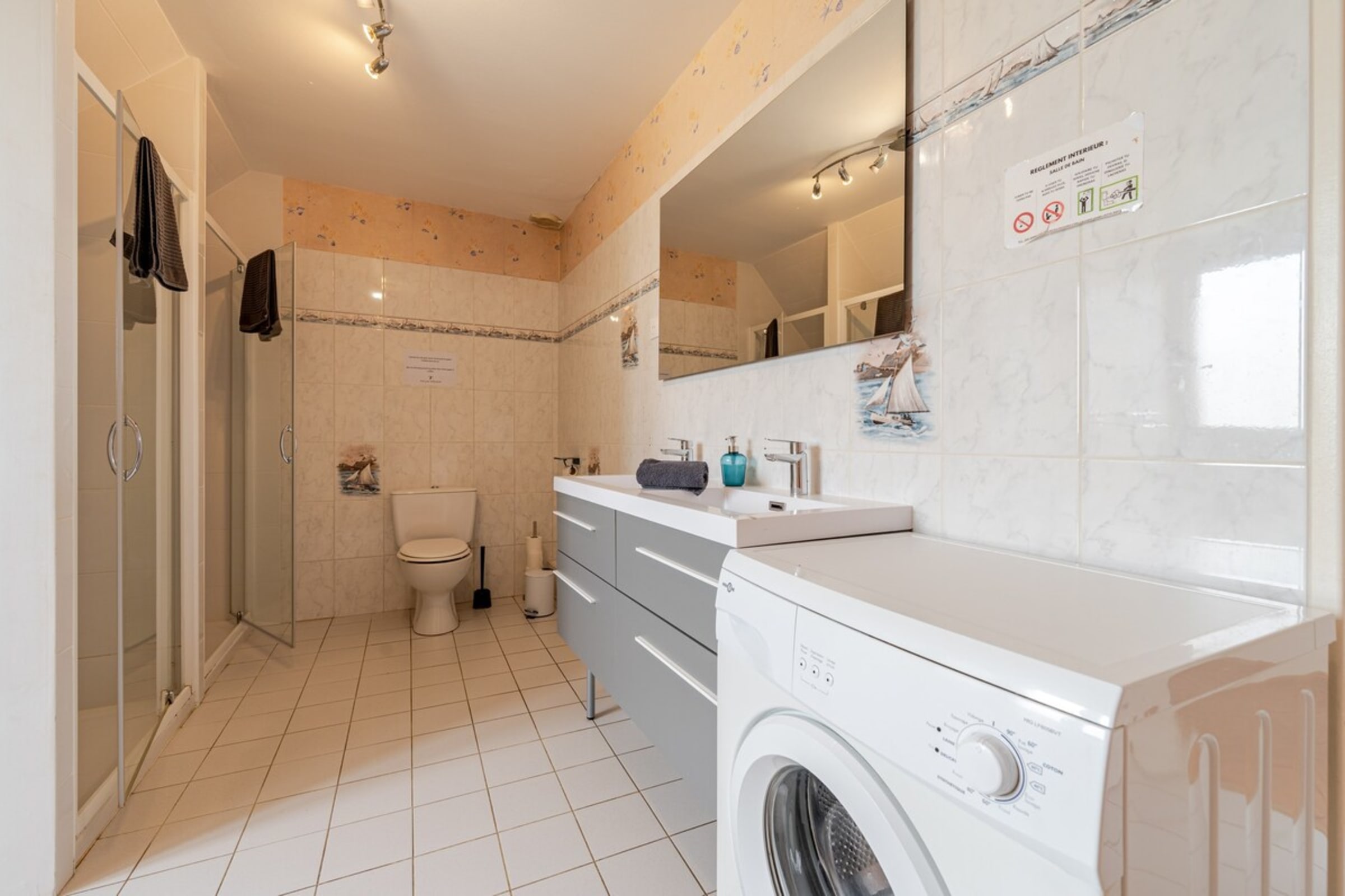 The on the ground floor, equipped with a double sink unit, a shower and a bathtub.