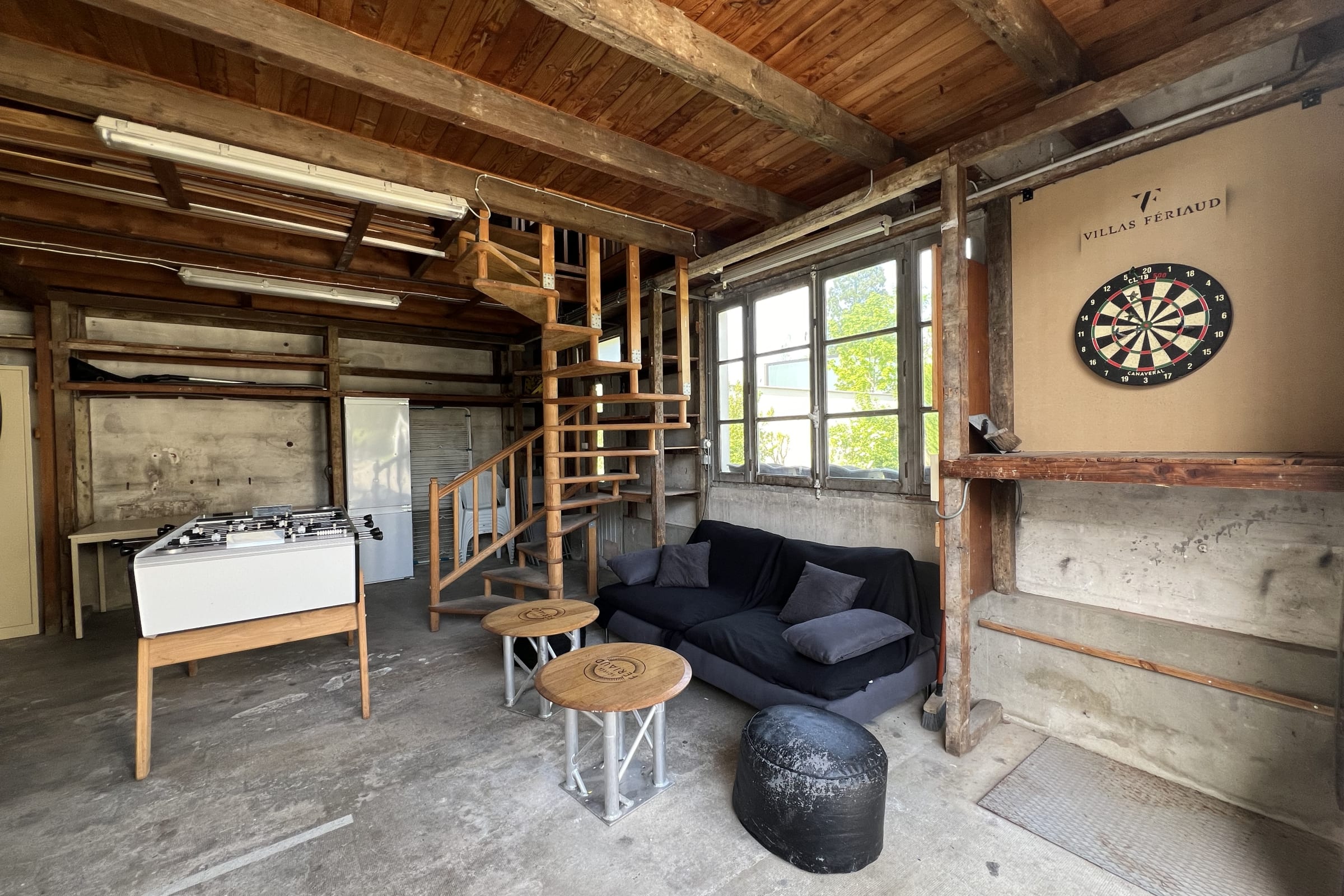 Ideal for having fun with family or friends, you will find in the garden, a 50 m2 outbuilding equipped as a games room with a table football, a dart game as well as a sofa and 2 coffee tables.