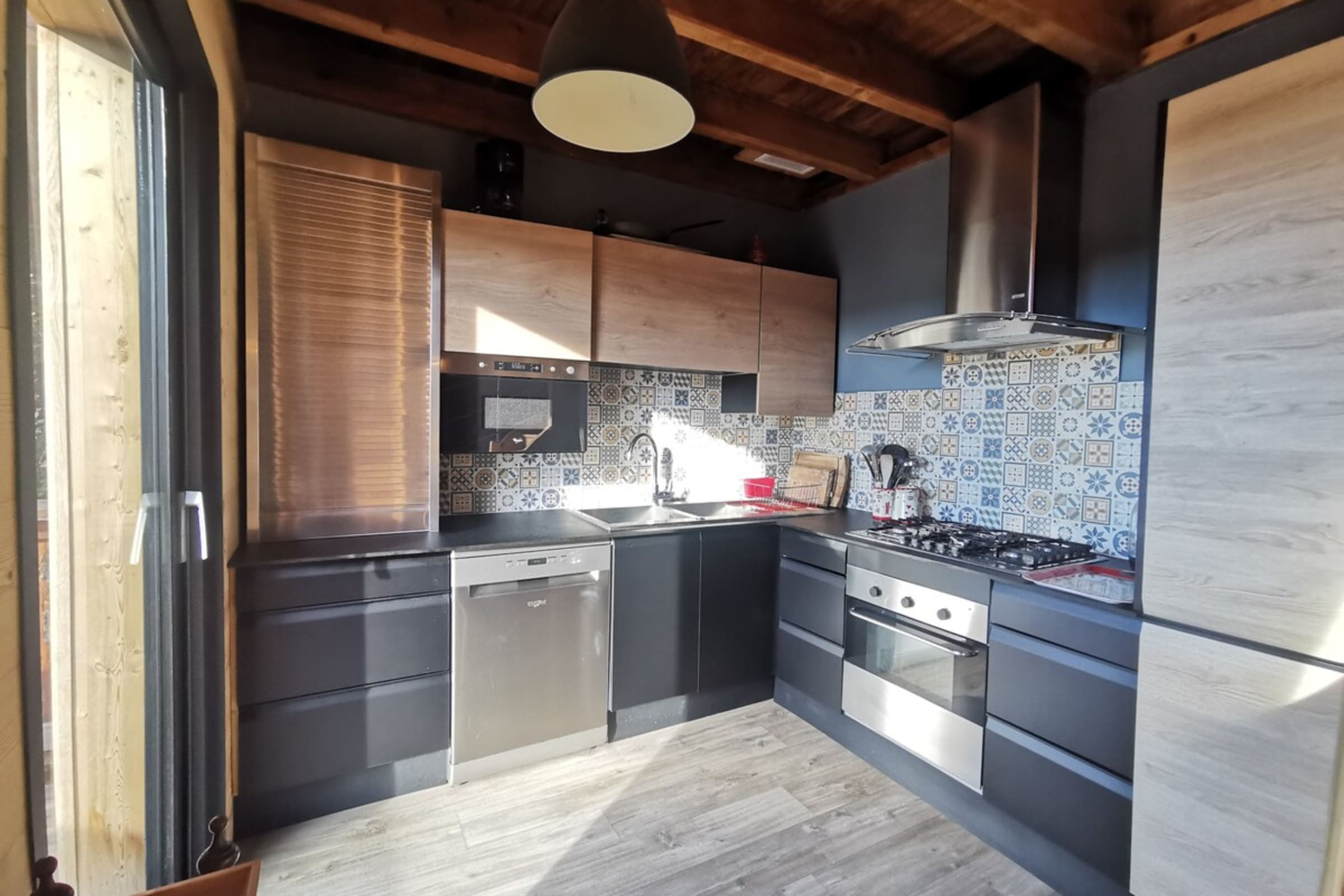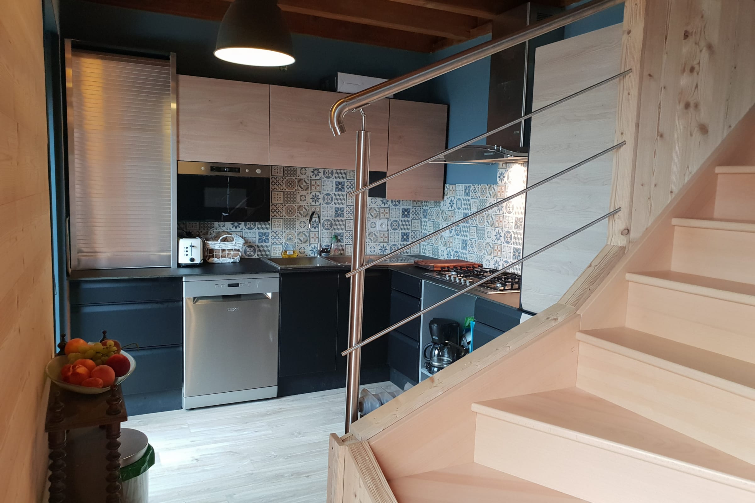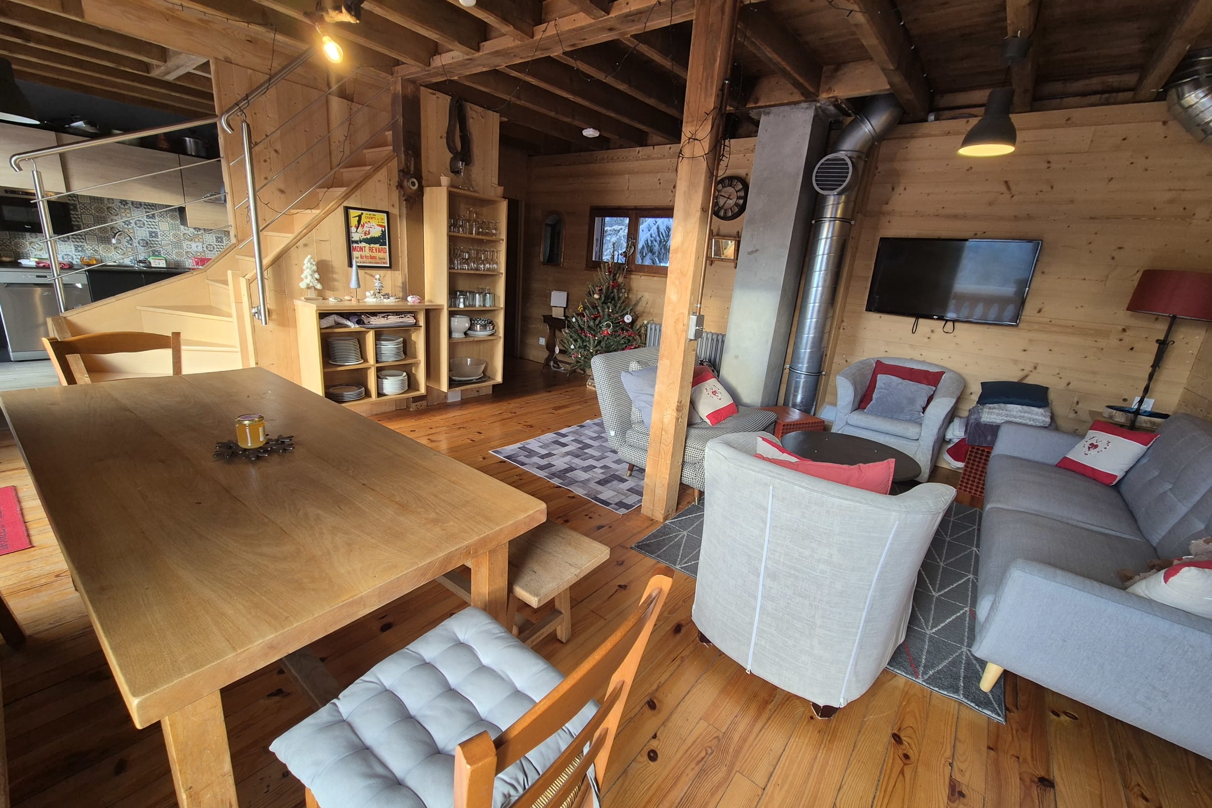 Warm chalet for 12 people with large living room with fully equipped kitchen (oven, dishwasher, coffee maker, microwave, fridge, freezer, washing machine)