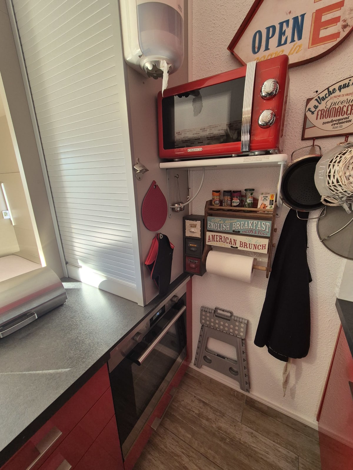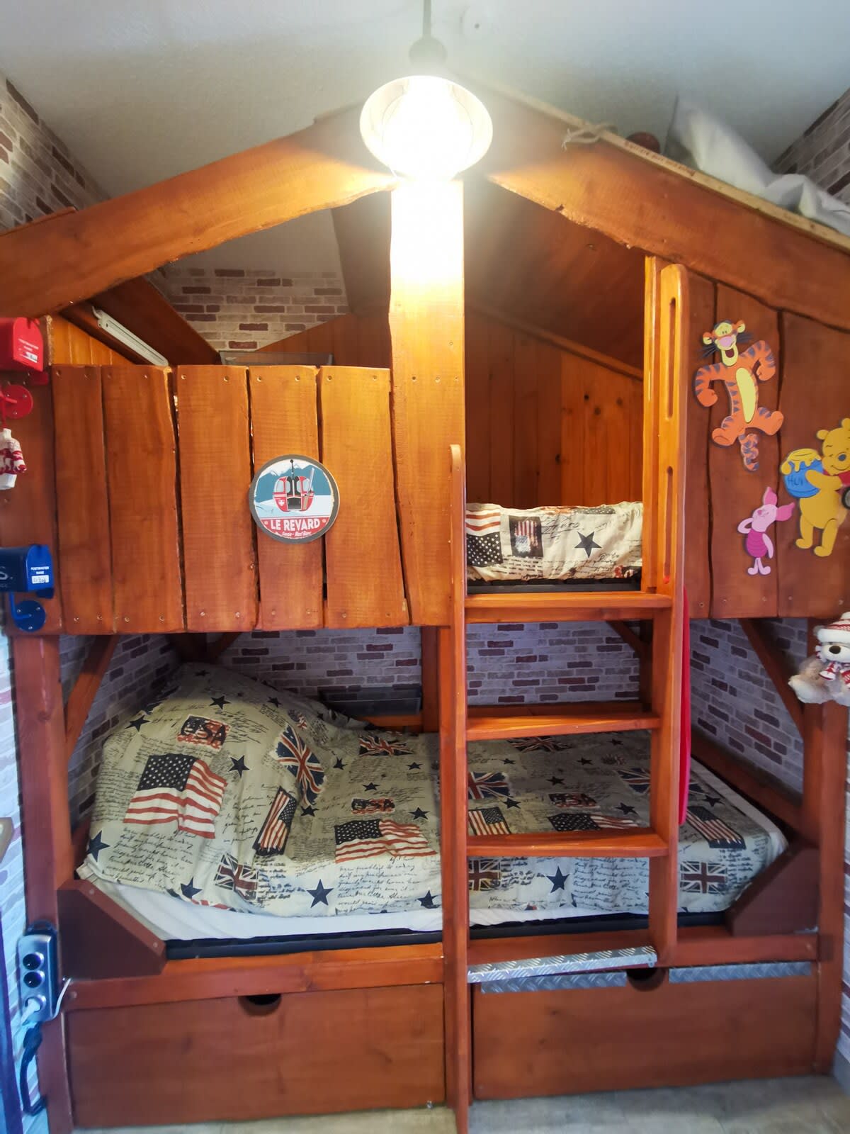 Functional kitchen with hob, oven, dishes, utensils. The living room has a foldaway bed with a comfortable mattress, sleeping area with a bunk bed (sleeps 2), bathroom with WC.