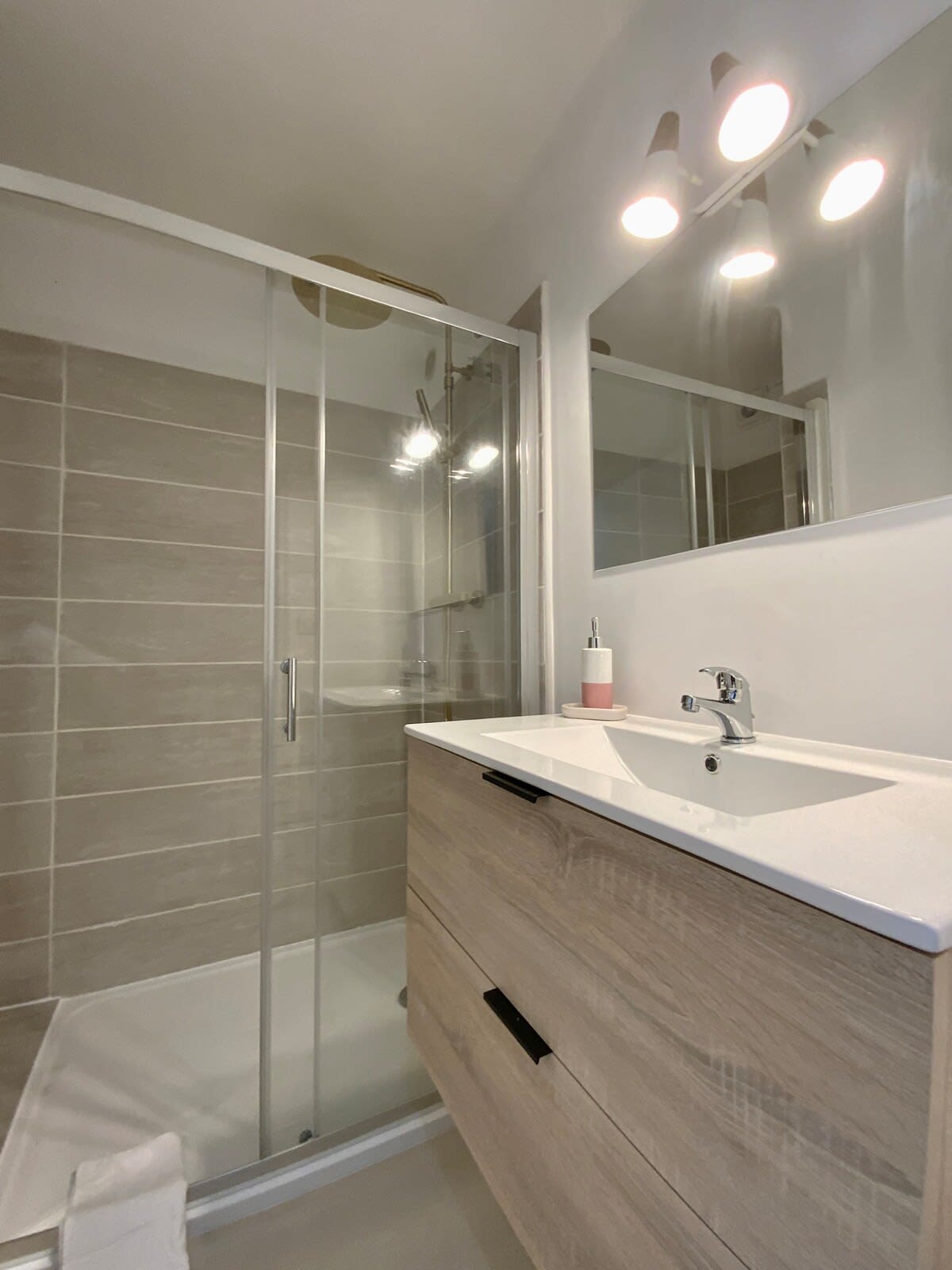 Our 37m2 apartment on the ground floor of a seaside residence with exterior, consists of:
