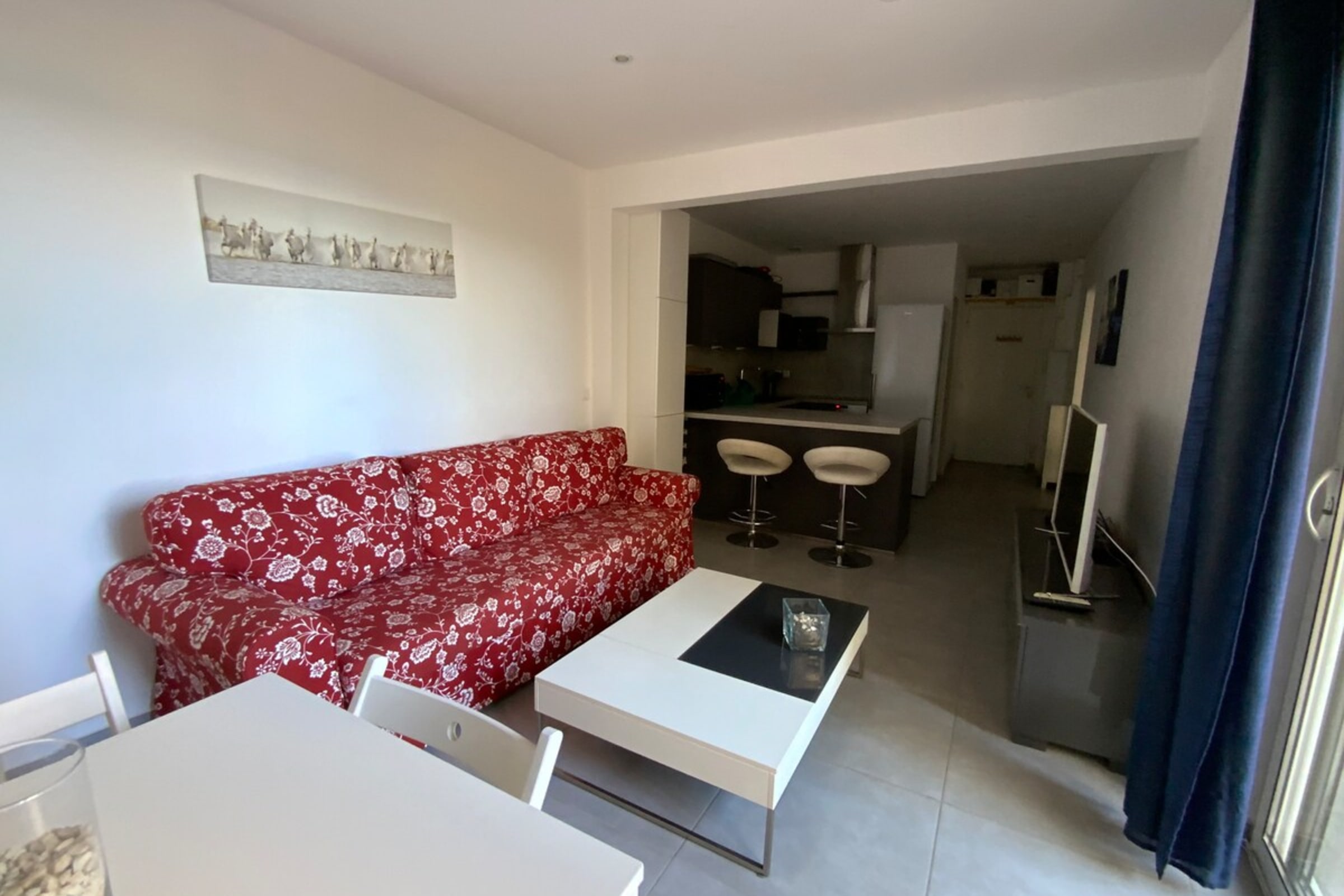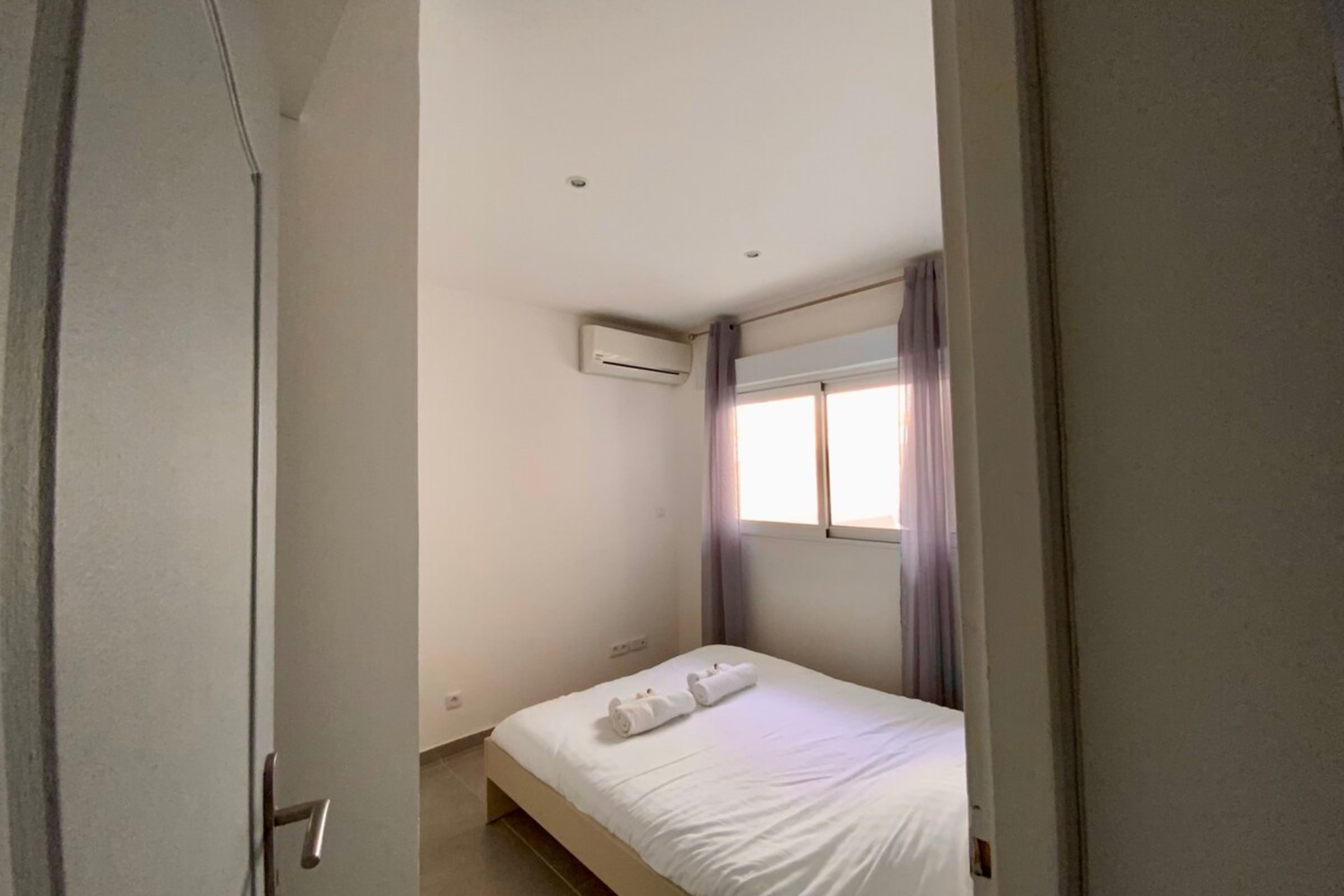 Our apartment, located on the ground floor, measuring 36m2, is air-conditioned in the living room and the bedroom, it is equipped with a terrace. It consists :