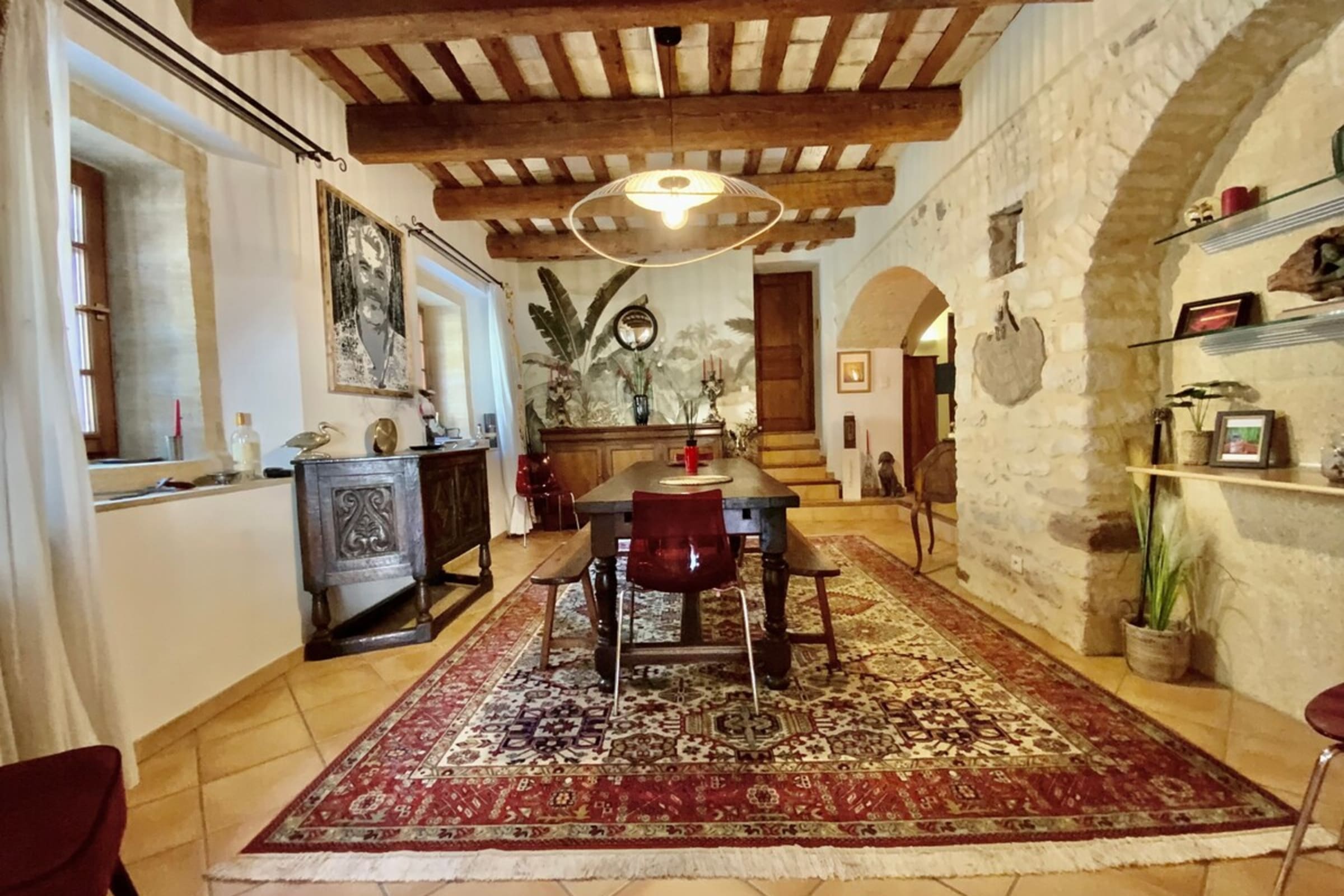 Spacious and atypical, you can enjoy the warm living spaces with large volumes, gathered around the patio out of sight.