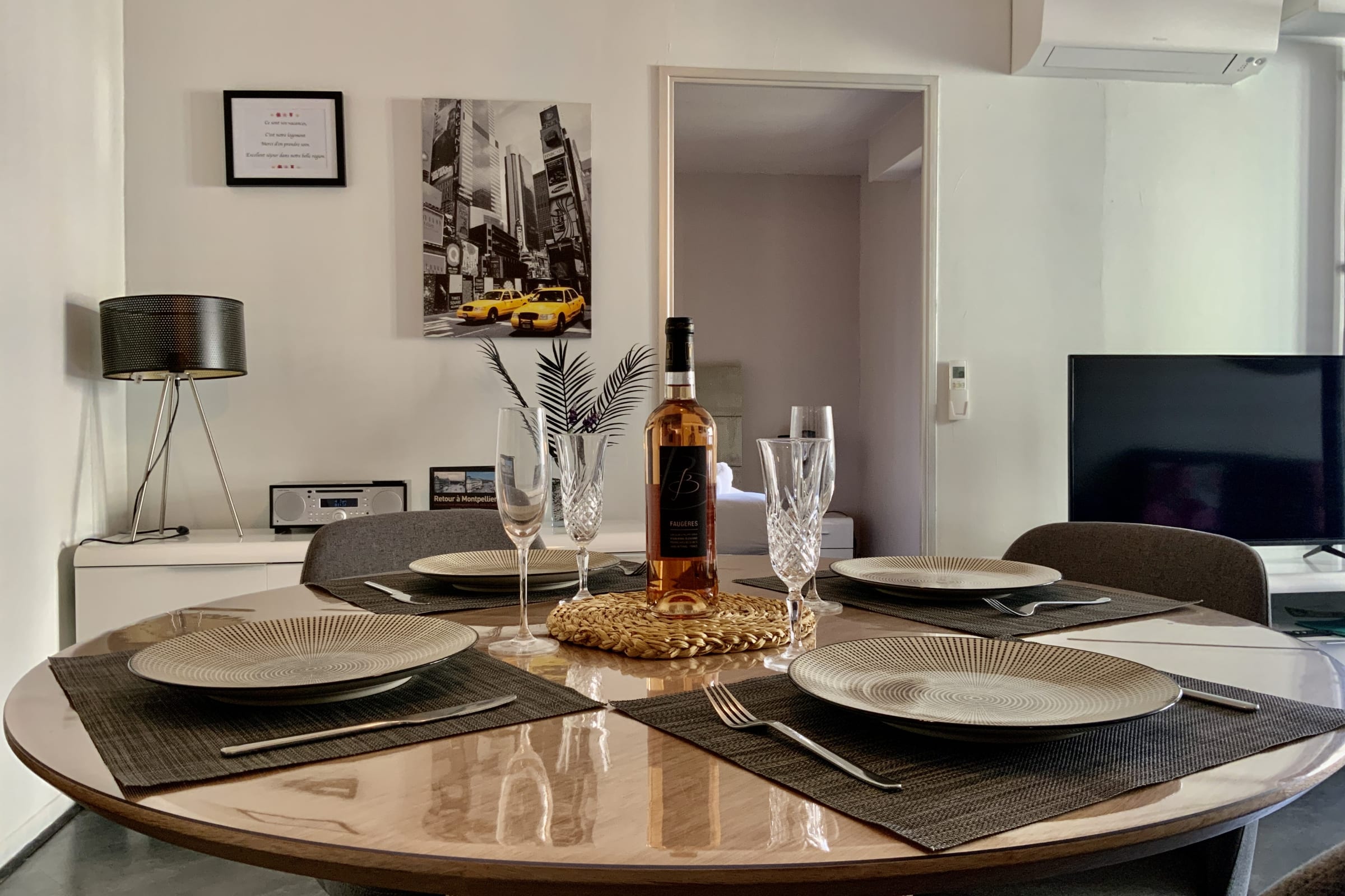 Tram stop line 1 Leon Blum which will take you to the Comédie in 5 minutes and to the beaches in 30 minutes