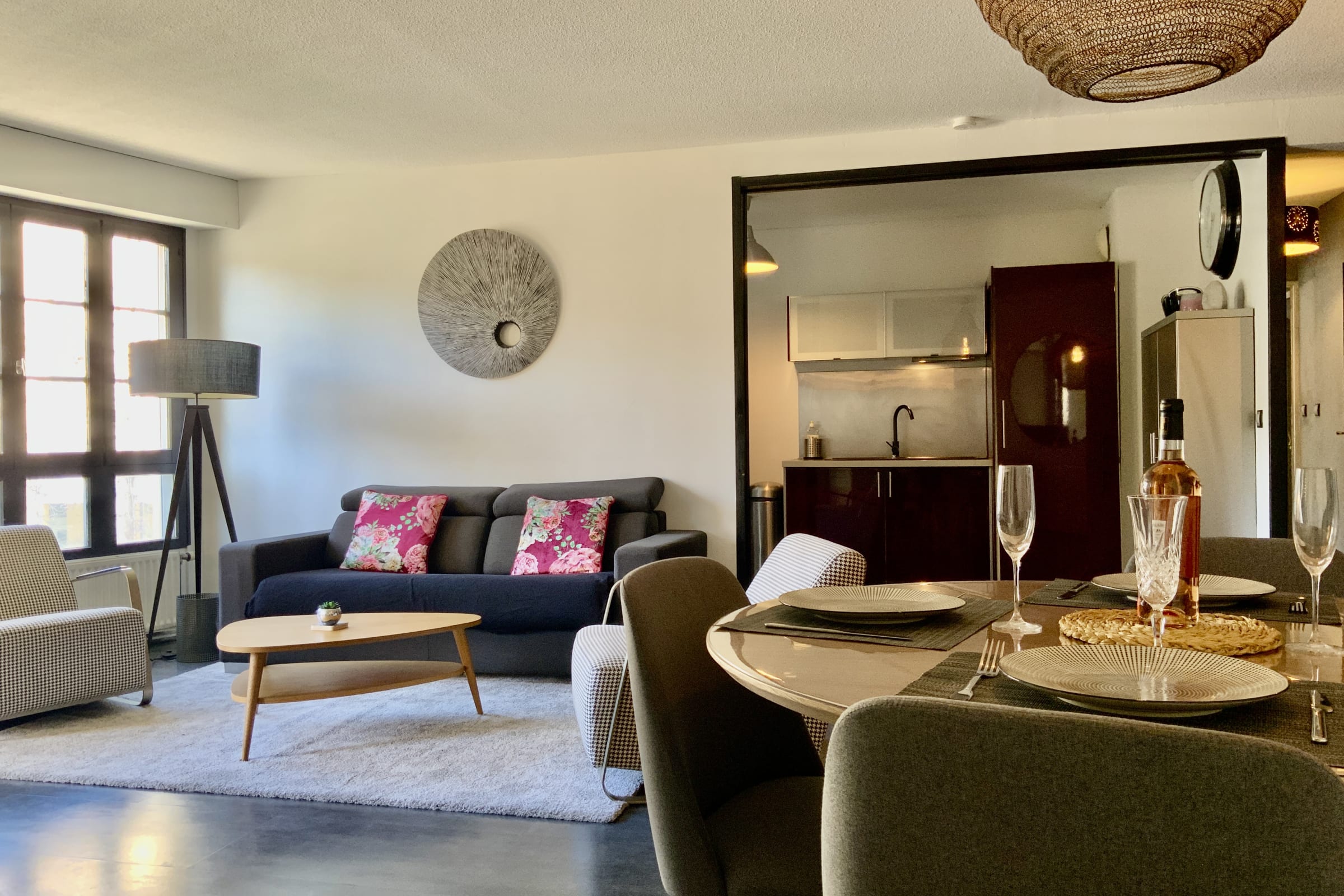 You will appreciate the air conditioning, the private box in the garage of the residence (note that small city vehicle models do not include SUVs), its WIFI access, its terrace with a breathtaking view of the square and the fountain.