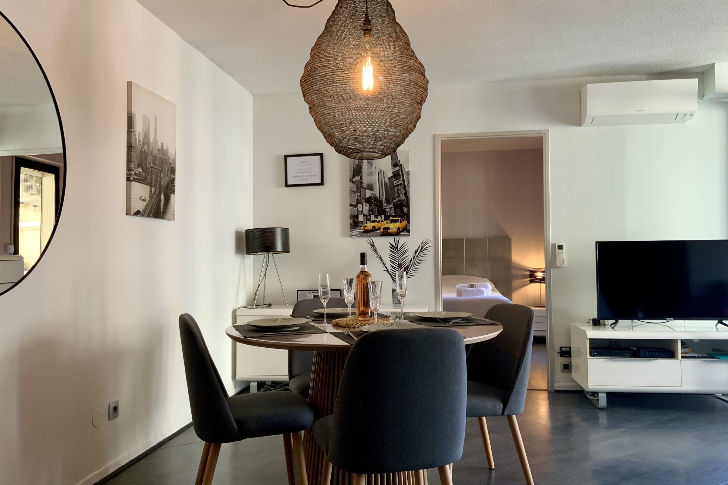 You will appreciate the air conditioning, the private box in the garage of the residence (attention only for small and medium vehicle models), its WIFI access, its terrace with a breathtaking view of the square and the fountain.