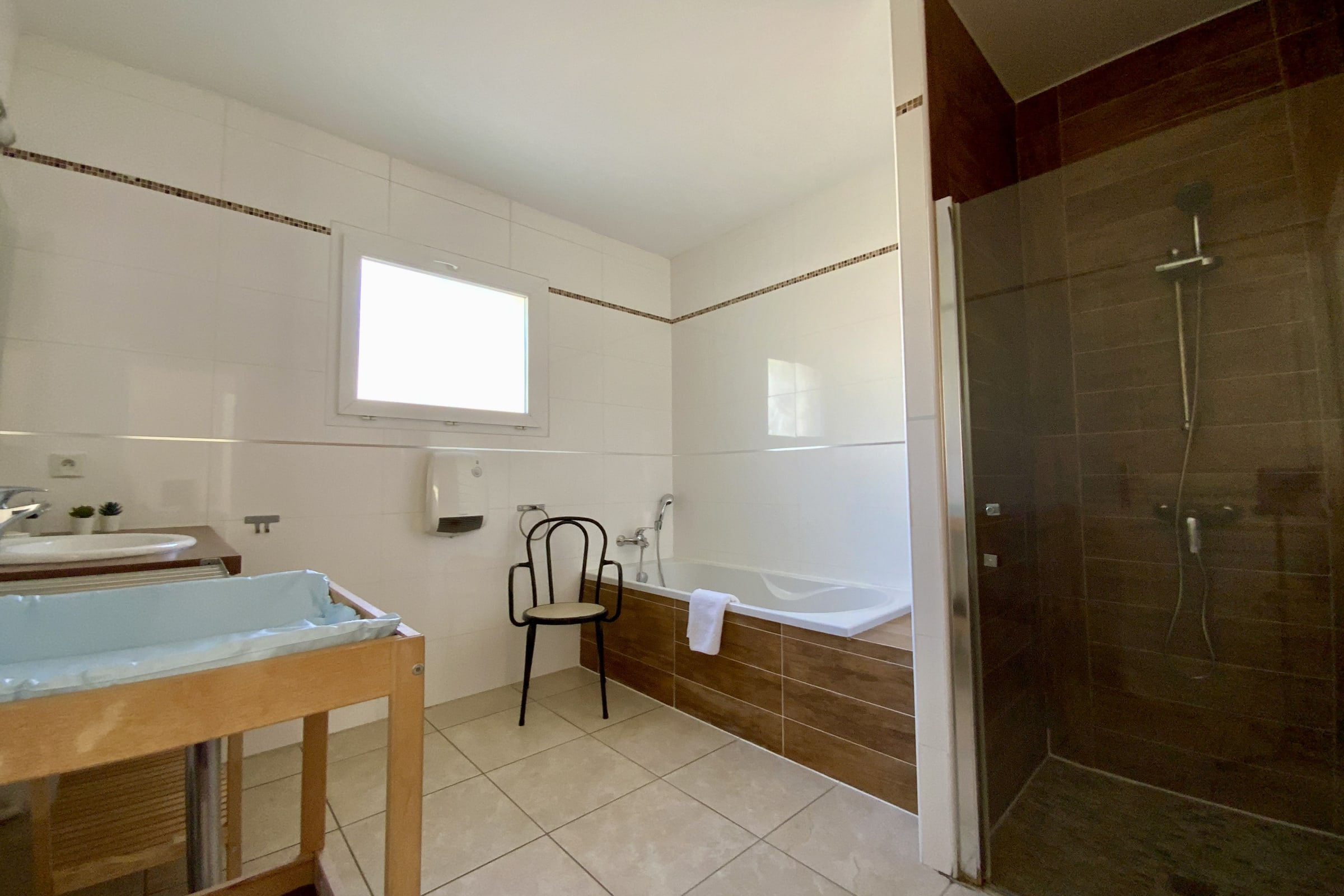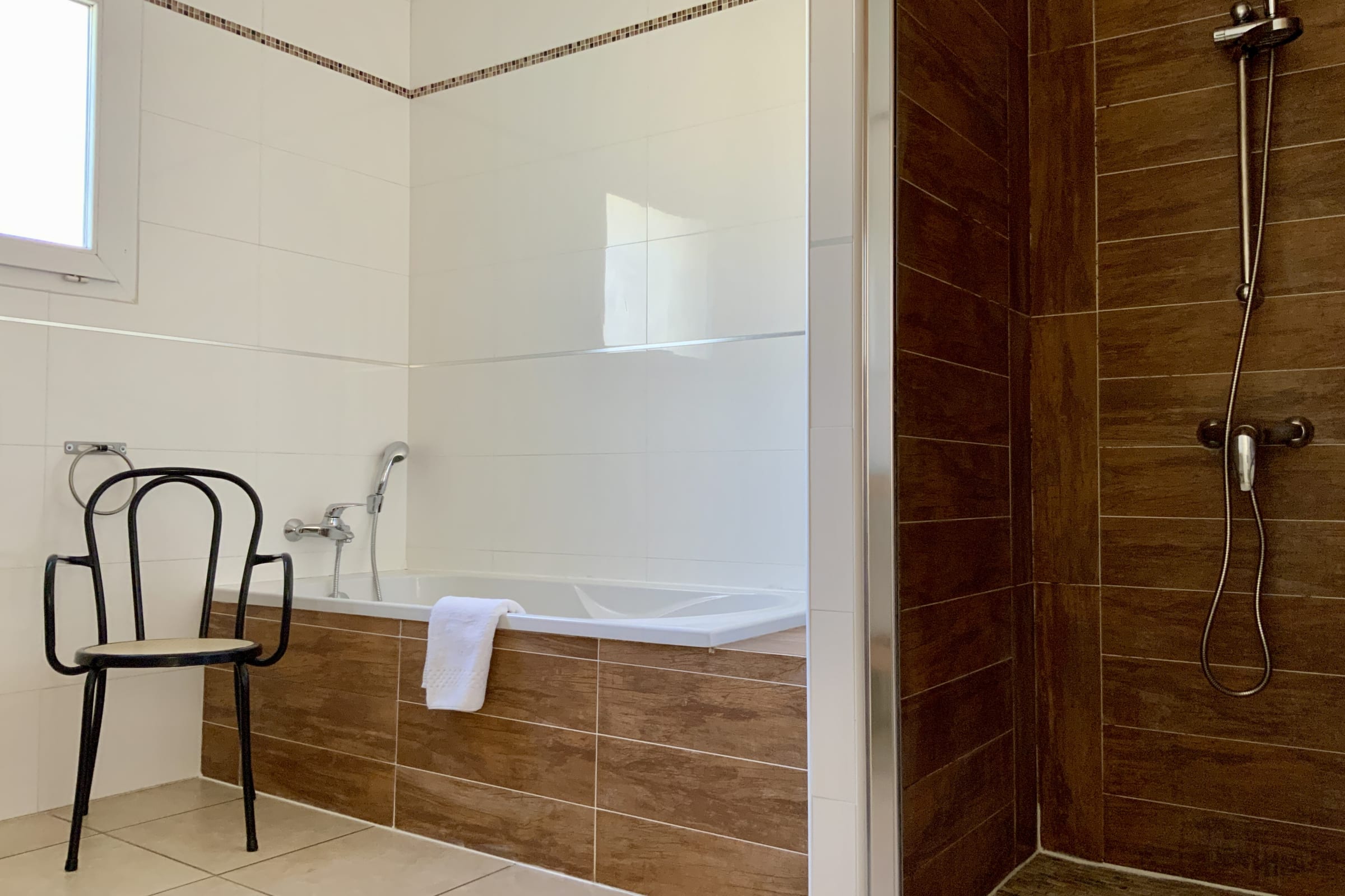• Spacious bathroom: equipped with a bathtub and a shower.