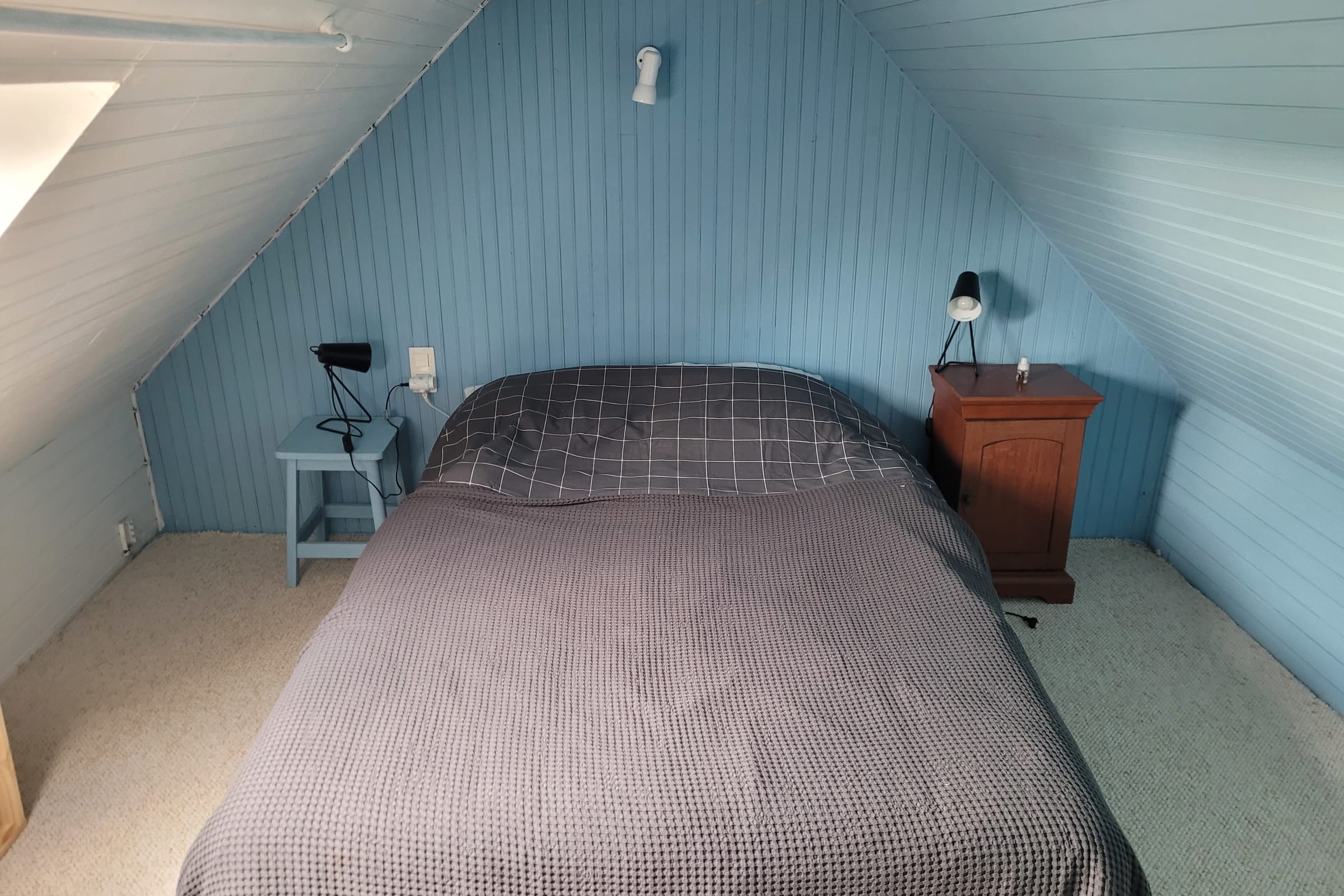 One bedroom with 1 double bed for 2 people, 140x190cm with storage space