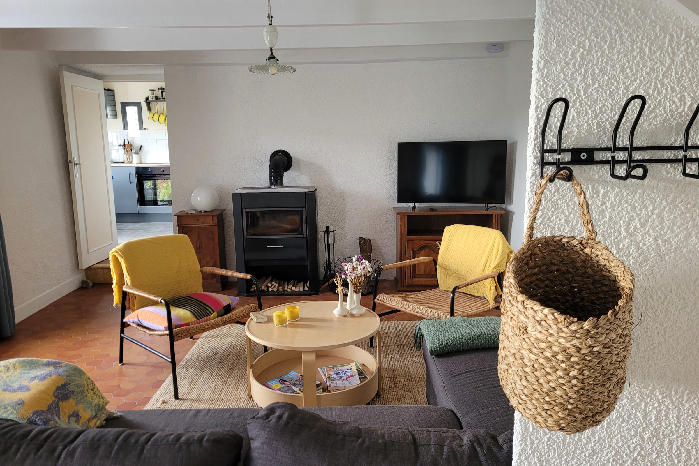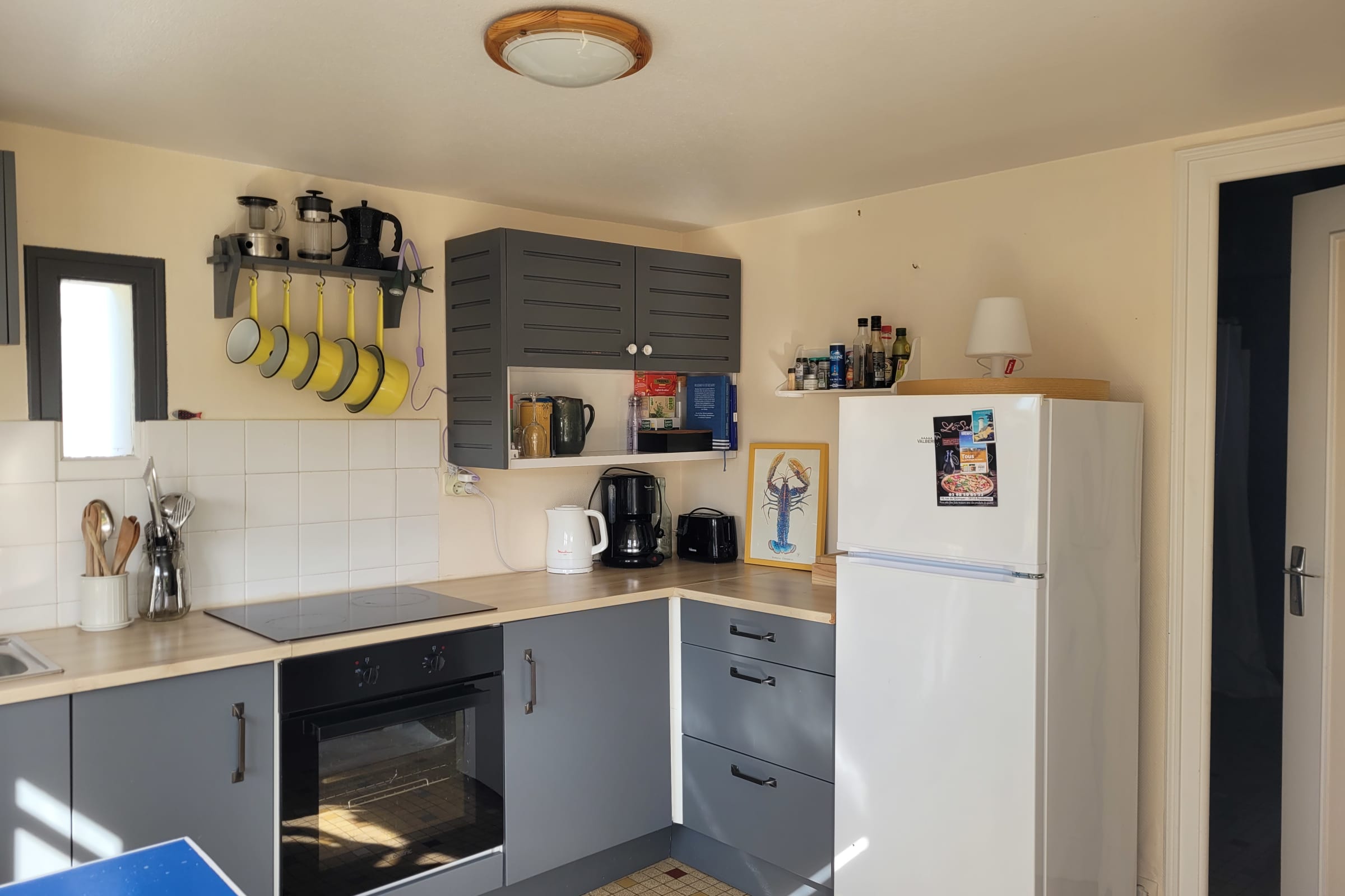 Kitchen: kettle, filter coffee maker, oven, toaster, dishwasher, fridge (freezer section), crockery and cutlery,