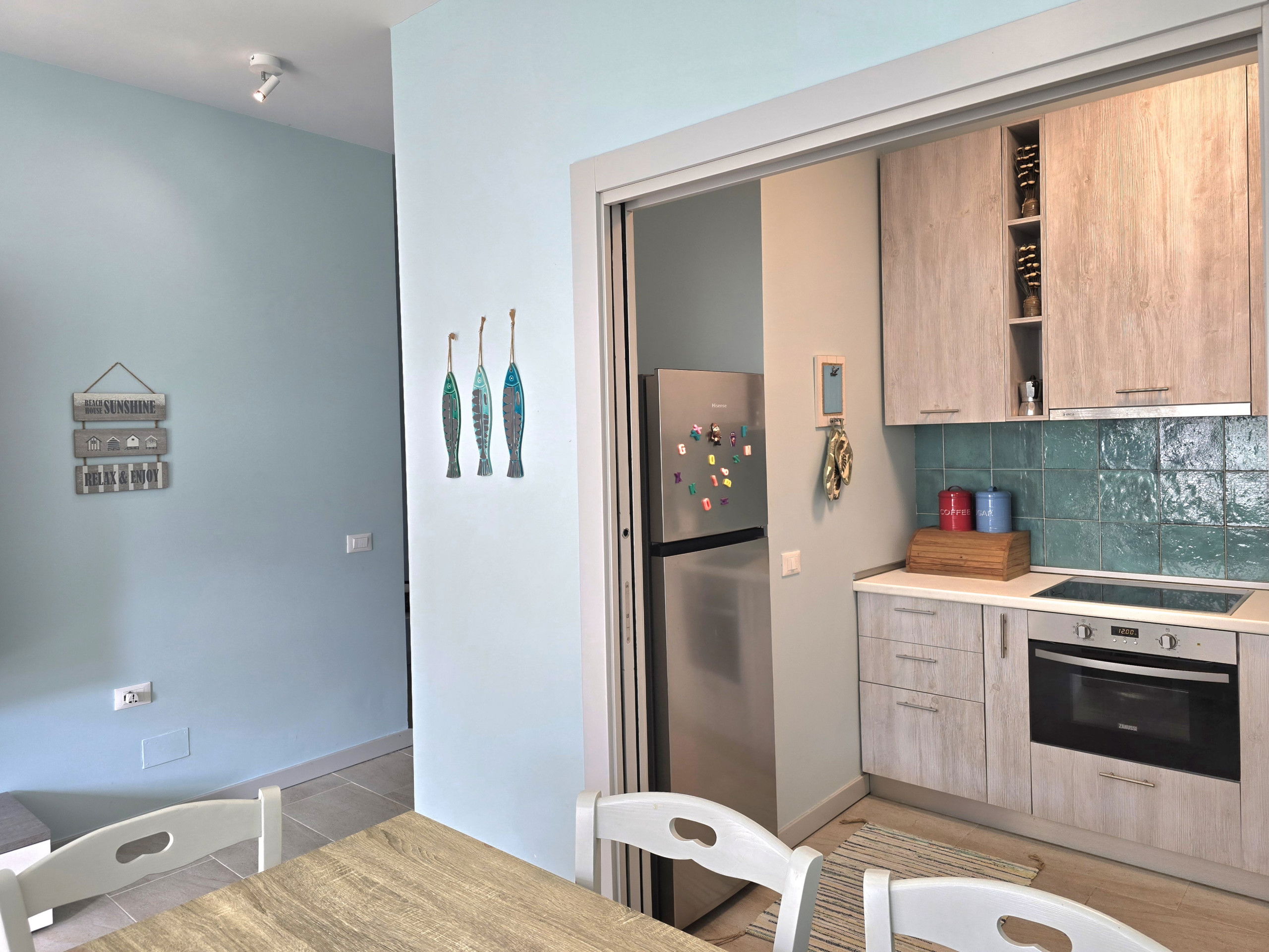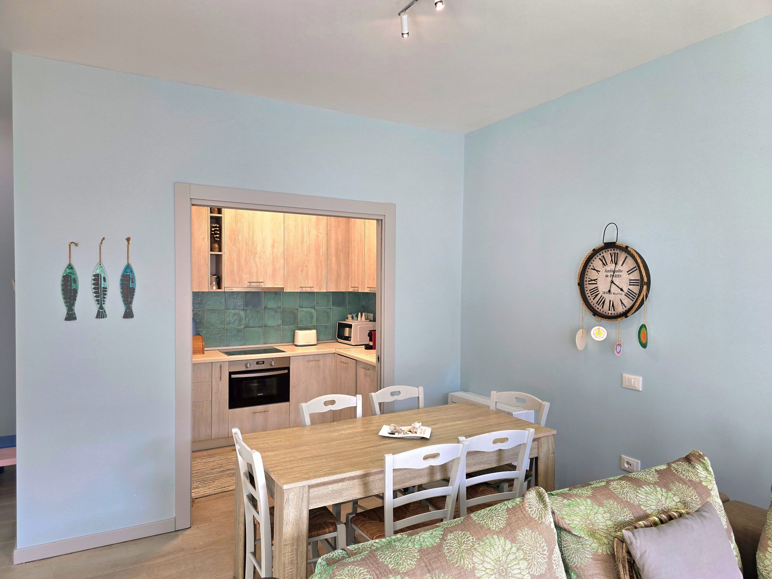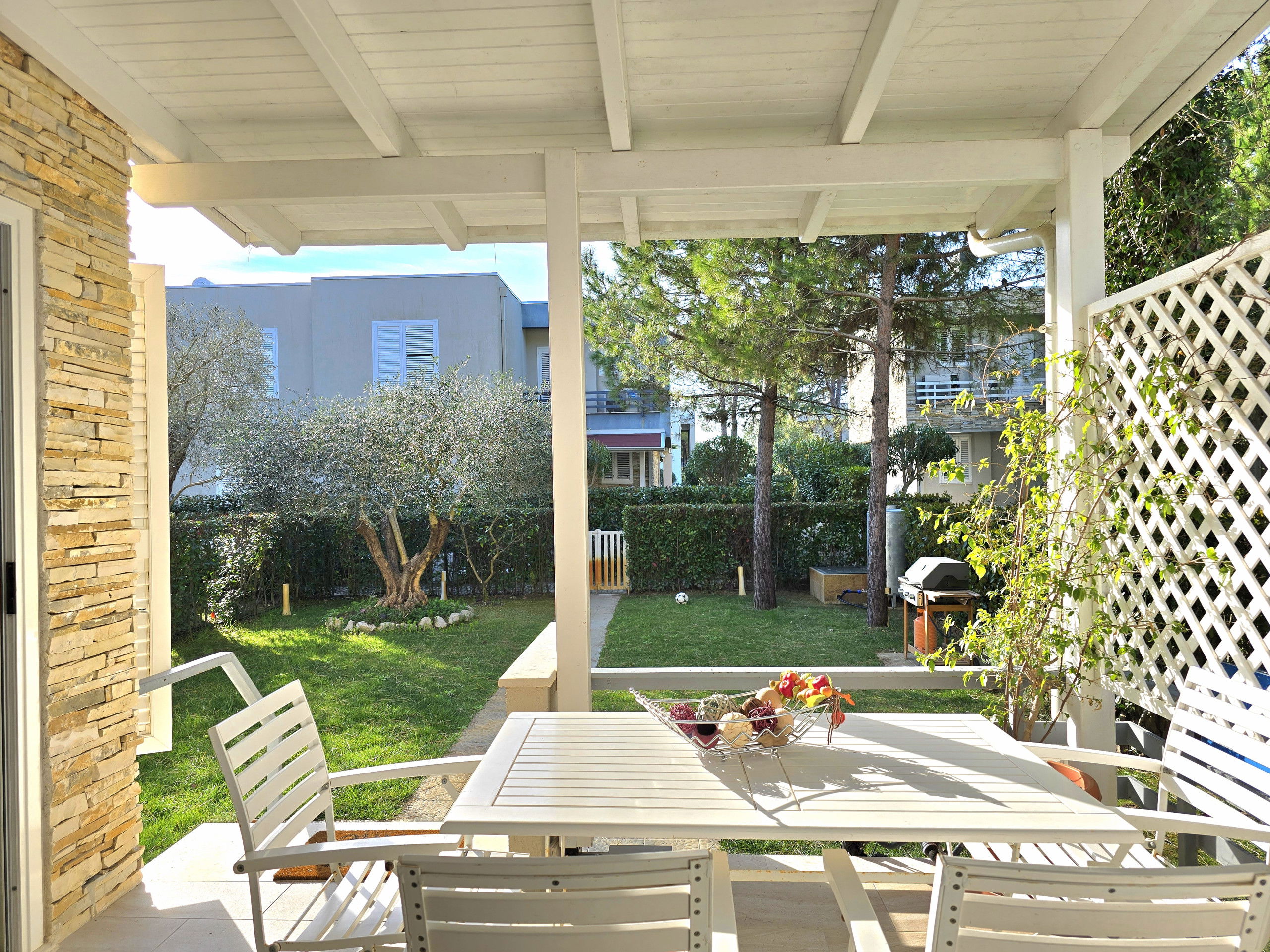 This accommodation is positioned on the ground floor of a two-story building. The big garden creates a great atmosphere for late evenings and early mornings. It is nicely furnished and it has everything needed for a comfortable holiday.