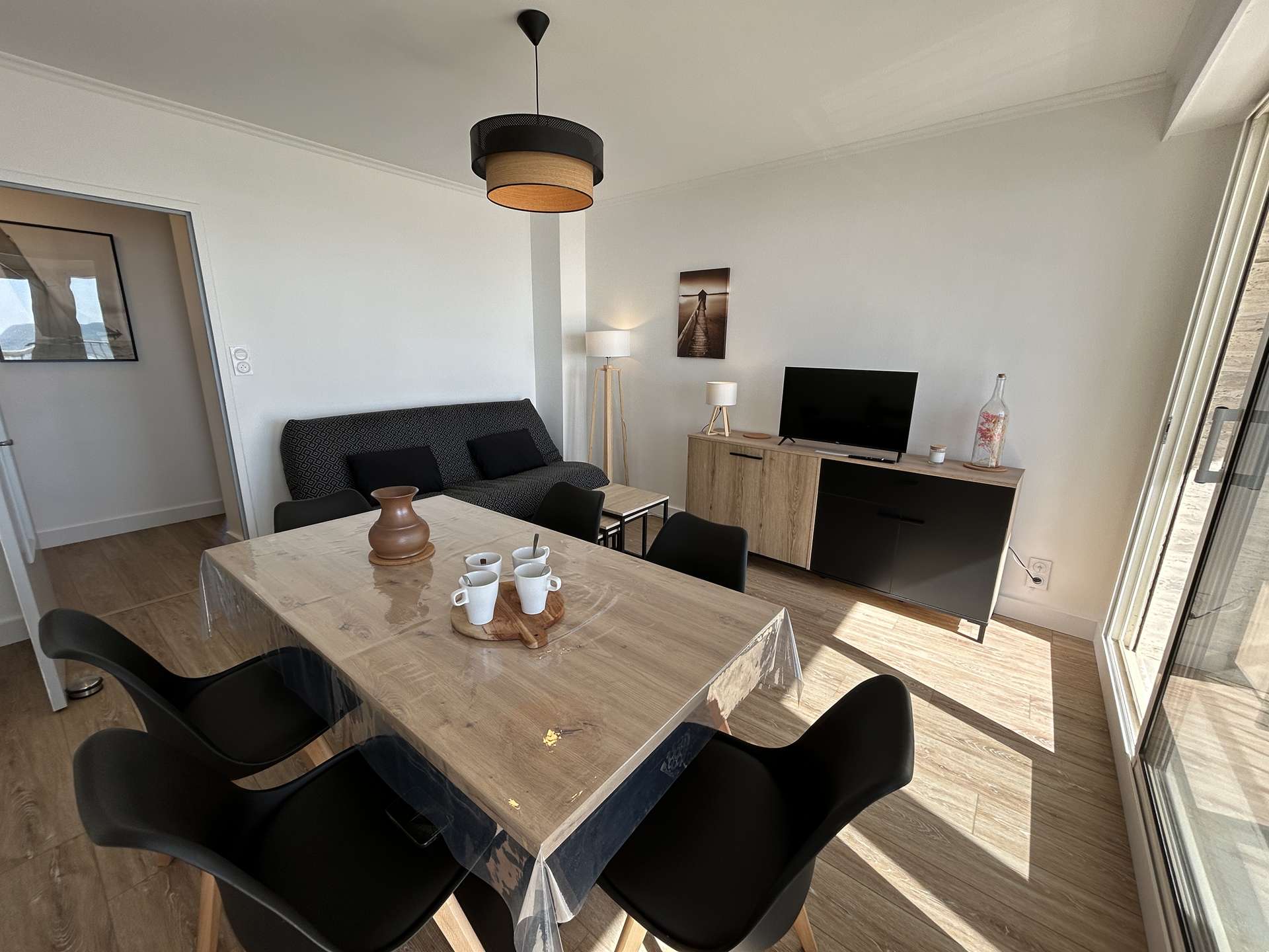 The highlights of this beachfront rental: This apartment offers a balcony with breathtaking sea views. You will also have access to a secure garage (located in a neighboring residence 400 meters away). This apartment is rated 2-star furnished tourist accommodation. End-of-stay cleaning is included.