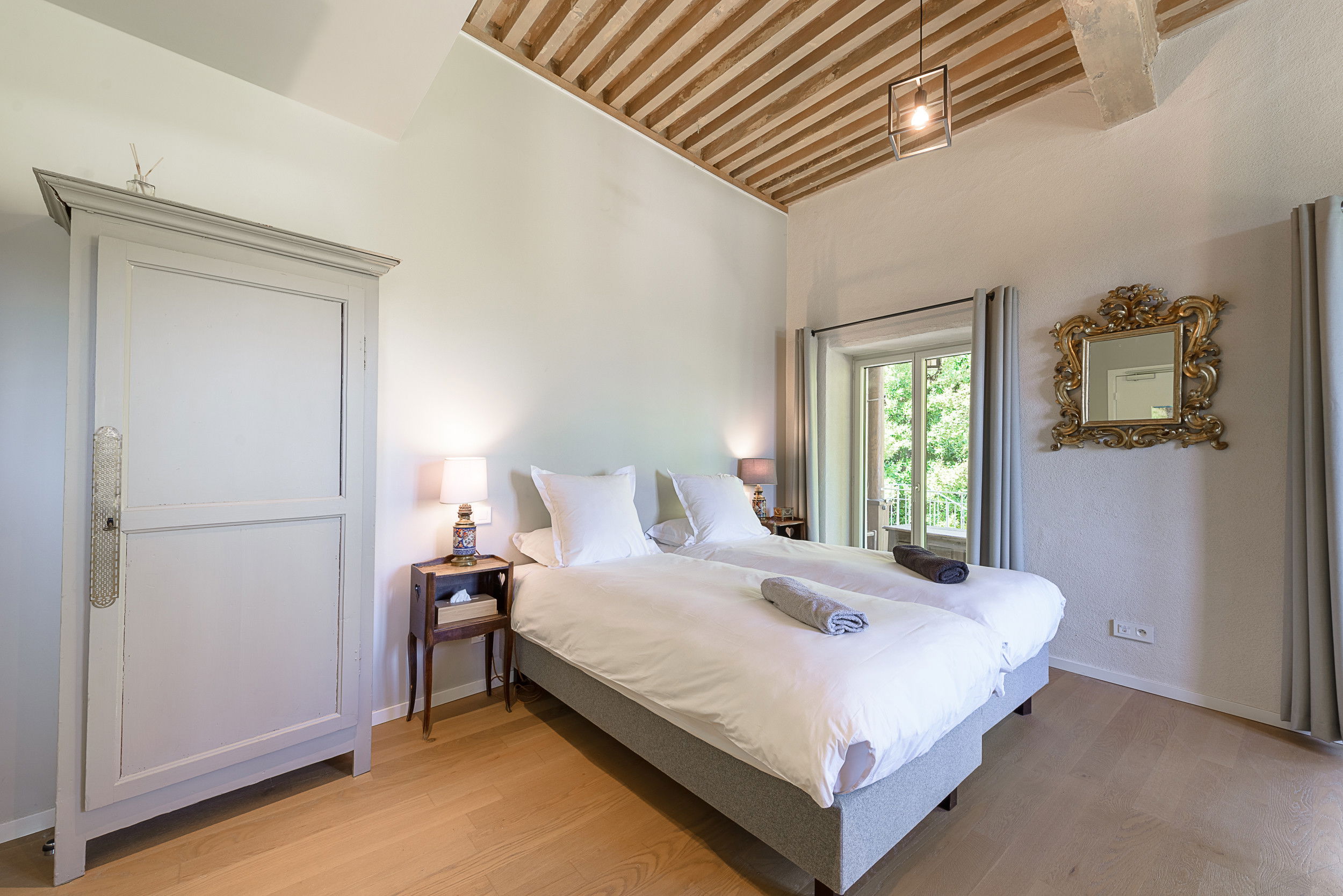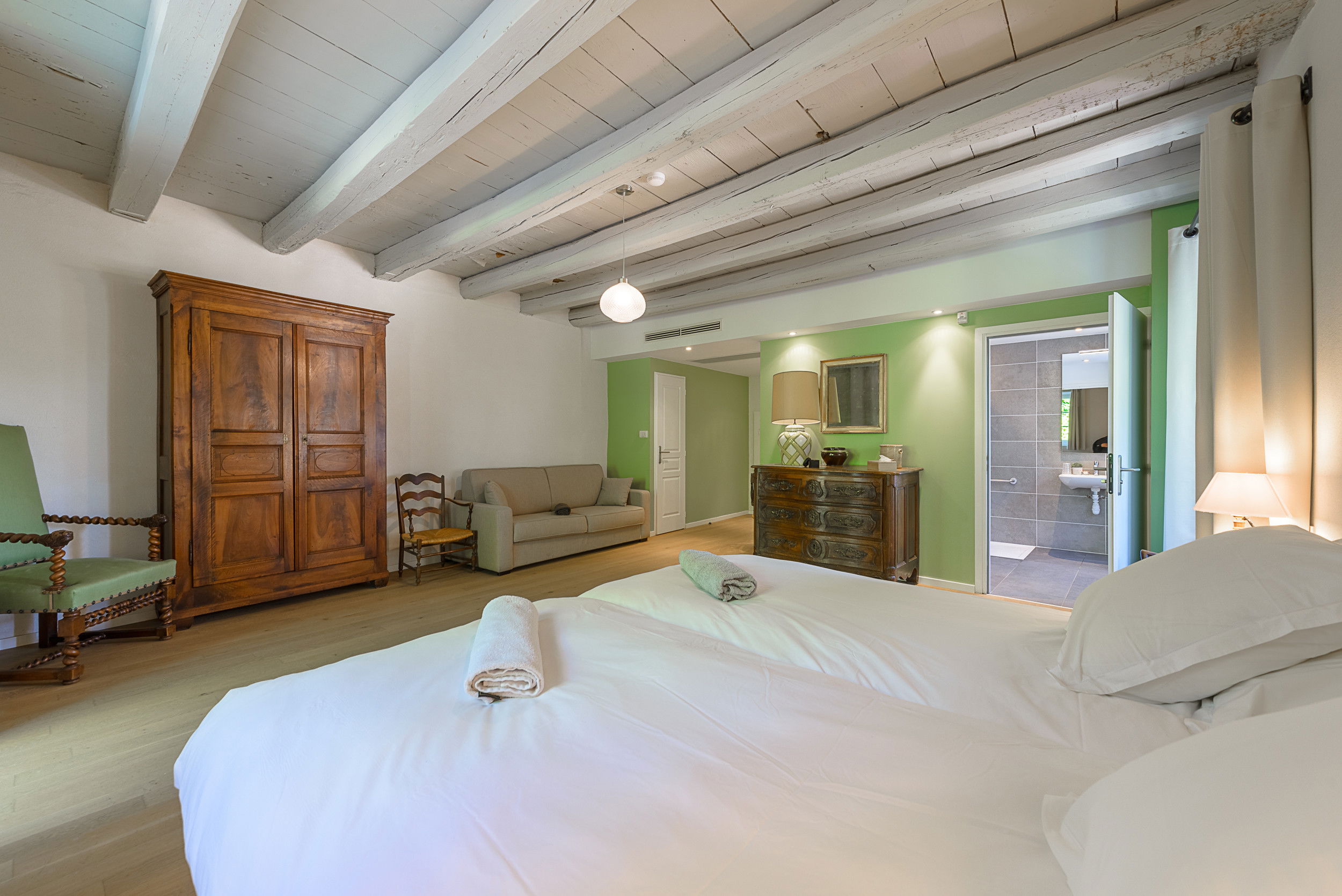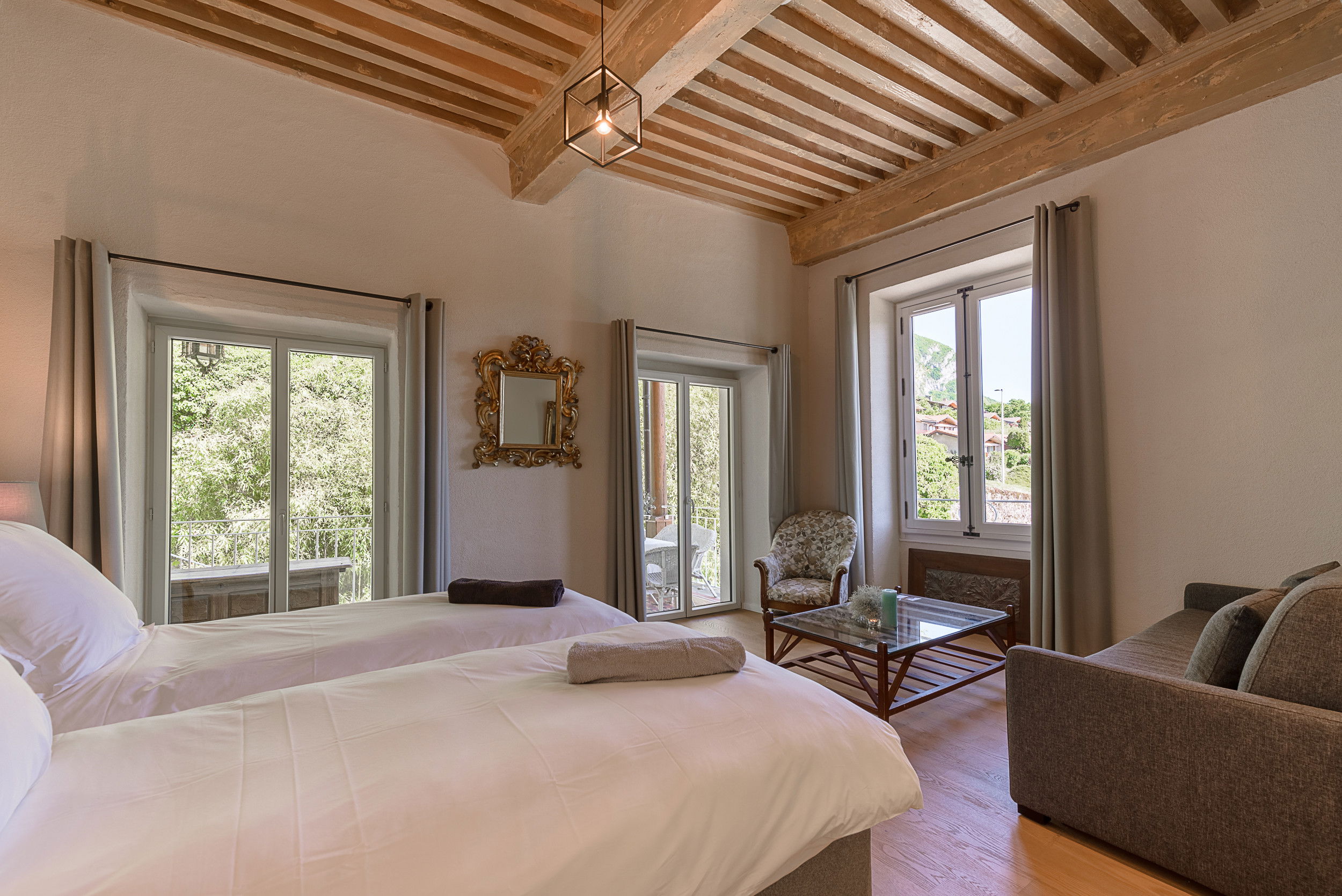 - Roc de Chère Room: 2 single beds twinnable (90x200), Double sofa bed (160x200), bathroom with double sink and bathtub with lake view, separate WC