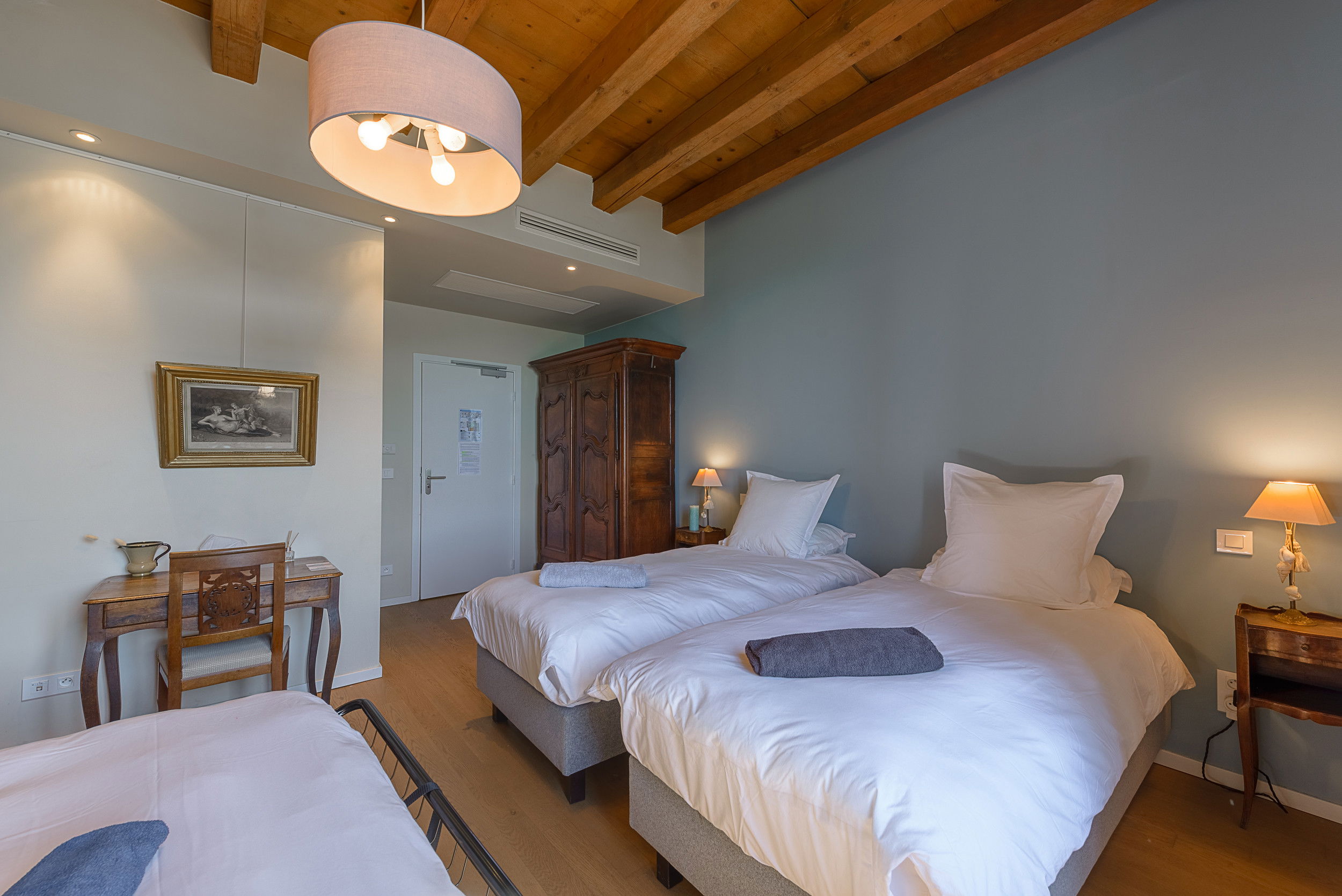 - Mont-Veyrier Room: 2 single beds twinnable (90x200), Double sofa bed (160x200), shower room with lake view and WC