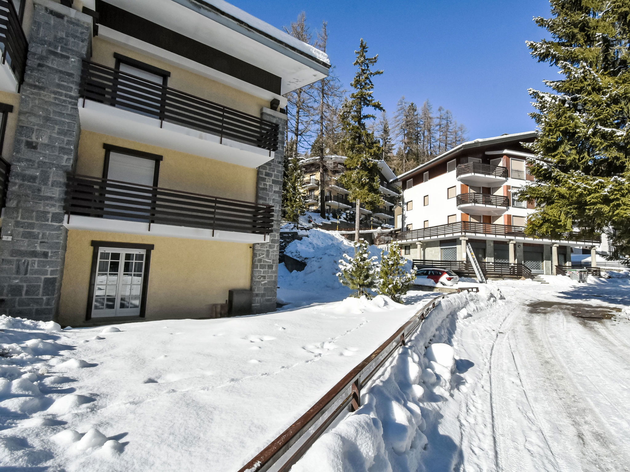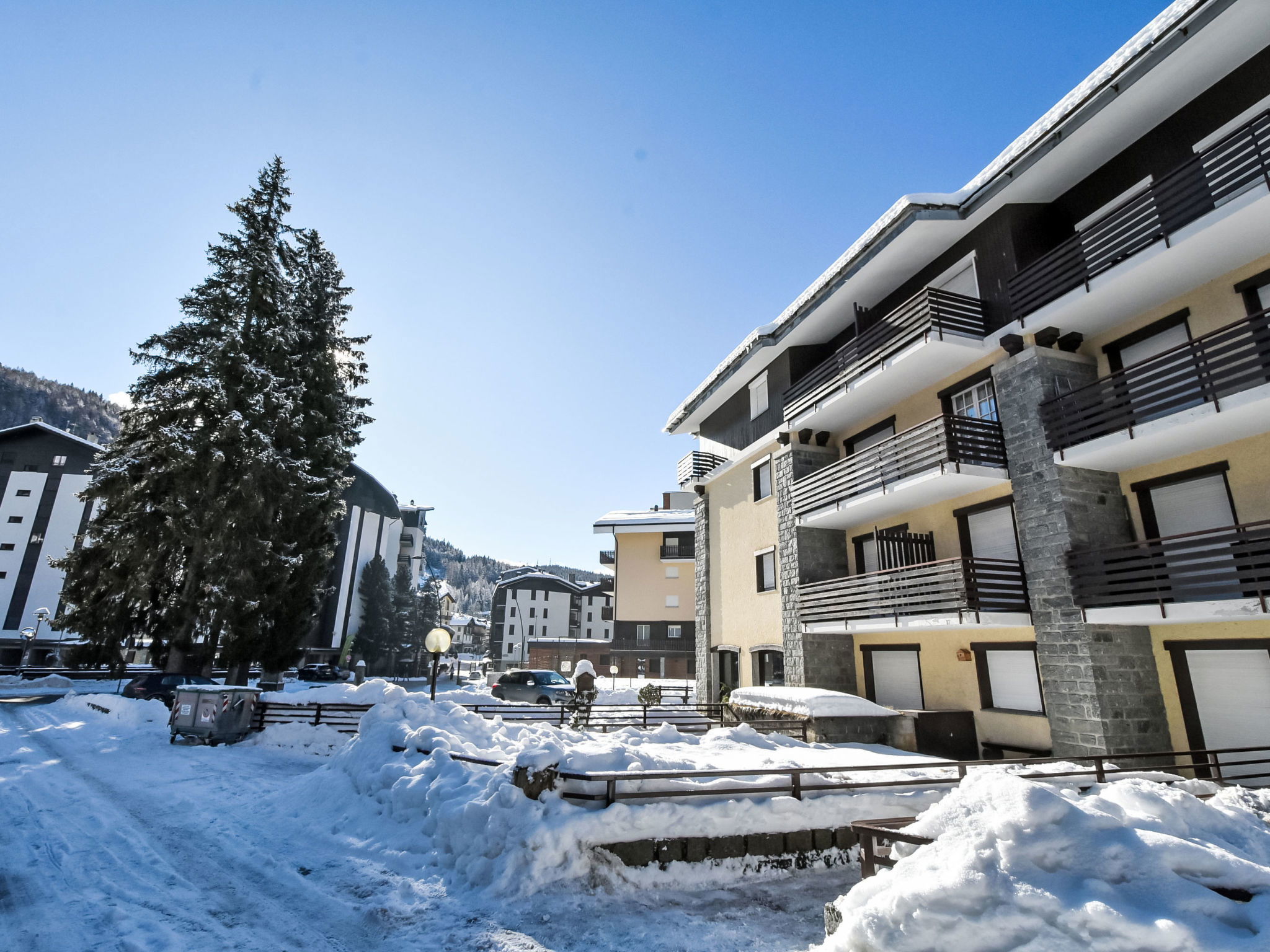 Small, comfortable apartment house "Tigli", 1'550 m a.s.l., 4 storeys, detached. In the centre of Madesimo, in a sunny position in the residential district, excellent location: right in the centre but still quiet, 150 m from the skiing area. In the complex: storage room for skis. Pre-arrival grocery service. Public parking on the road. Supermarket, restaurant 300 m, bar, café 50 m, bus stop 150 m. Chair lift 150 m. Well-known lakes can easily be reached: Lago di Como 44 km. Hiking paths: Andossi - Giardino Alpino Valcava, Lago d'Emet - Pizzo Spadolazzo, Sentiero del Cardinello, Val Febbraro. Please note: In case of good snow conditions, the house is accessible on skis. Additional accommodations can be booked.