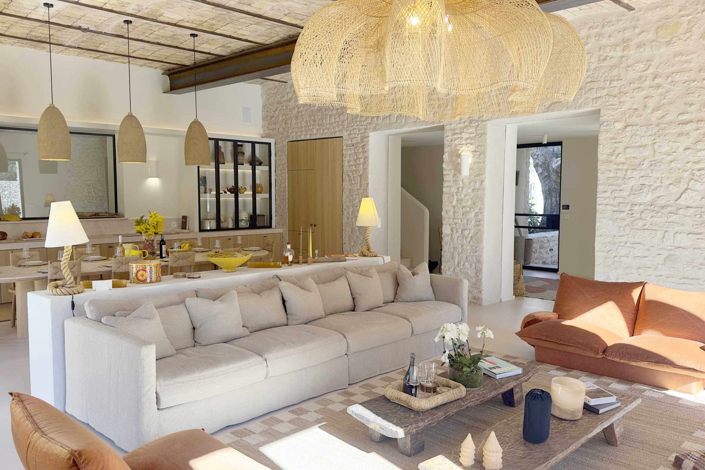 Le Mas de L'Eau Vive is an exceptional and tranquil property that seamlessly blends modern comfort with the natural beauty of its riverside setting. Elegantly designed for relaxation, the 295-square-metre home features spacious living areas bathed in natural light, opening onto the garden.