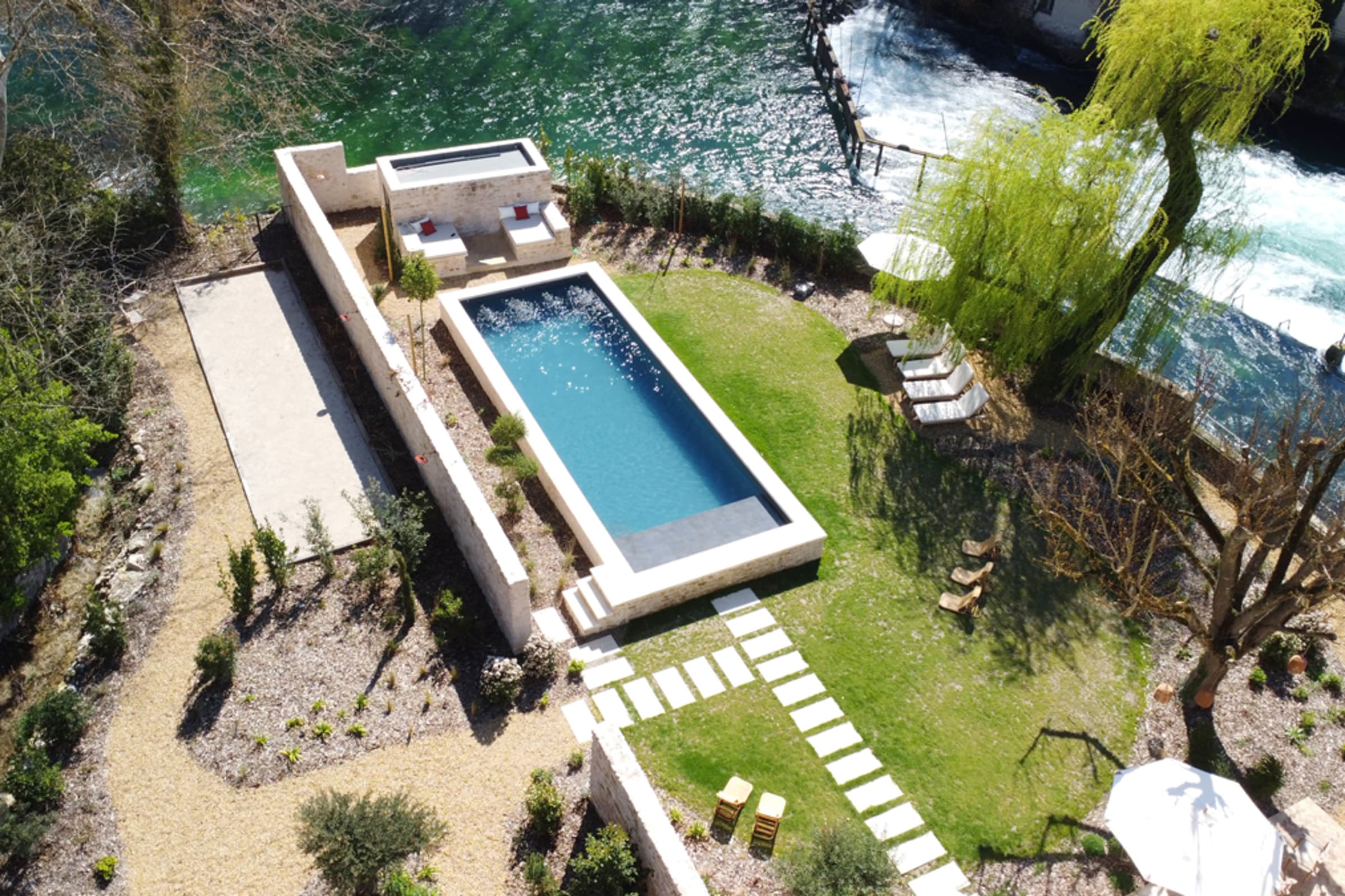 The garden offers exclusive access to the Sorgue, making it the perfect place to cool off in the summer or enjoy the soothing sounds of the river.