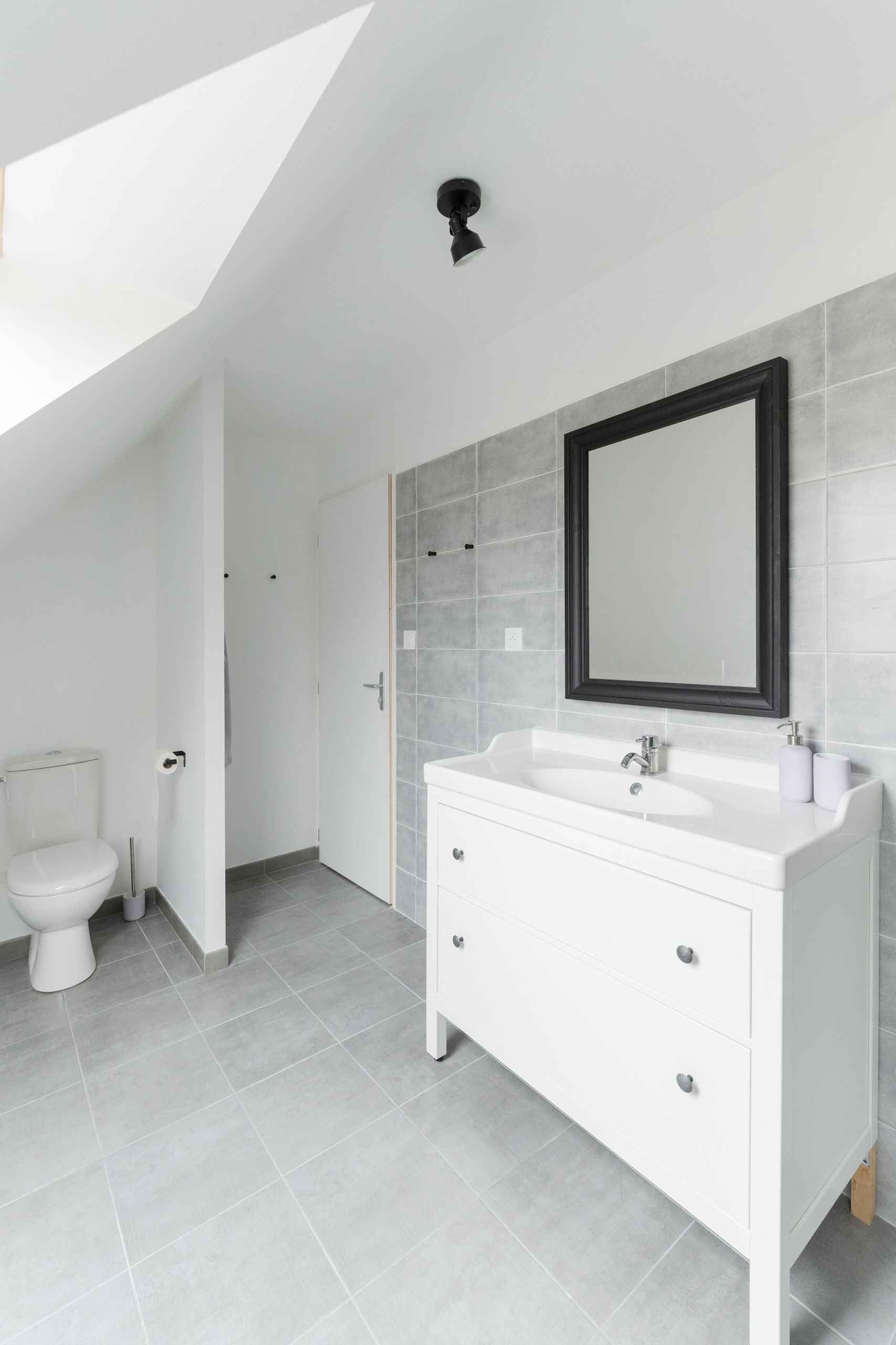 Upstairs, you will find the three bedrooms. The has a queen-size double bed (160x200). The second consists of two single beds. Finally, a bunk bed is located in the third bedroom. A modern bathroom with a shower and toilet completes this floor, ensuring you have all the necessary comfort.
