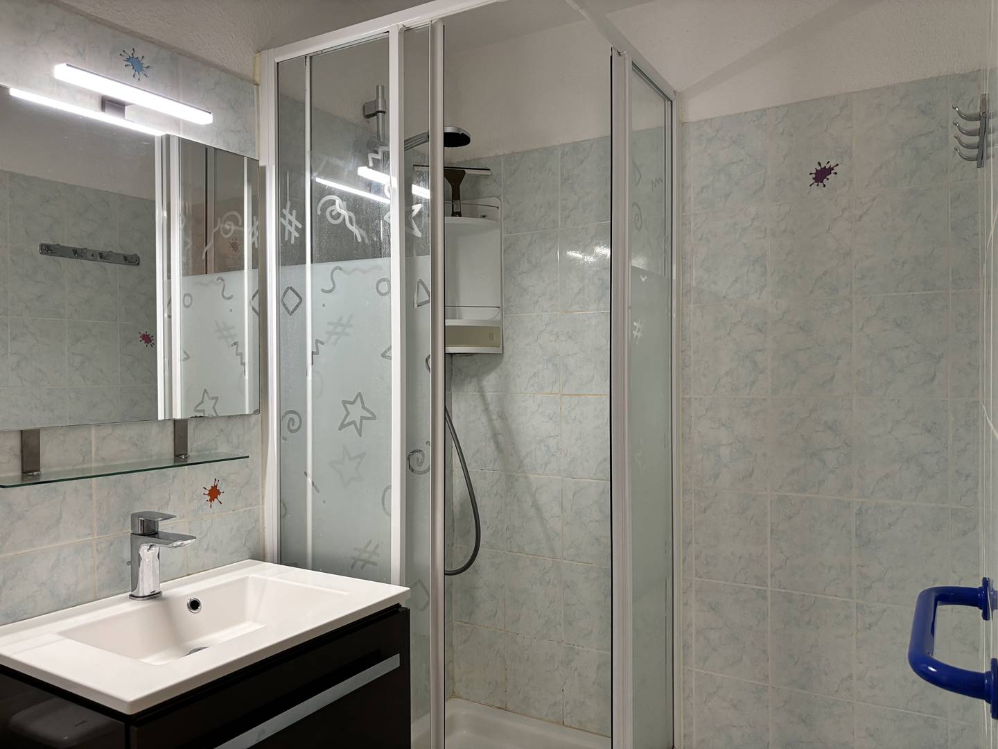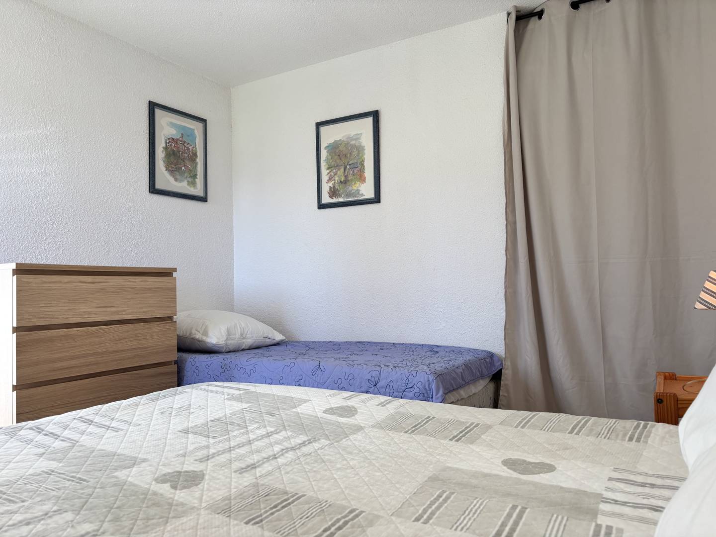 The apartment consists of a living room with a sofa bed, a kitchenette, a bedroom with a 140x190 double bed and a 90x190 single bed, and a shower room with toilet.