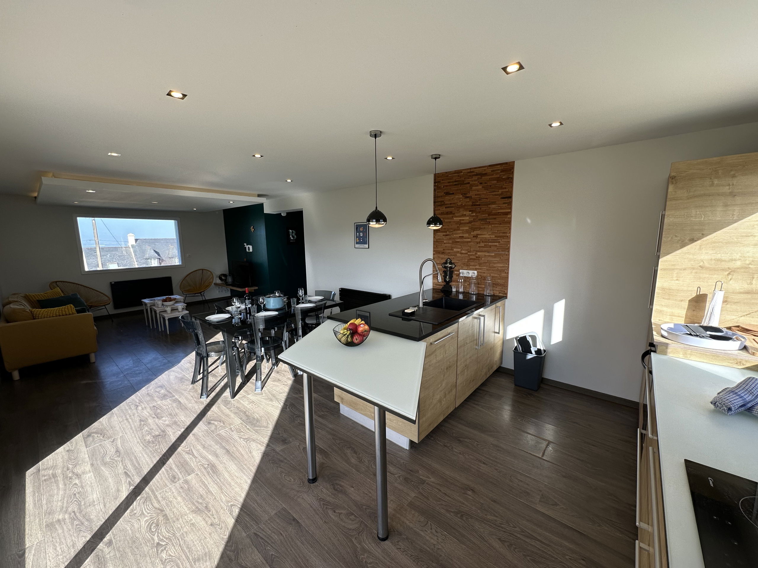 Upon entering the house, you will discover a beautiful living area, consisting of a lounge, a living room and a lovely open-plan kitchen. This bright room offers you a lovely sea view for convivial moments with family or friends.