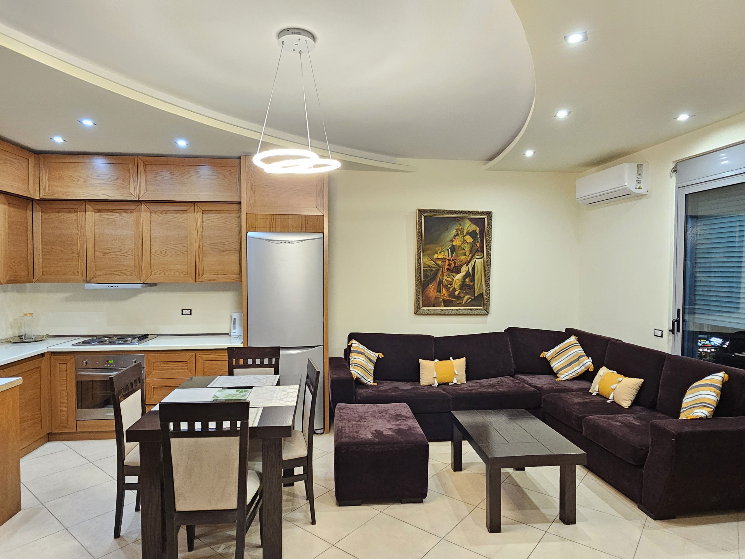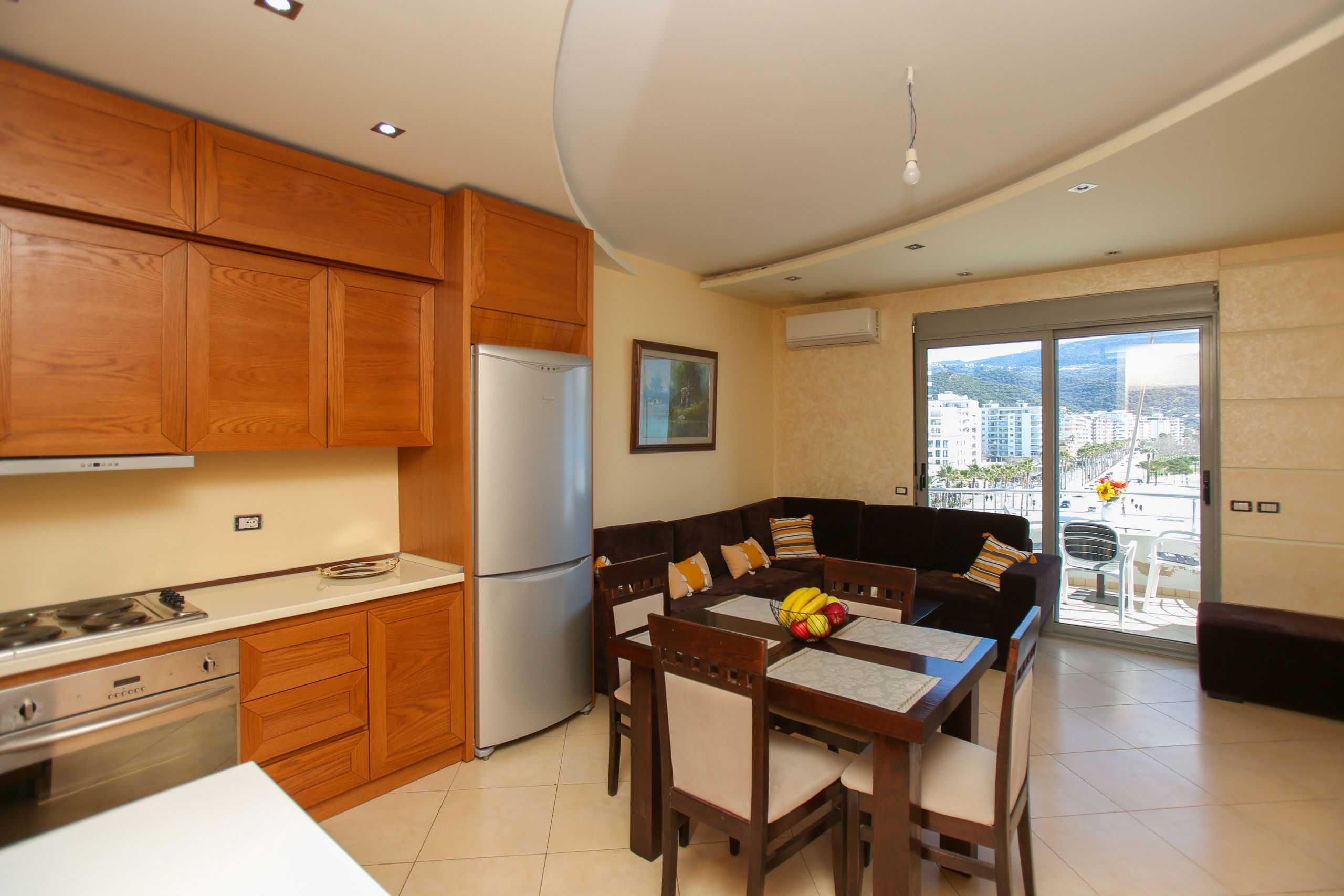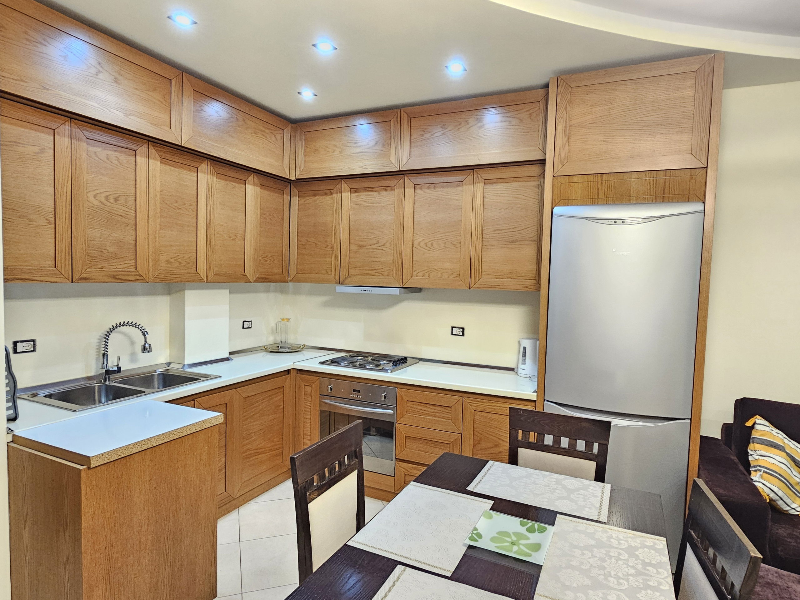 The apartment in Vlorë has 2 bedrooms and capacity for 5-6 people. A cosy 100 m² fully equipped accommodation, positioned seafront, with sea and mountain view. It is located 10 m from "Big Market" supermarket, 150 m from the sandy beach, 30 km from "Llogara National Park", 150 km from "Tirana International Airport" and is situated in an ideal area for families and near the sea. It has lift, washing machine, internet access (wifi), hairdryer, balconies, heat pump heating, air conditioning, 1 Television. The American kitchen, electric, is equipped with refrigerator, microwave, oven, freezer, dishes/cutlery, kitchen utensils and kettle.
