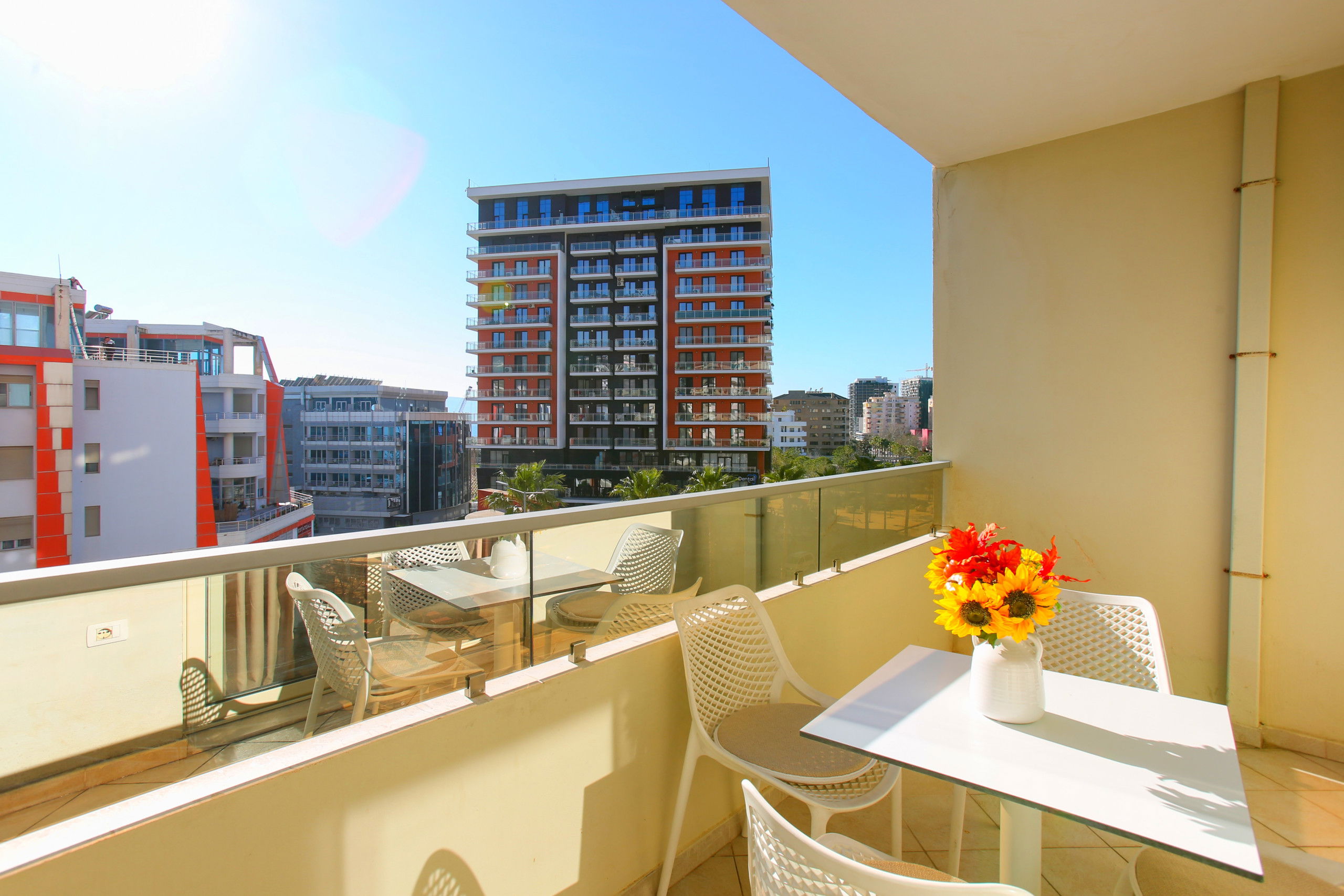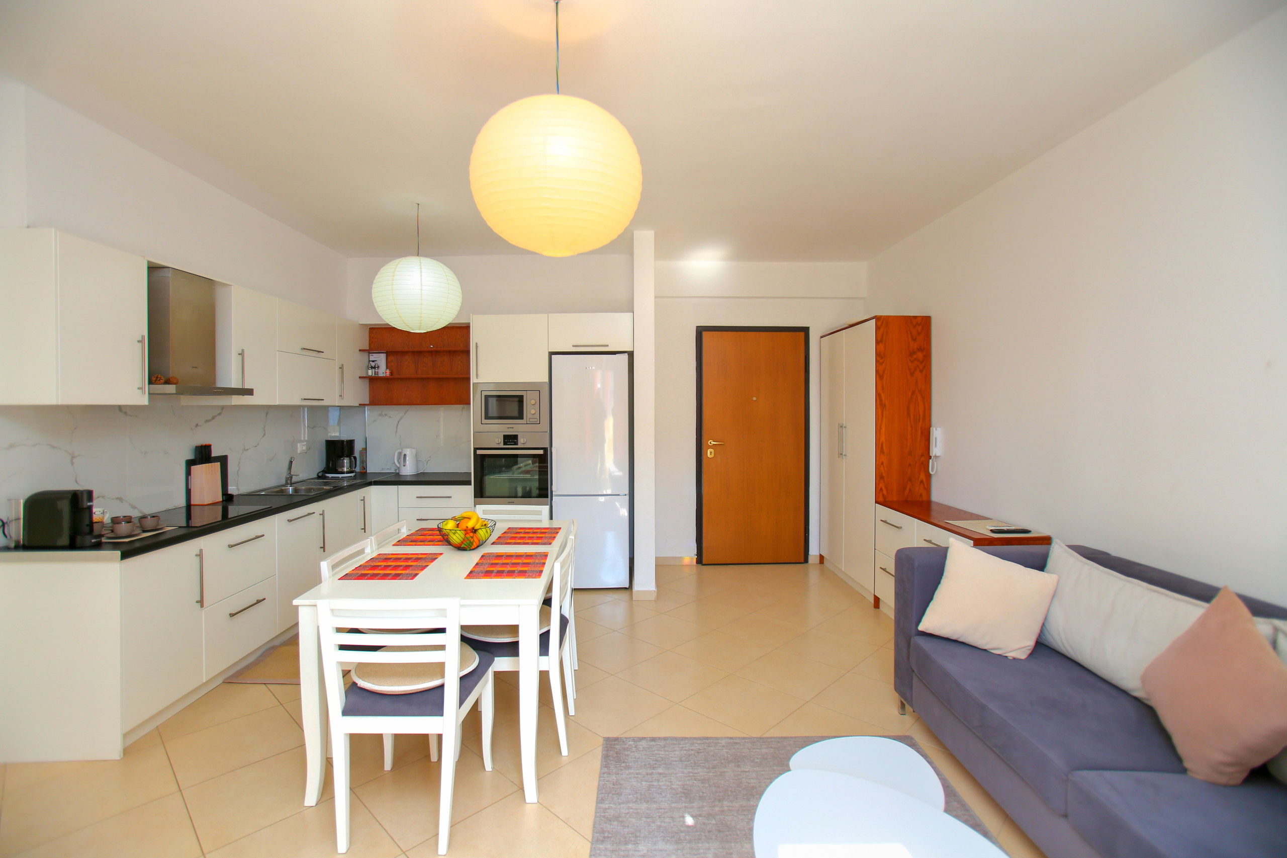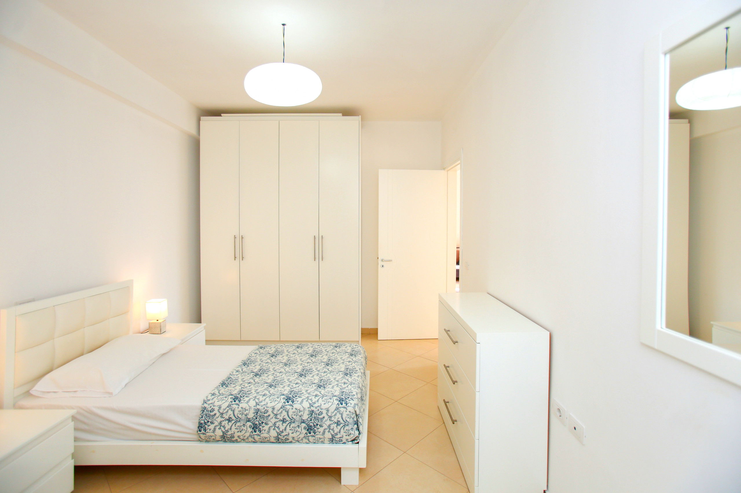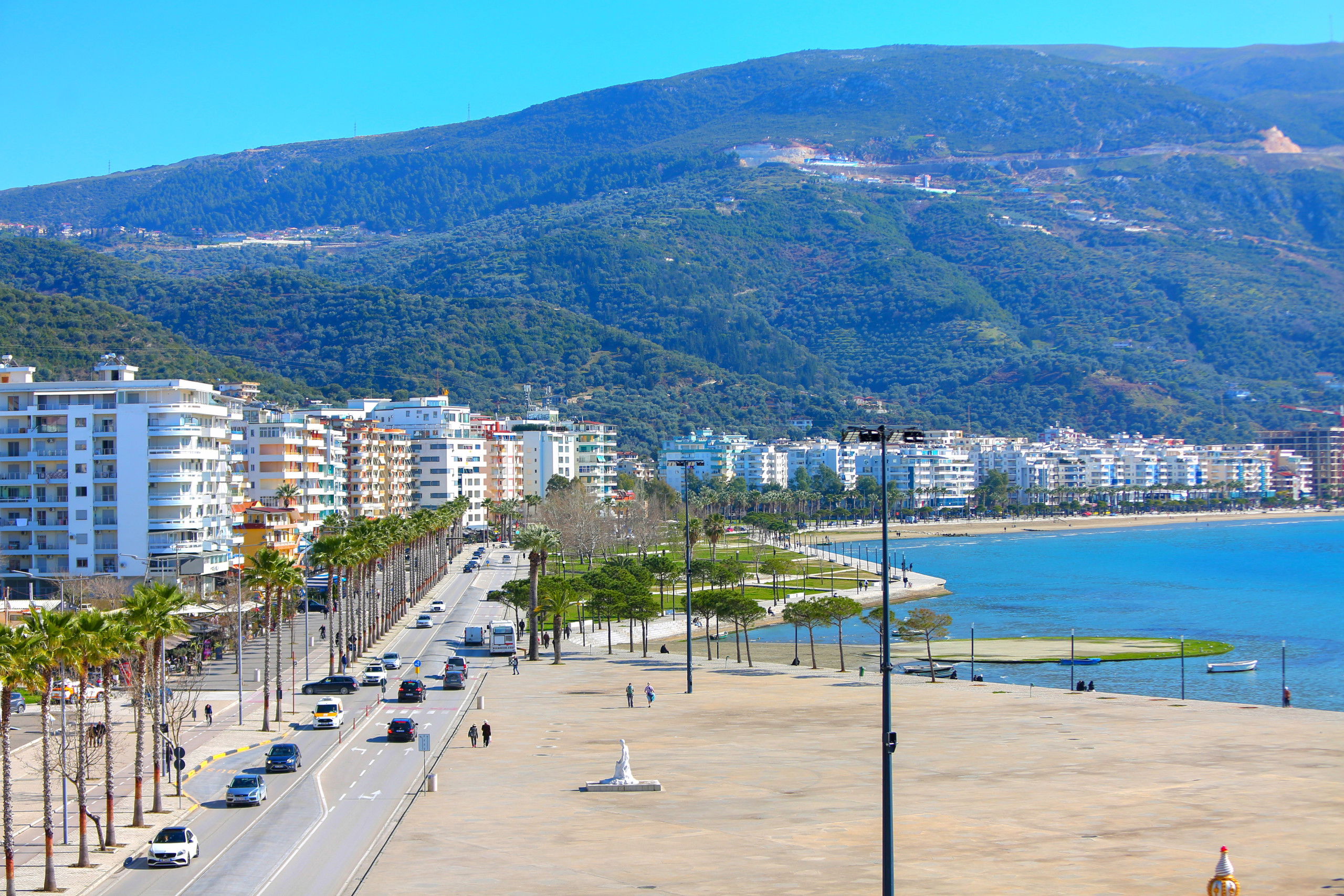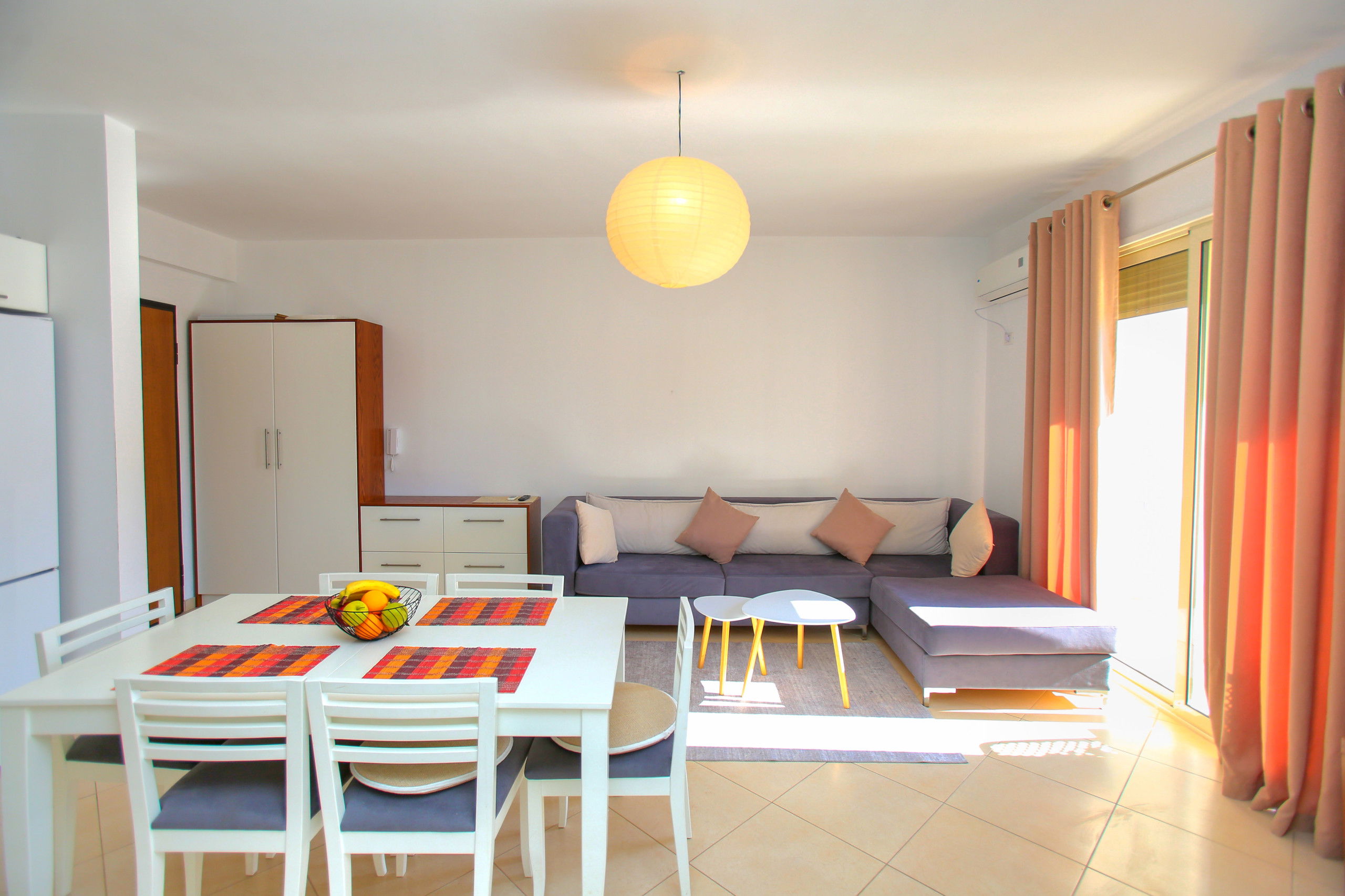 The apartment in Vlorë has 2 bedrooms and capacity for 5 people. A cosy 80 m² fully equipped accommodation, positioned seafront, with sea and mountain view. It is located 10 m from "Big Market" supermarket, 150 m from the sandy beach, 30 km from "Llogara National Park", 150 km from "Tirana International Airport" and is situated in an ideal area for families and near the sea. It has lift, washing machine, internet access (wifi), hairdryer, balconies, heat pump heating, air conditioning, 1 Television. The American kitchen, electric, is equipped with refrigerator, microwave, oven, freezer, dishes/cutlery, kitchen utensils and kettle.