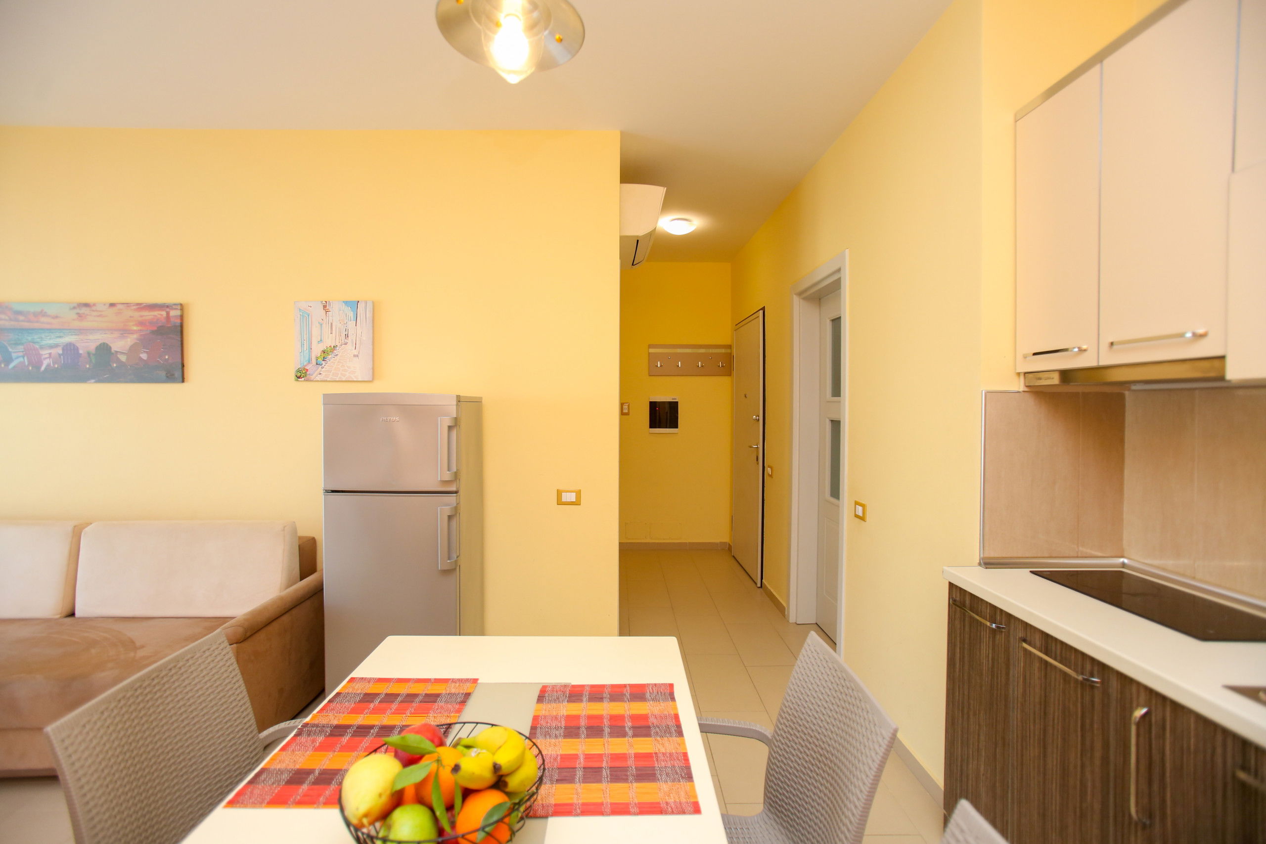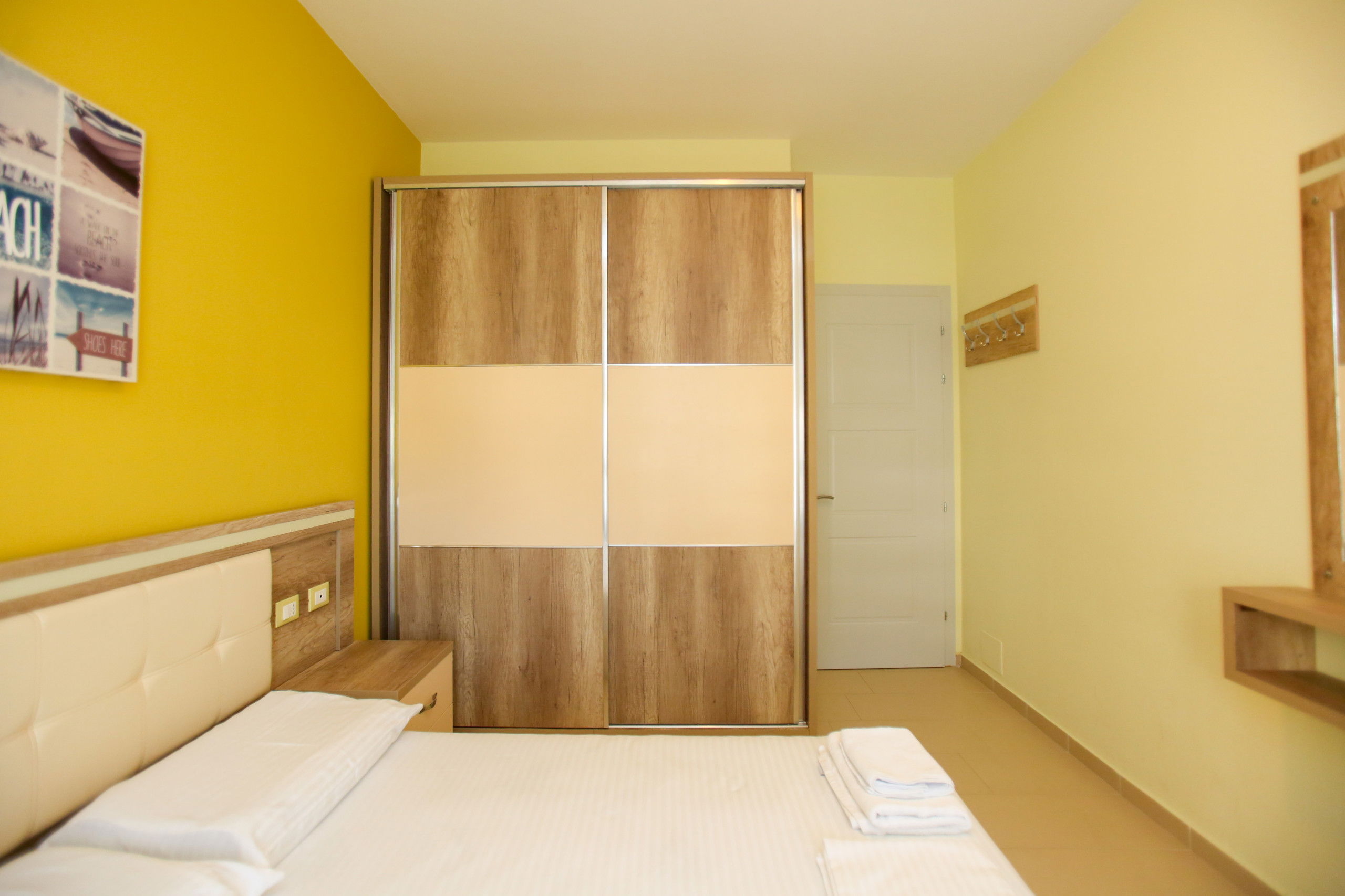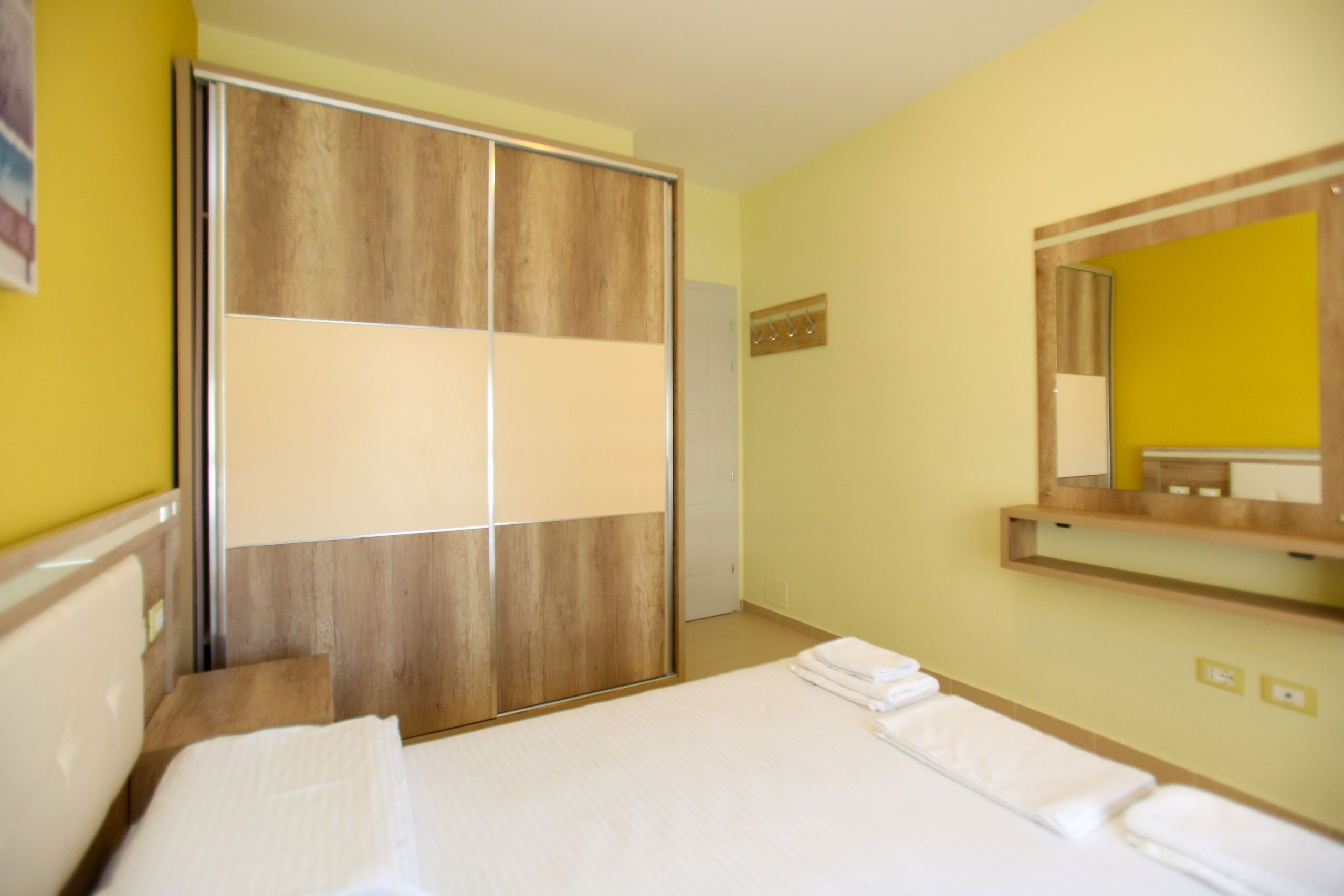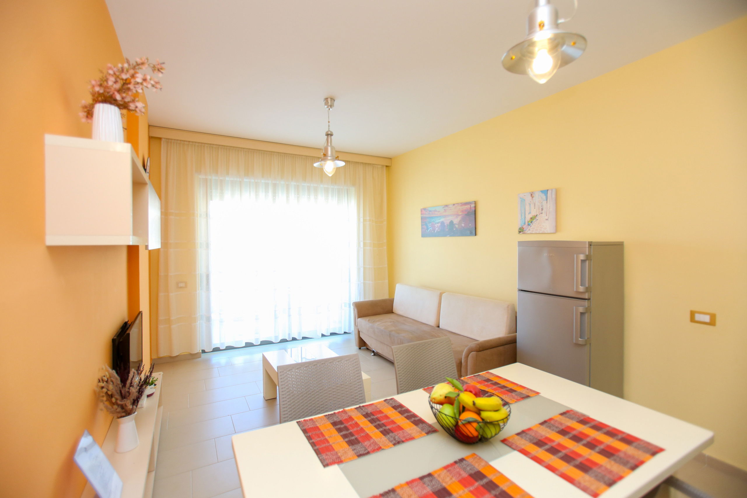 The apartment in Vlorë has 1 bedrooms and has capacity for 4 people. The apartment is 60 m².The property is located 10 m from The he restaurant, 145 m from Tirana International Airport international airport, 1 km from Jonufra rock beach, 45 km from Llogara National Park nature reserve. The housNew Beach sand beach, 50 m from the supermarket, 50 m from the from te is situated in a residential neighborhood next to the sea. The accommodation is equipped with the following items: lift, garden, dryer, iron, internet (Wi-Fi), hair dryer, balcony, gym / fitness centre, central heating, air-conditioned, garage the same building, 1 fan, 1 TV.In the electric open plan kitchen, refrigerator, microwave, oven, freezer, dishwasher, kitchen utensils, toaster and kettle are provided.