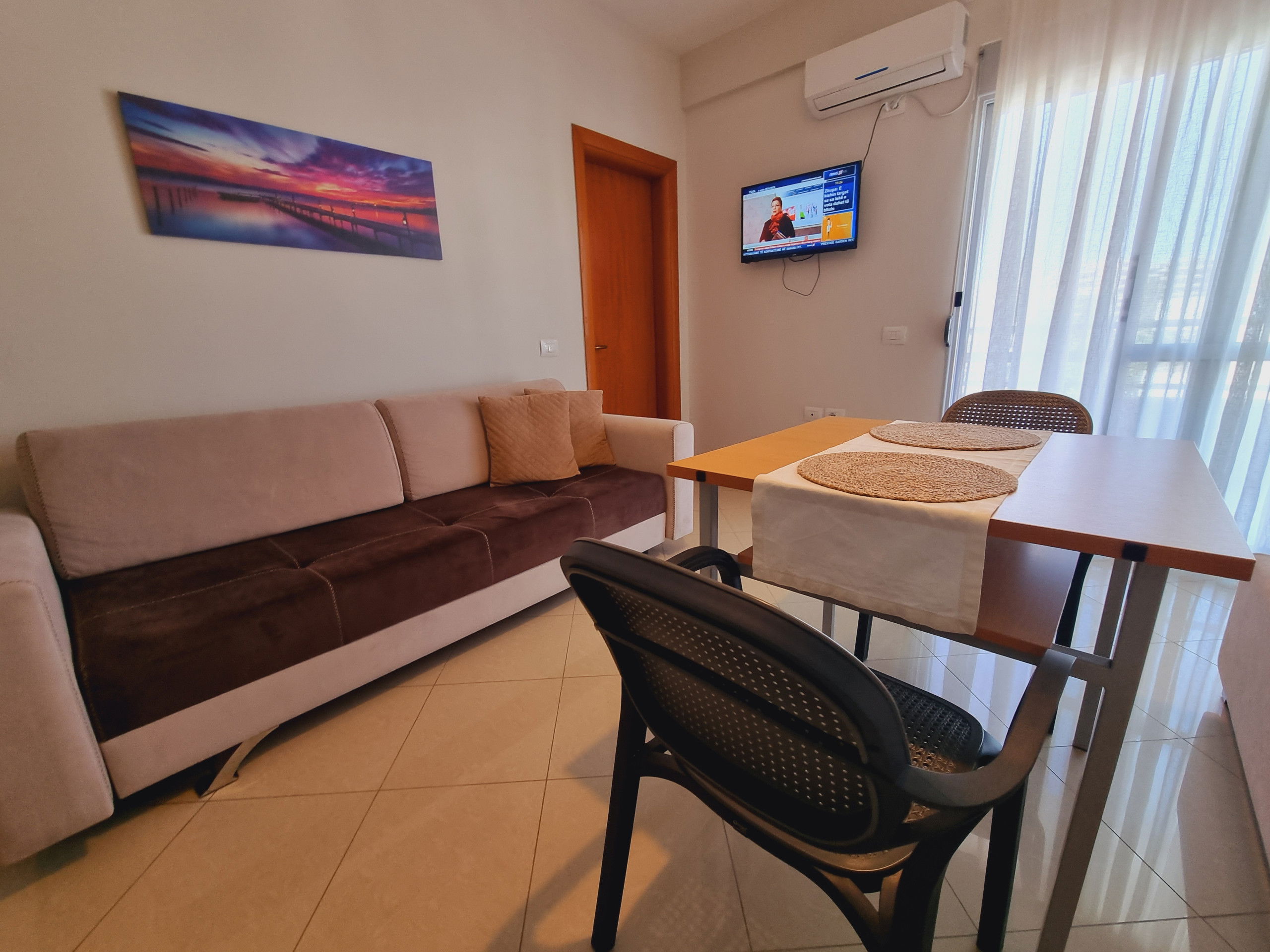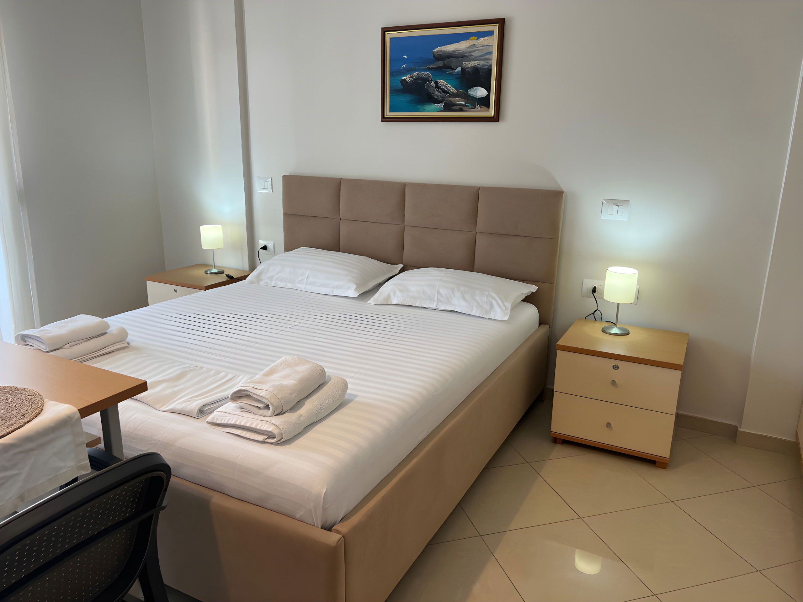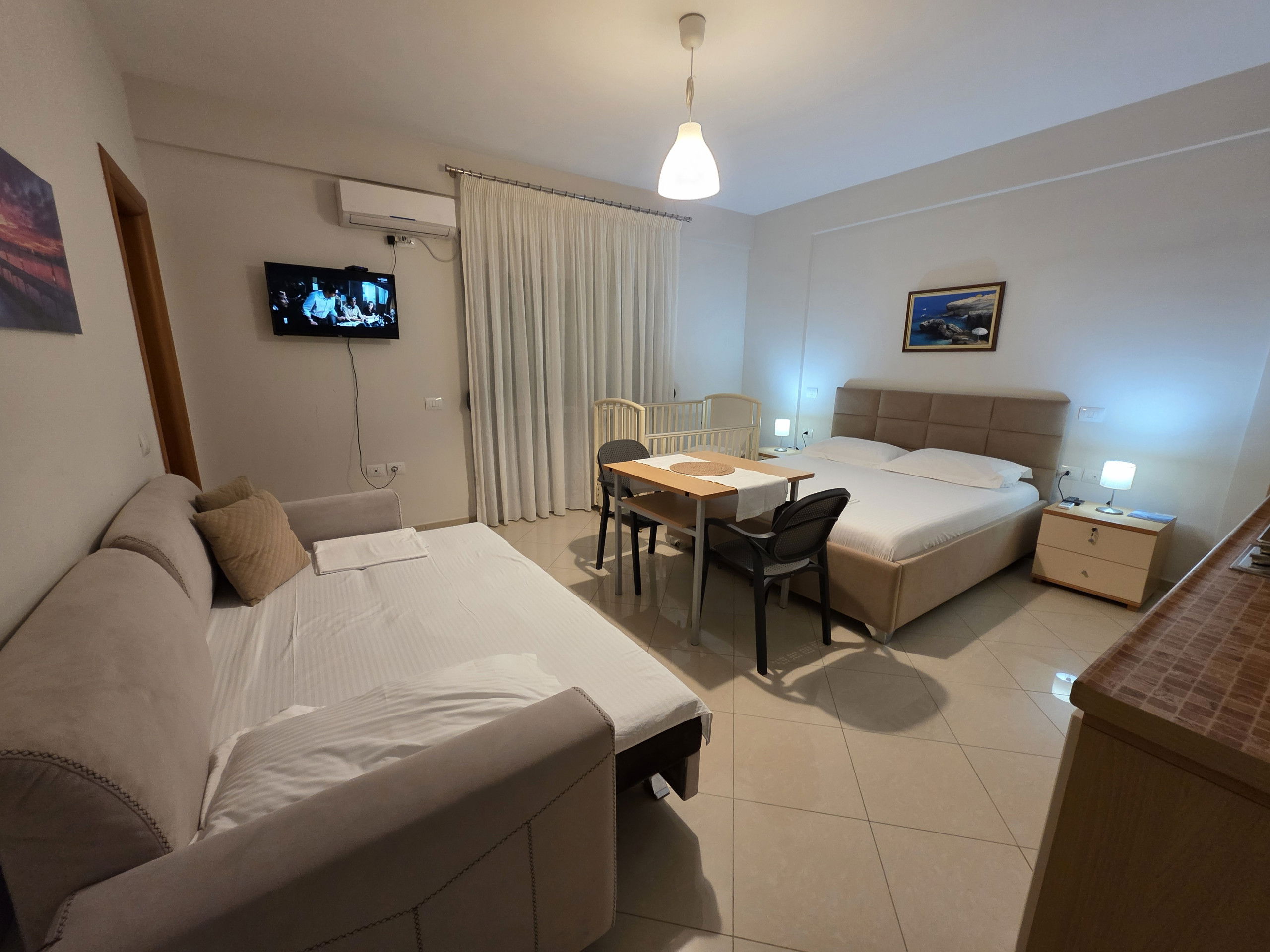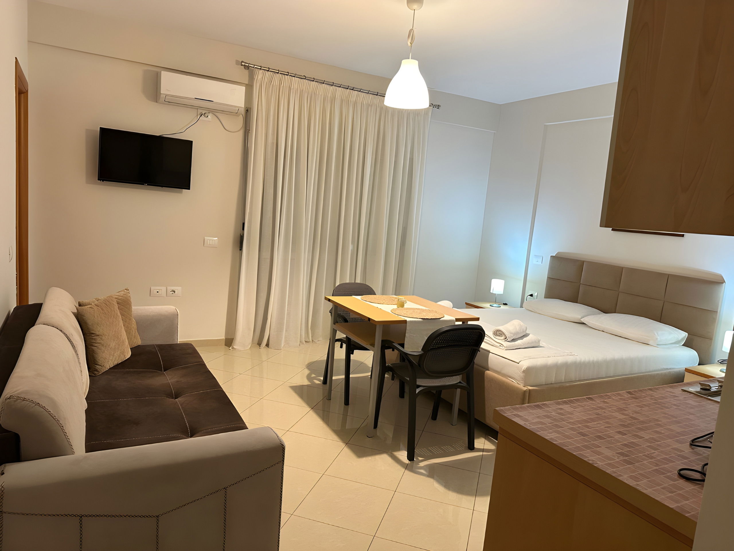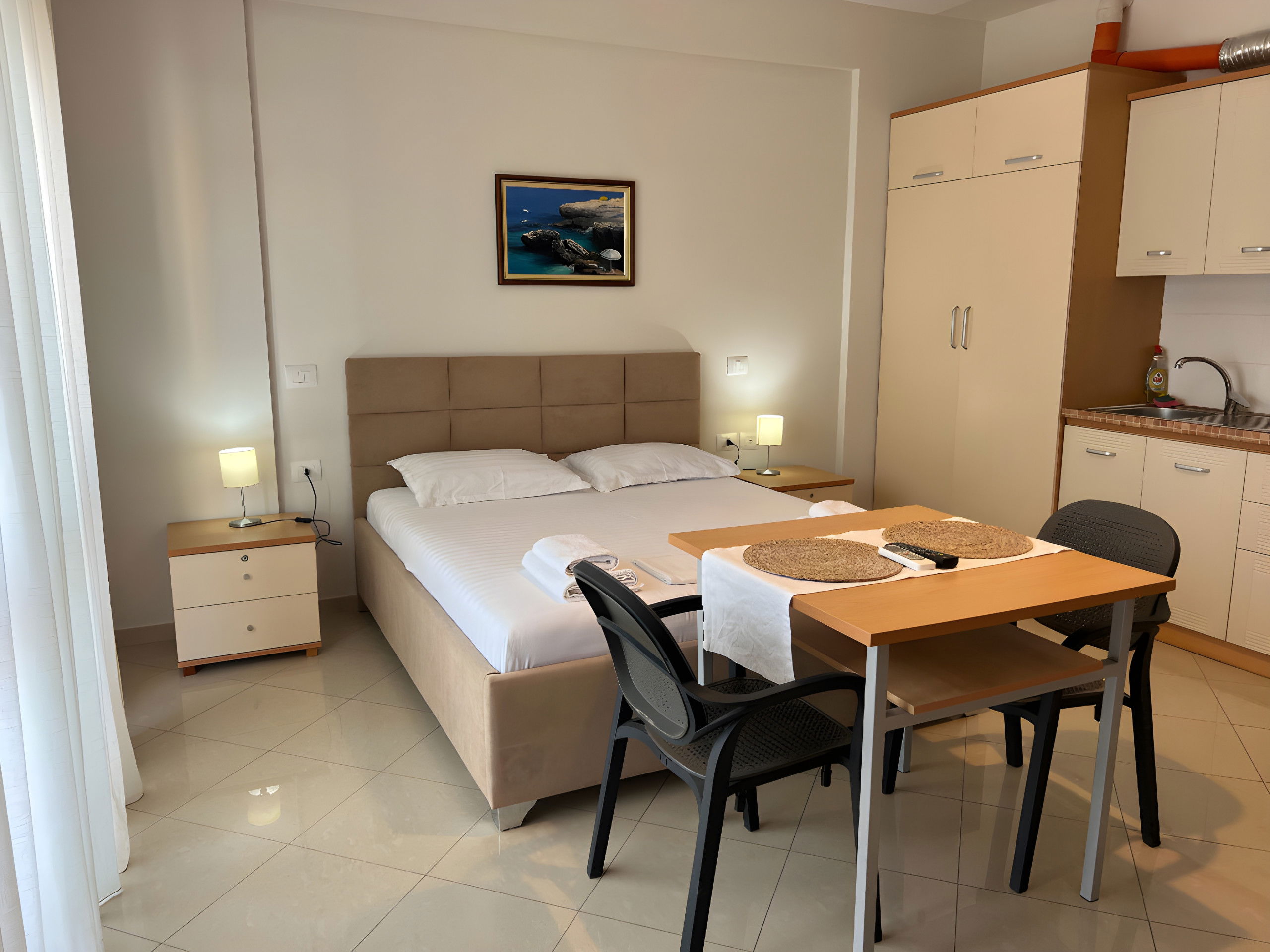 Located ideally in the city centre, the studio is just steps away from local restaurants, coffee shops, and a supermarket. The famous Plazhi Vjeter sandy beach is only 1 km away, while the Rock Beach (Uji Ftohte) is within 3 km. Nearby attractions include San Giorgio Restaurant and Regina Garden, making it an excellent base for exploring Vlorë.