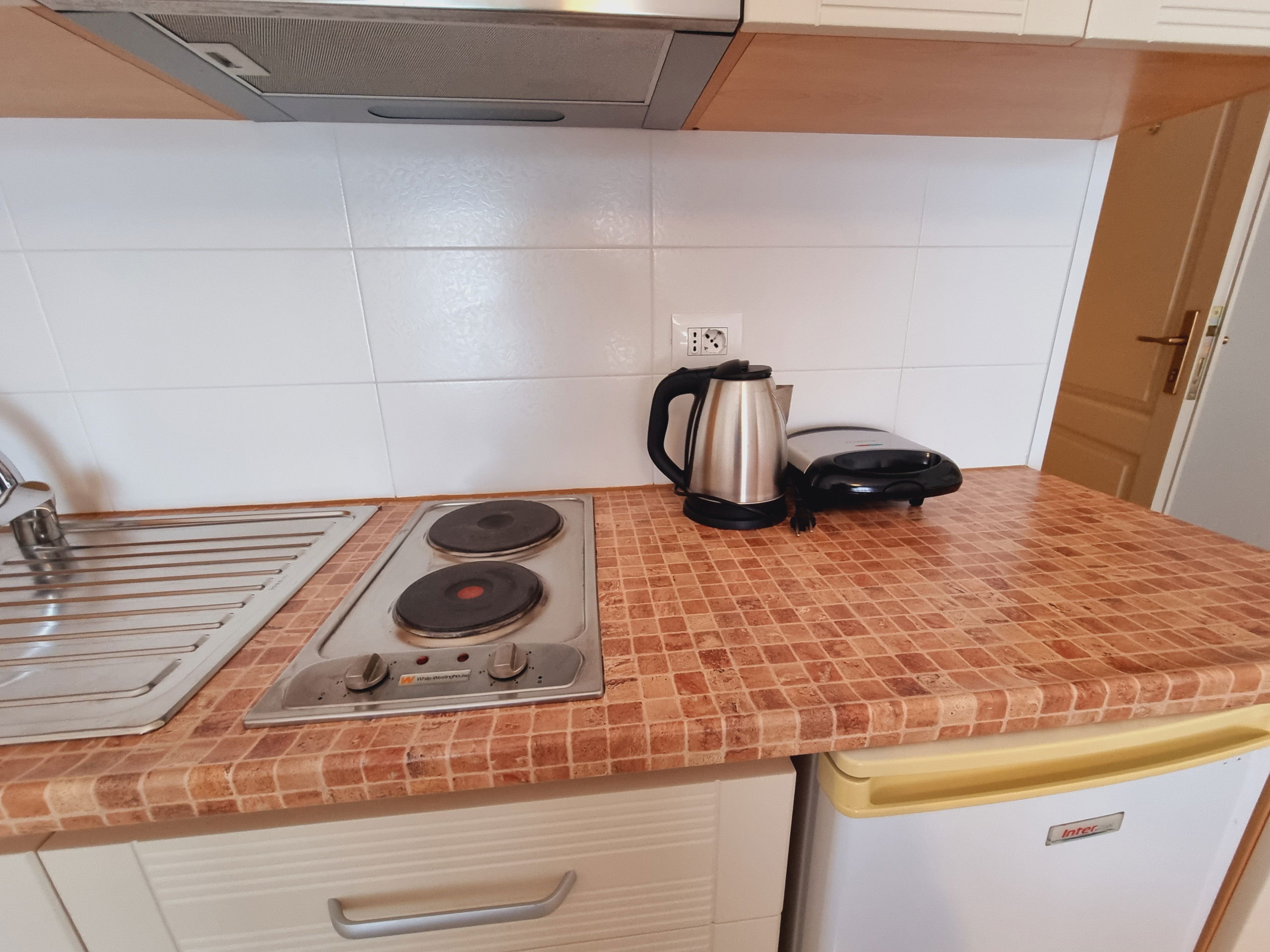 A single bathroom with a shower ensures convenient personal care, while complimentary WiFi keeps guests connected. The studio is equipped with air conditioning to ensure comfort during warmer months, and a TV provides entertainment options. Additional conveniences include an iron and wardrobe closet for a comfortable stay.