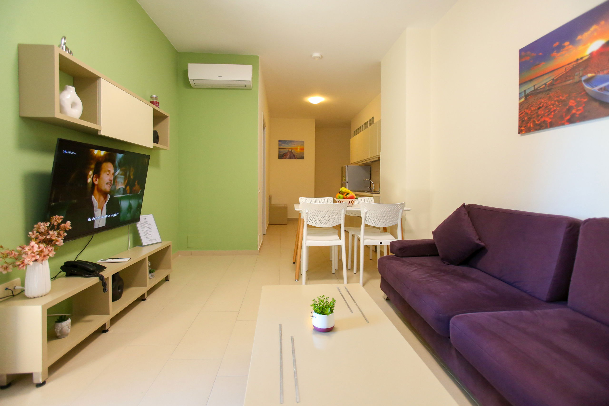 Discover a cosy one-bedroom apartment perfectly suited for couples, small families, or business travellers in the charming city of Vlorë. This 60 square metre apartment offers a comfortable and modern living space with thoughtful amenities designed to ensure a pleasant stay.