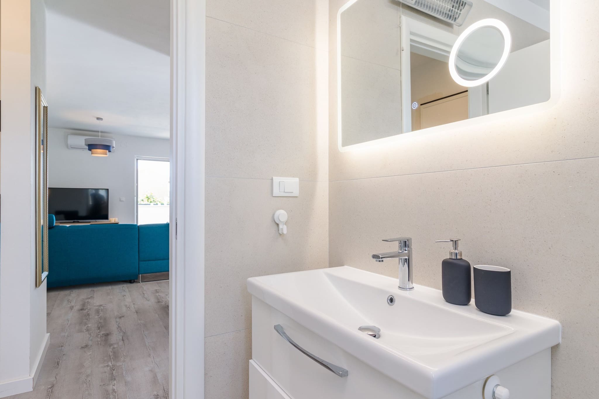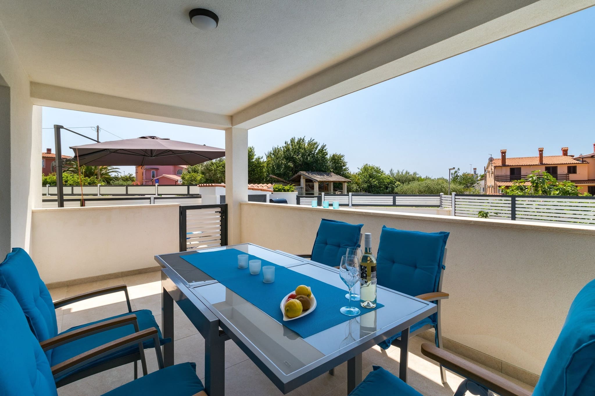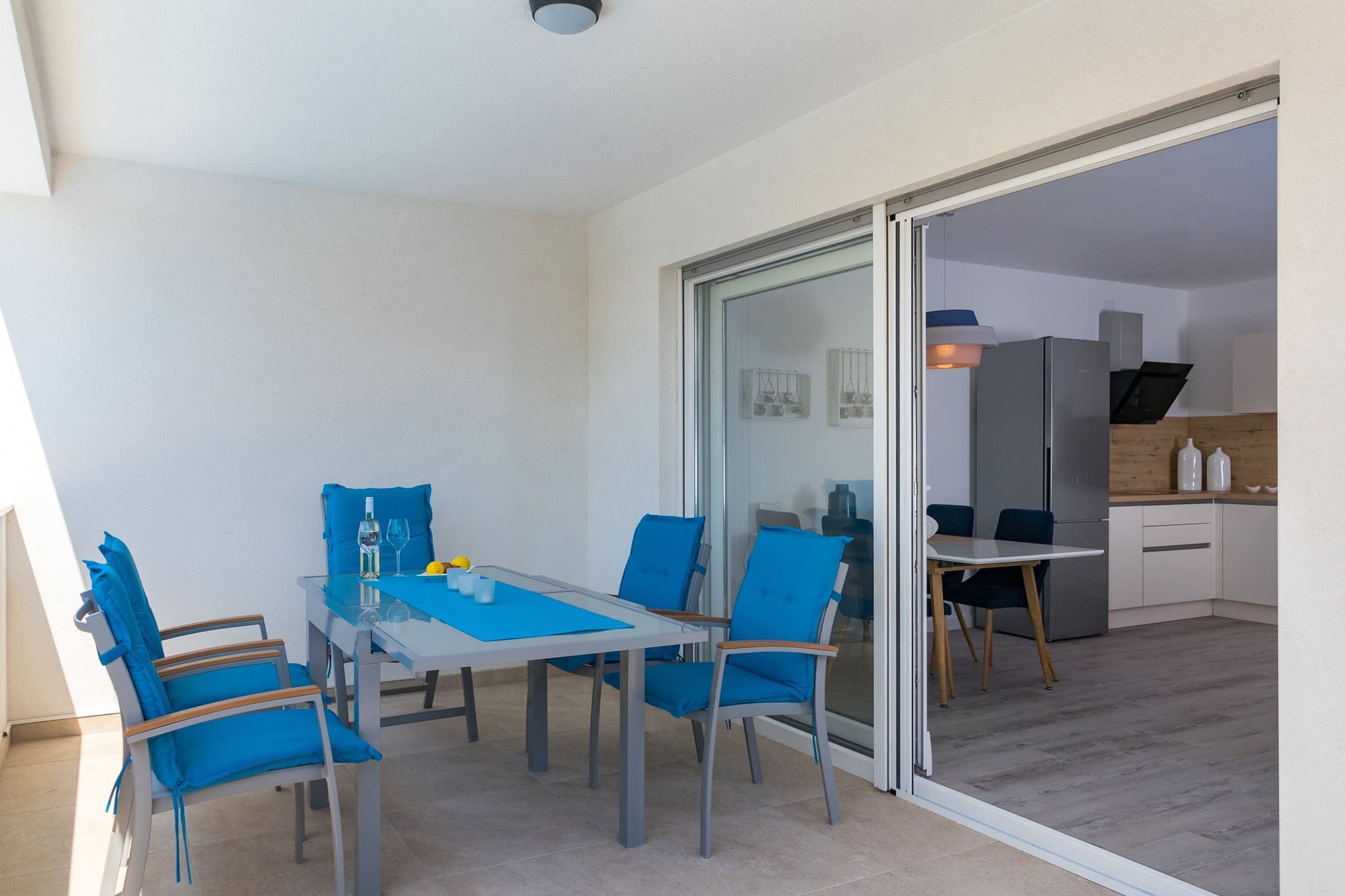 Guests can dine inside the apartment, but also on the terrace with sea view.