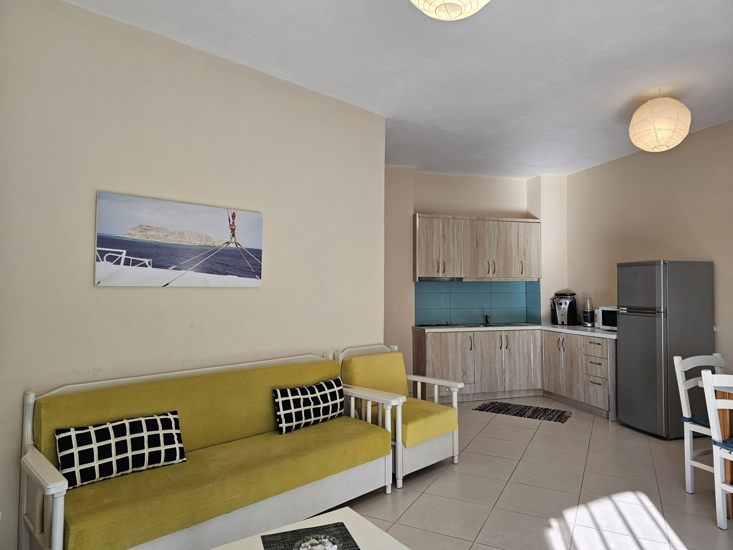 Step inside to find a comfortable and bright space. The apartment features an open, airy living room with modern furnishings. Cook delicious meals in the fully-equipped kitchen and enjoy them on the terrace, taking in breathtaking sea views and unforgettable sunsets. After a day full of sun and adventure, retreat to the cozy bedrooms for a peaceful night’s sleep.