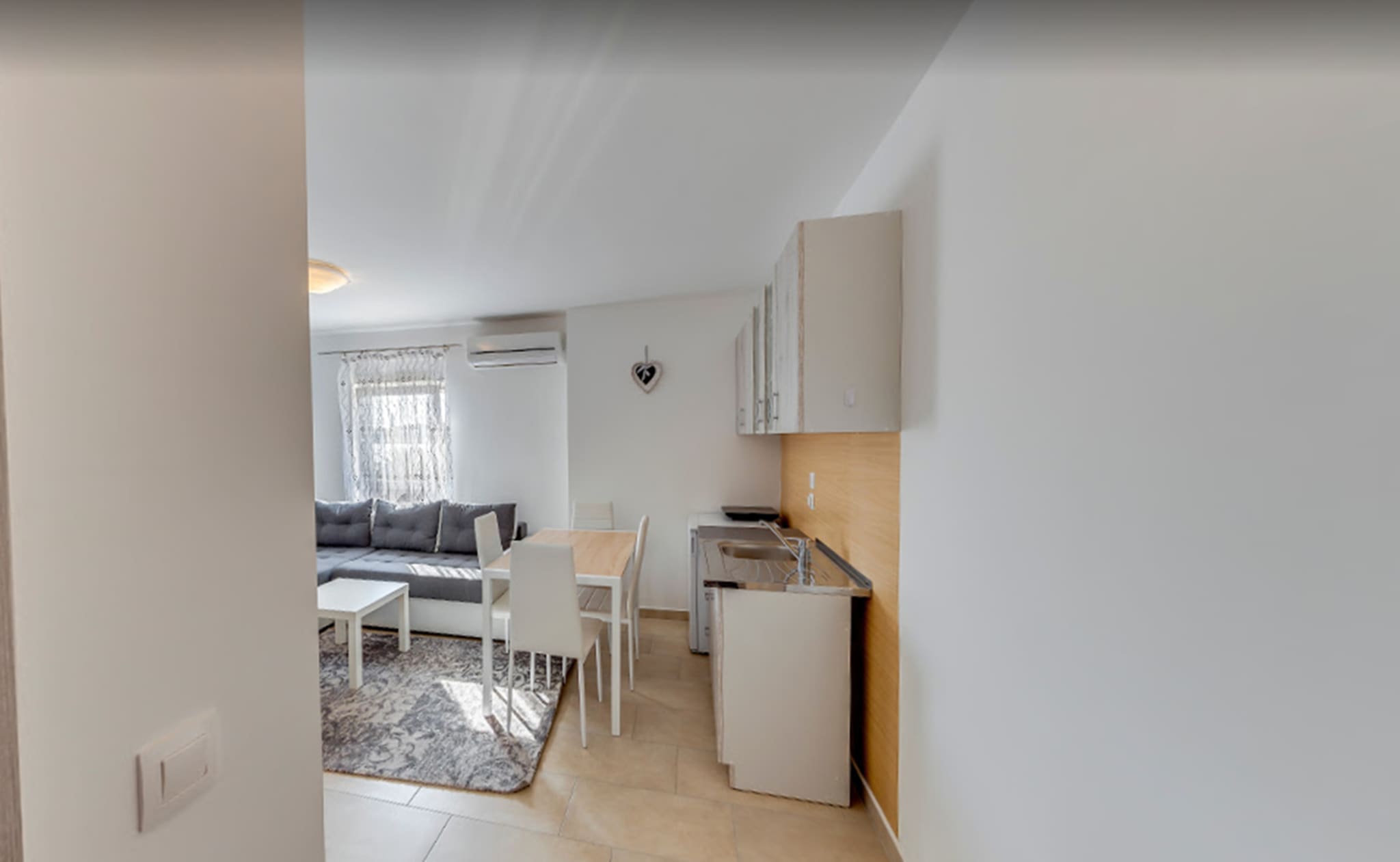 It is most suitable for 2 people, which can sleep in the bedroom, but 2 more people can stay here and sleep on the convertible sofa in the living room (it is most suitable for children).