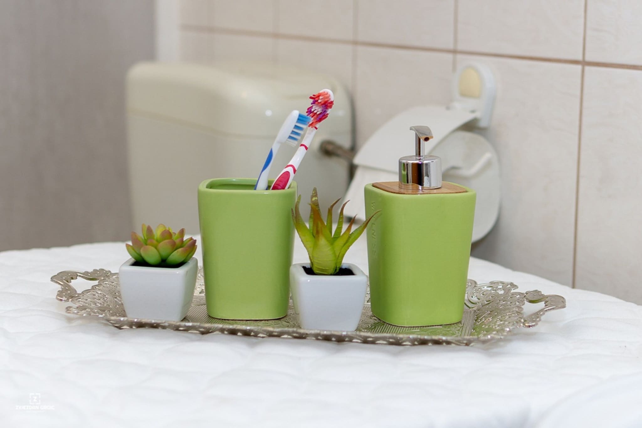 Bedding and bathroom