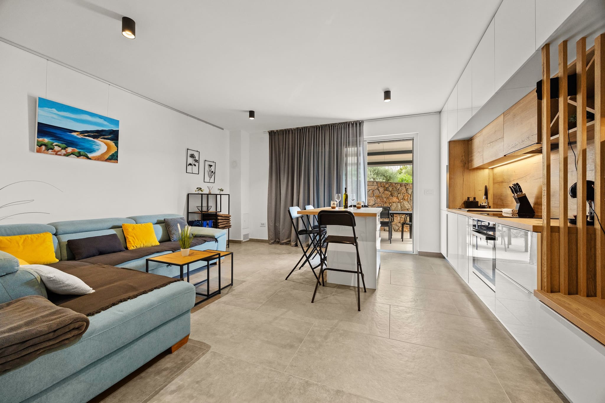 Located on Cres island, only 300 m away from the beach, this apartment offers you a private jacuzzi and lounge area on a wonderful terrace.