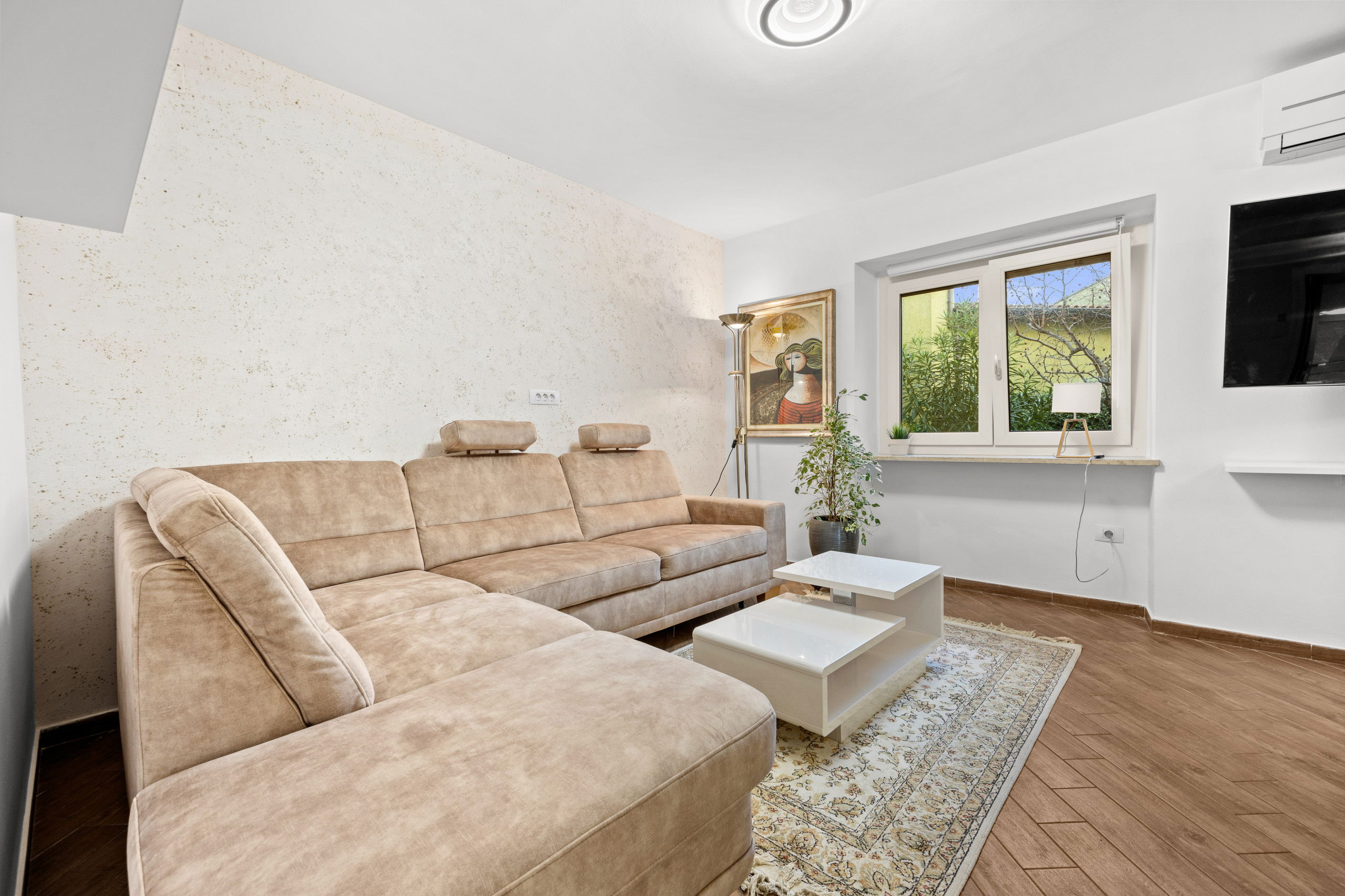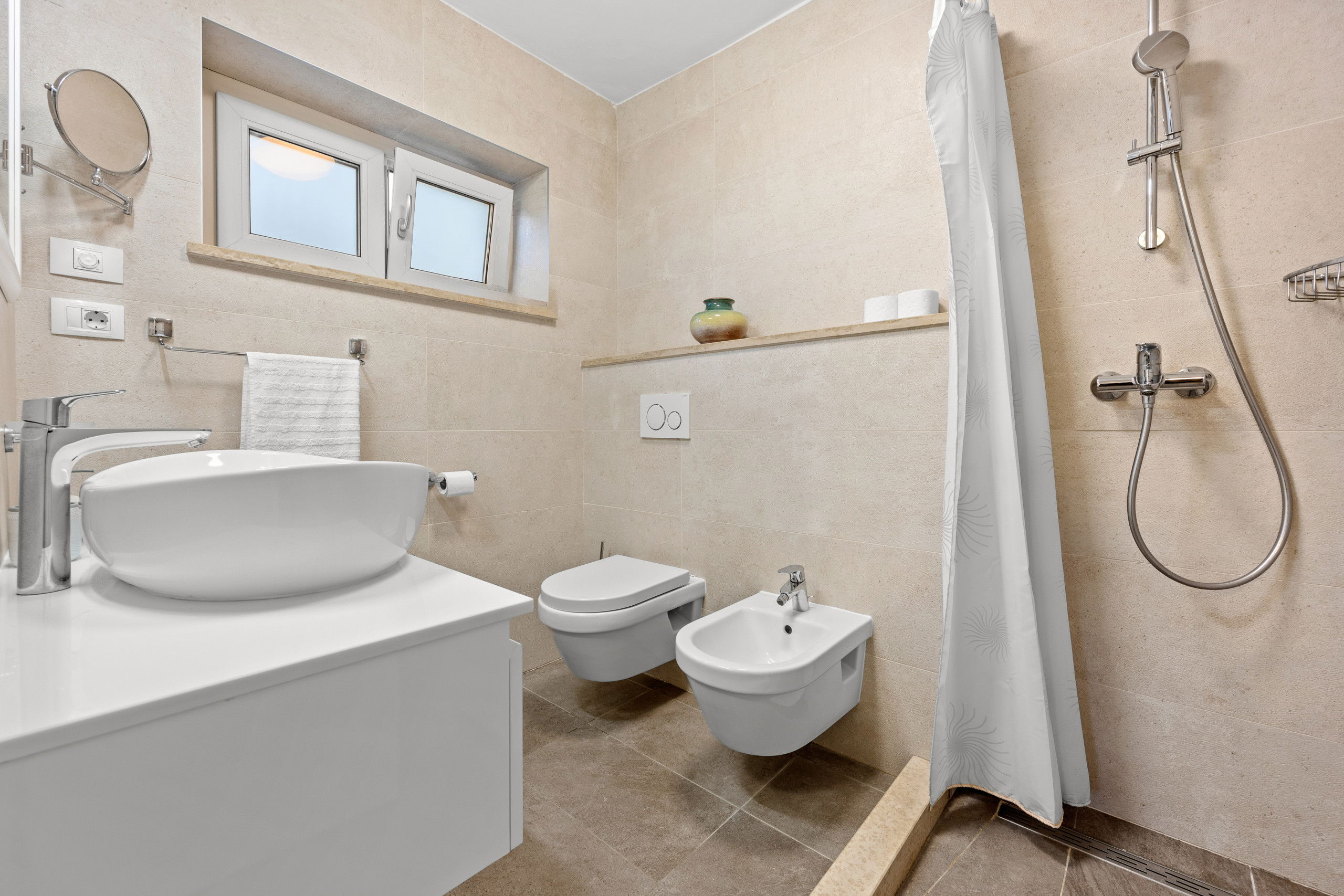 This accommodation is most suitable for families. It's a two-bedroom apartment with 2 bathrooms with shower, fully equipped kitchen, tastefully decorated living room and a spacious terrace (13 m2) where guests can enjoy in fresh air. Living room and both bedrooms have a TV.