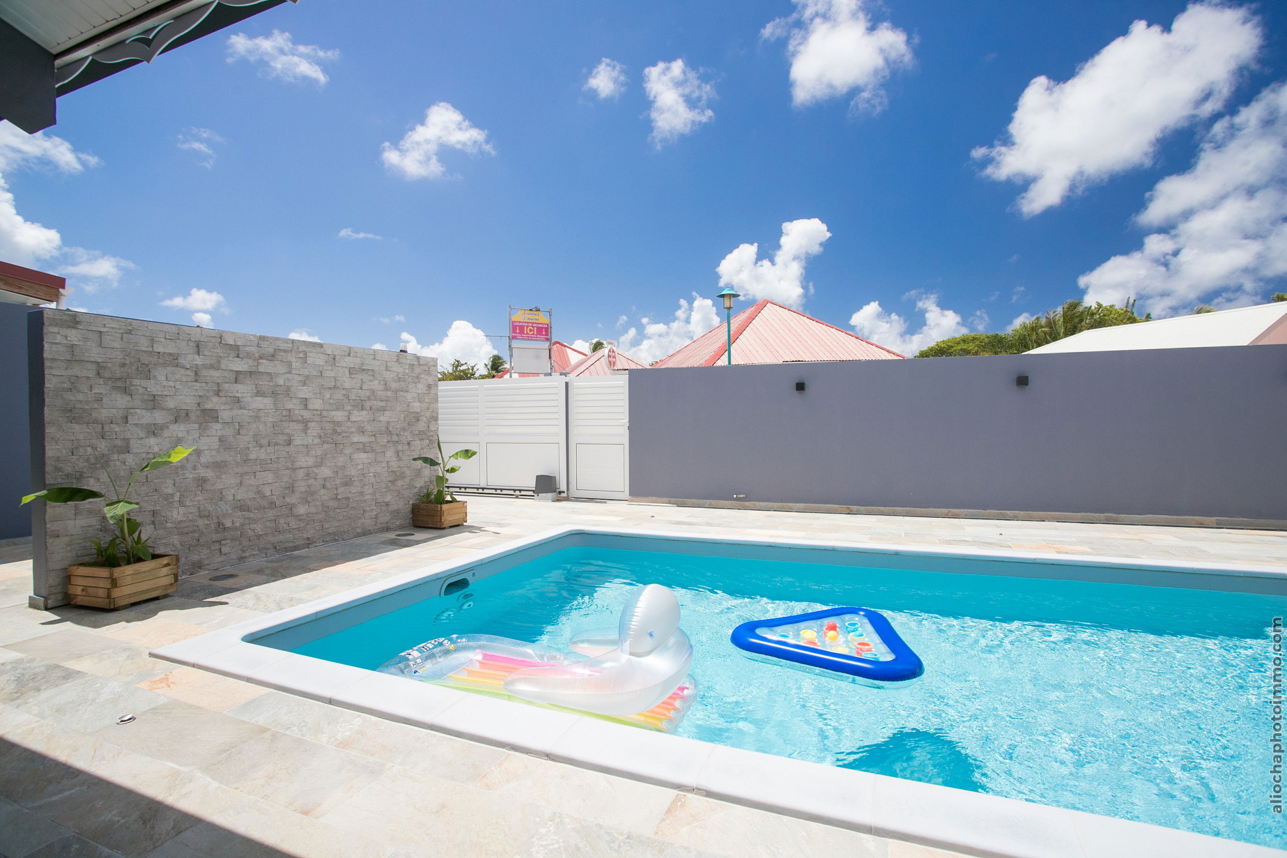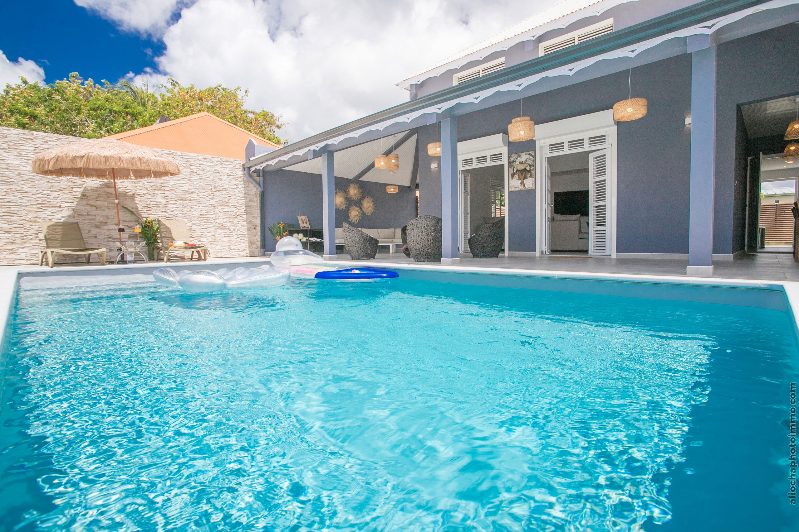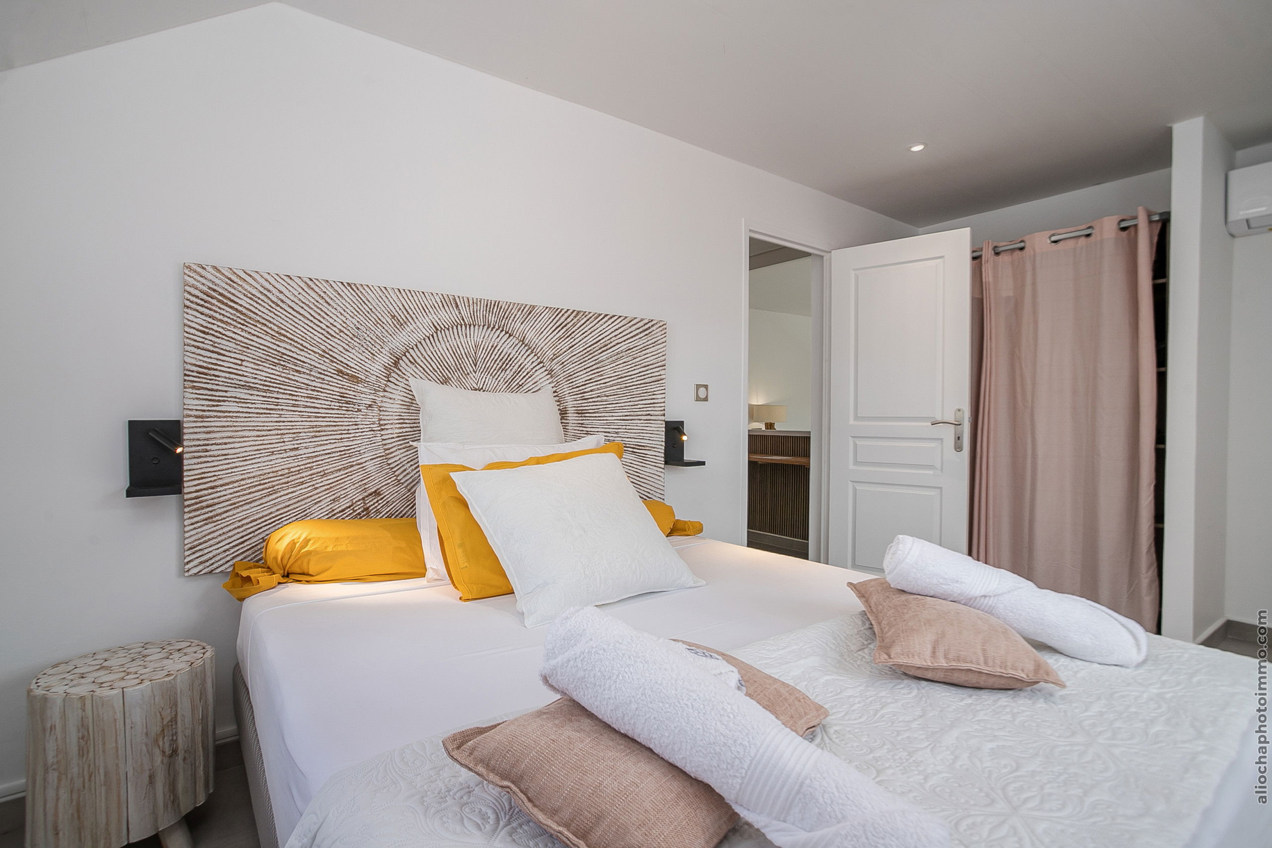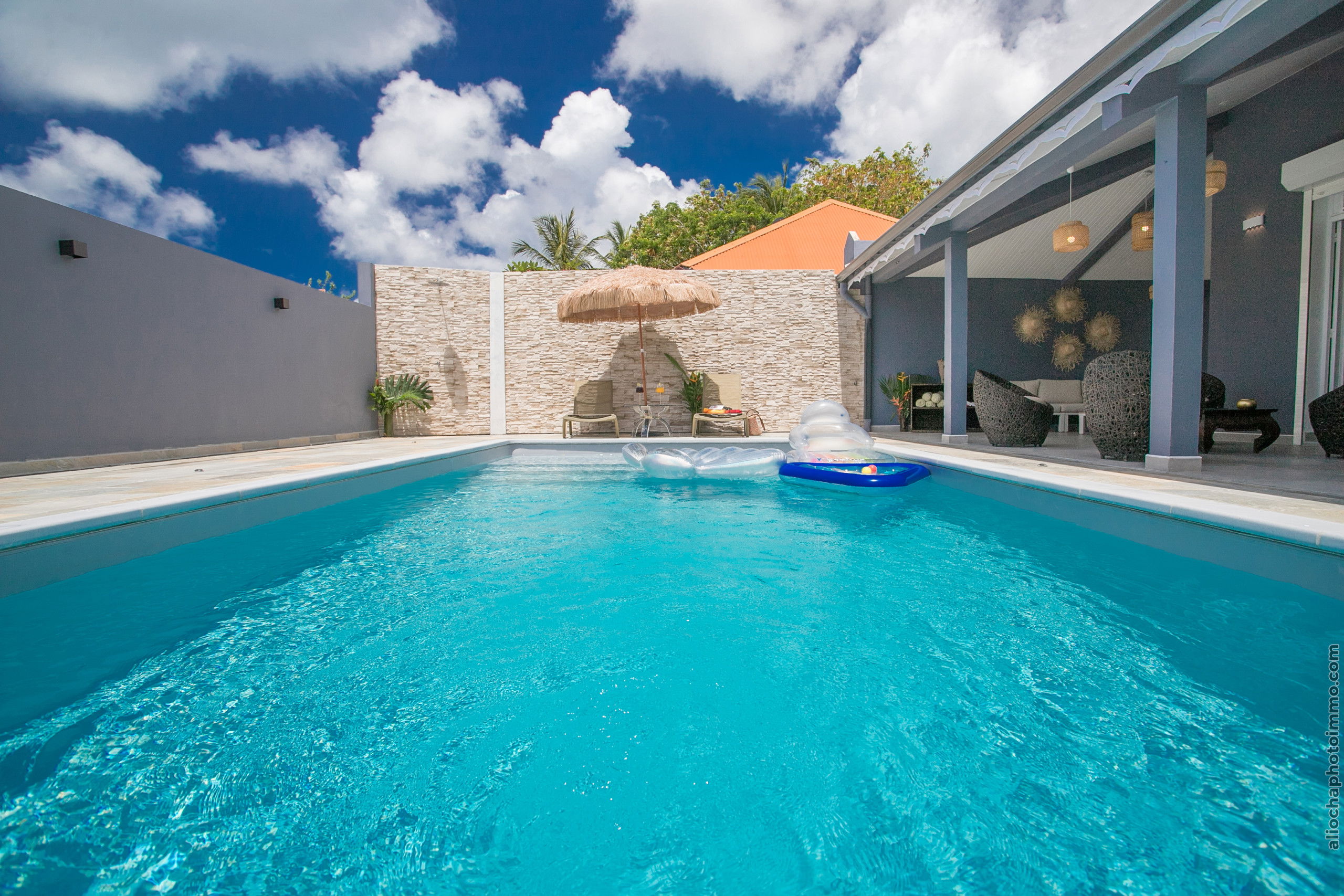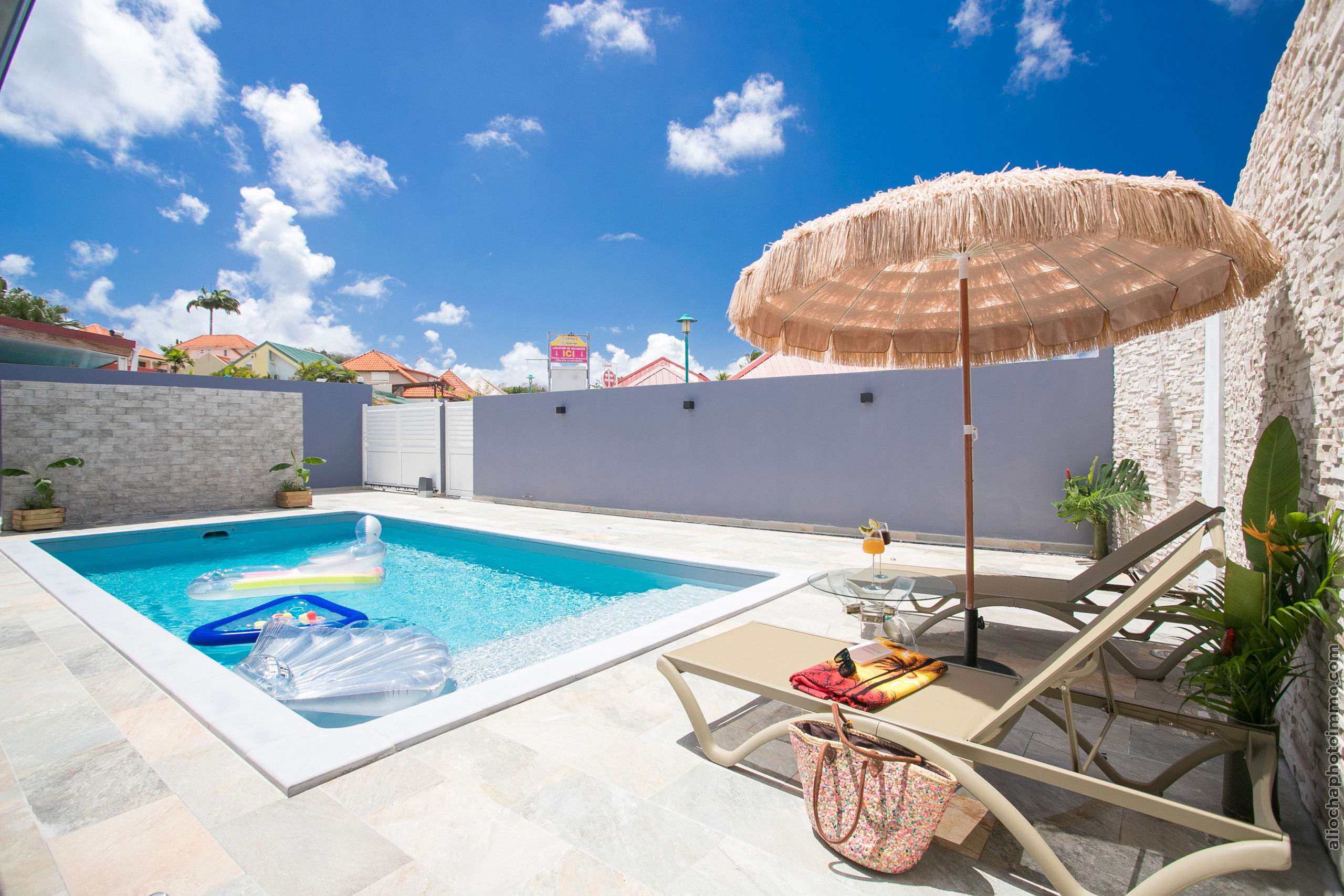 The private swimming pool invites you to moments of relaxation and freshness, while the immediate proximity of the Pointe Marin beach allows you to enjoy the turquoise sea and white sand on foot.