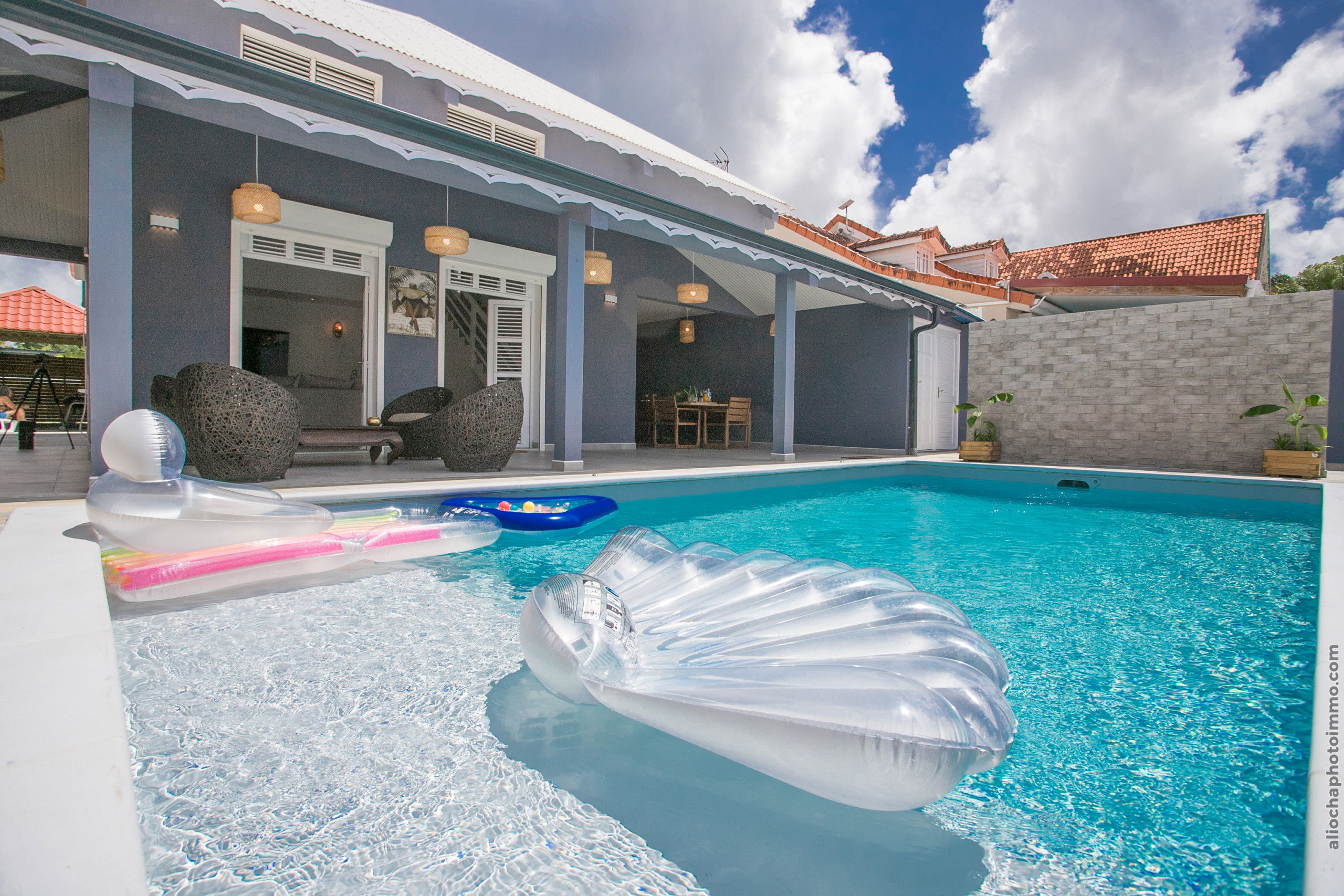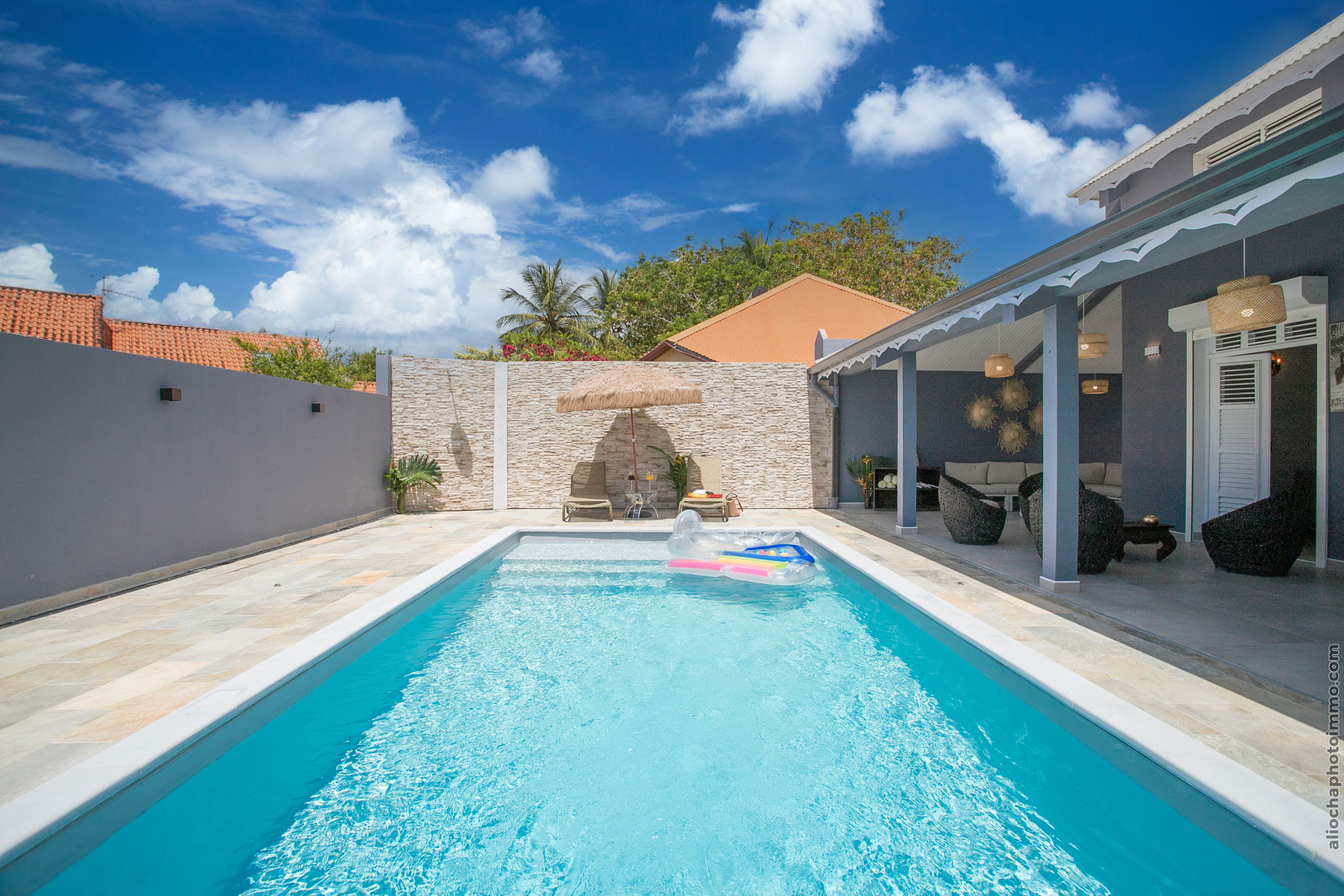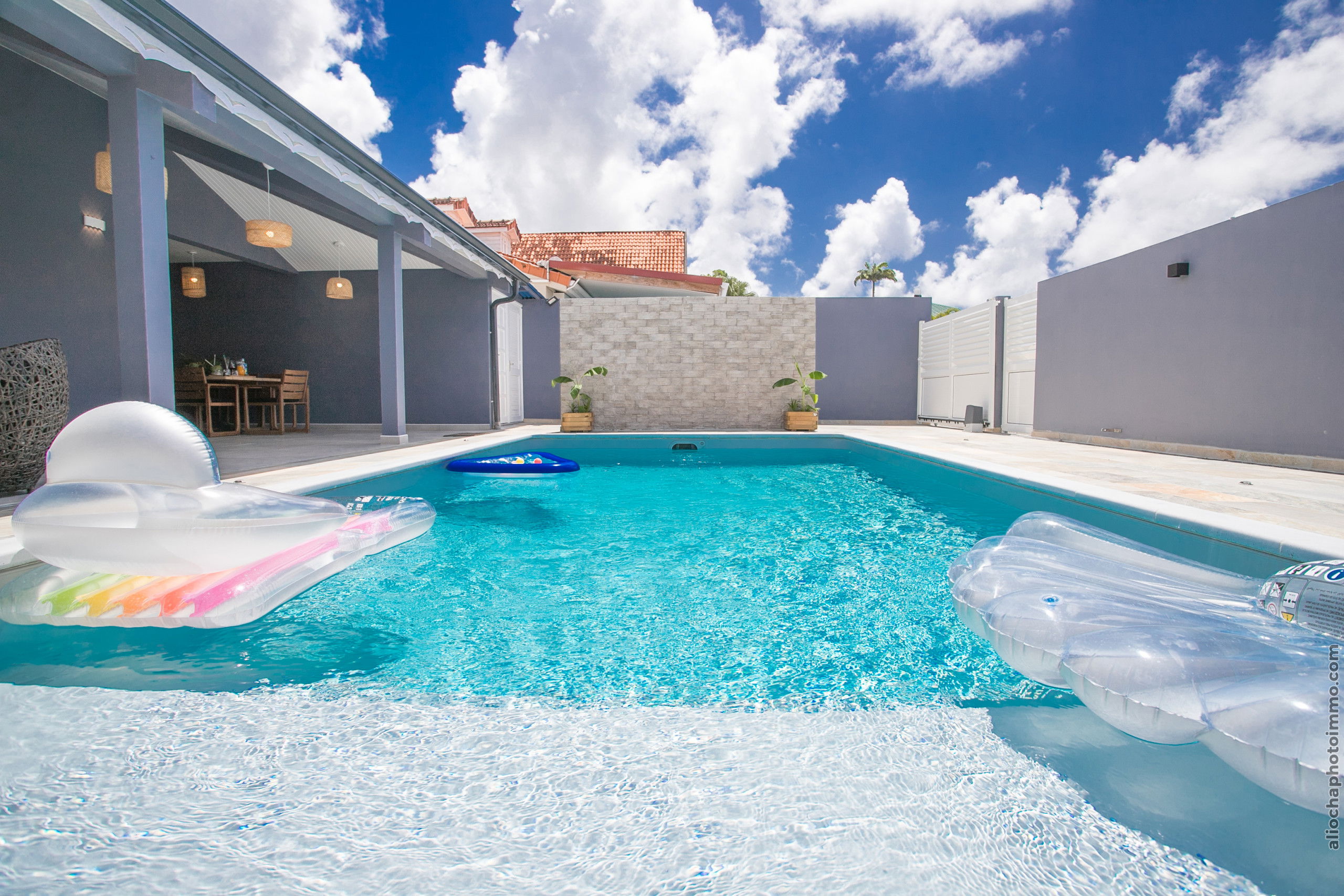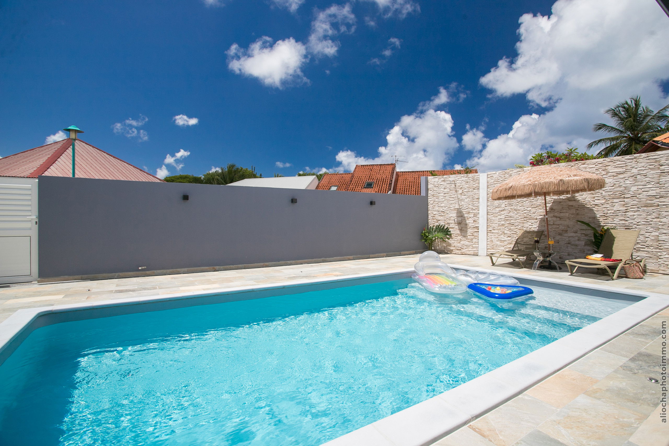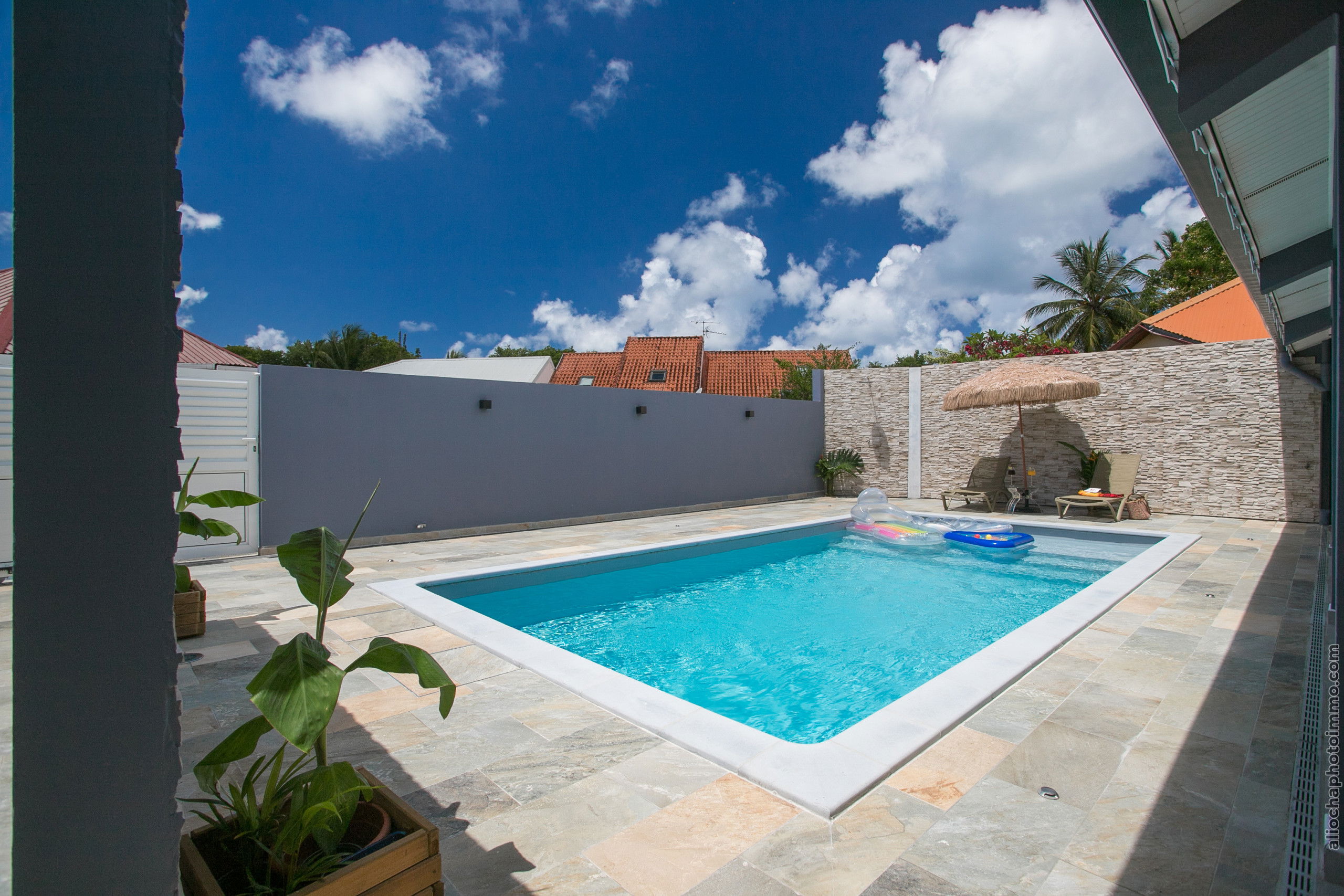 The private swimming pool invites you to moments of relaxation and freshness, while the immediate proximity of the Pointe Marin beach allows you to enjoy the turquoise sea and white sand on foot.