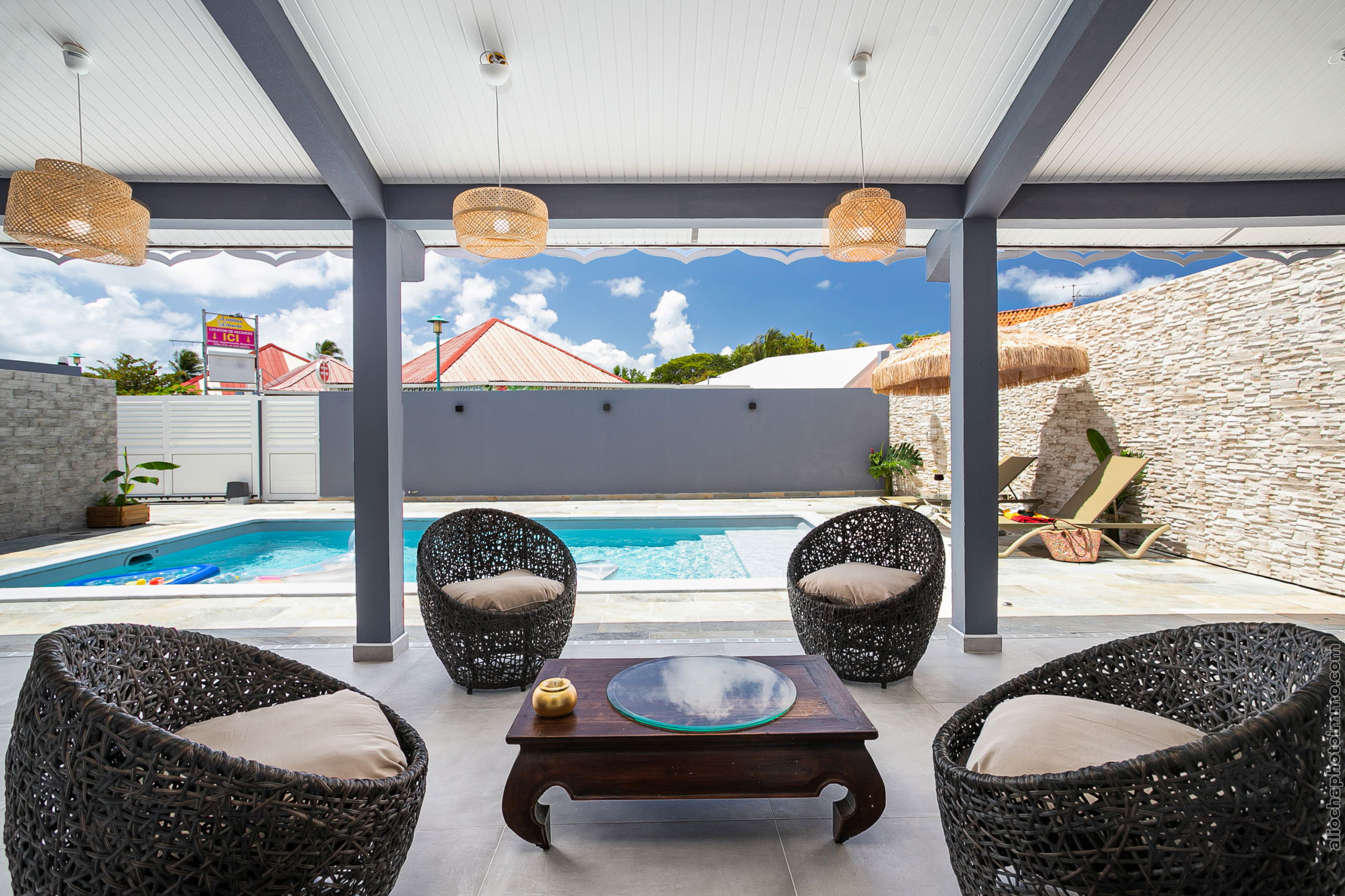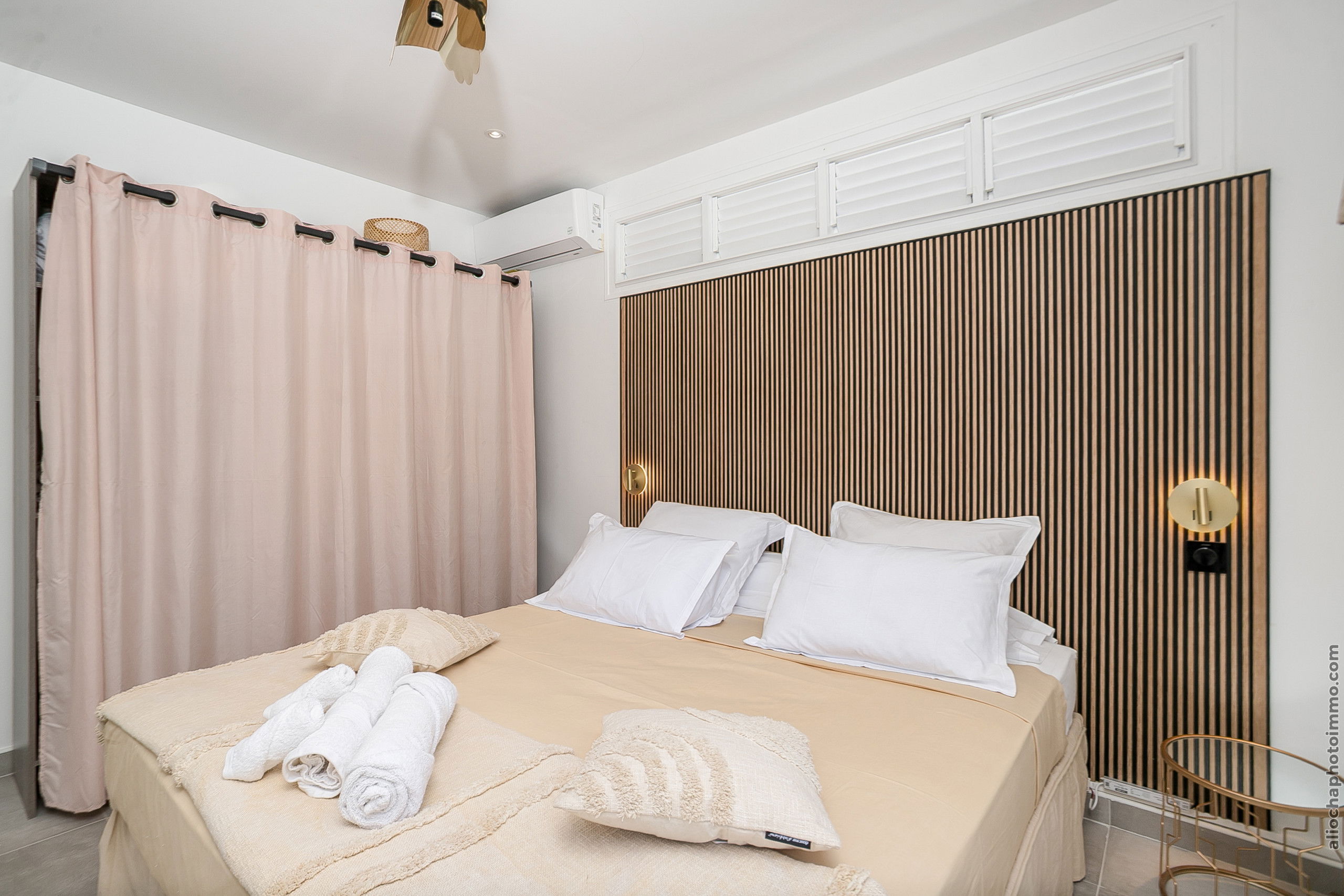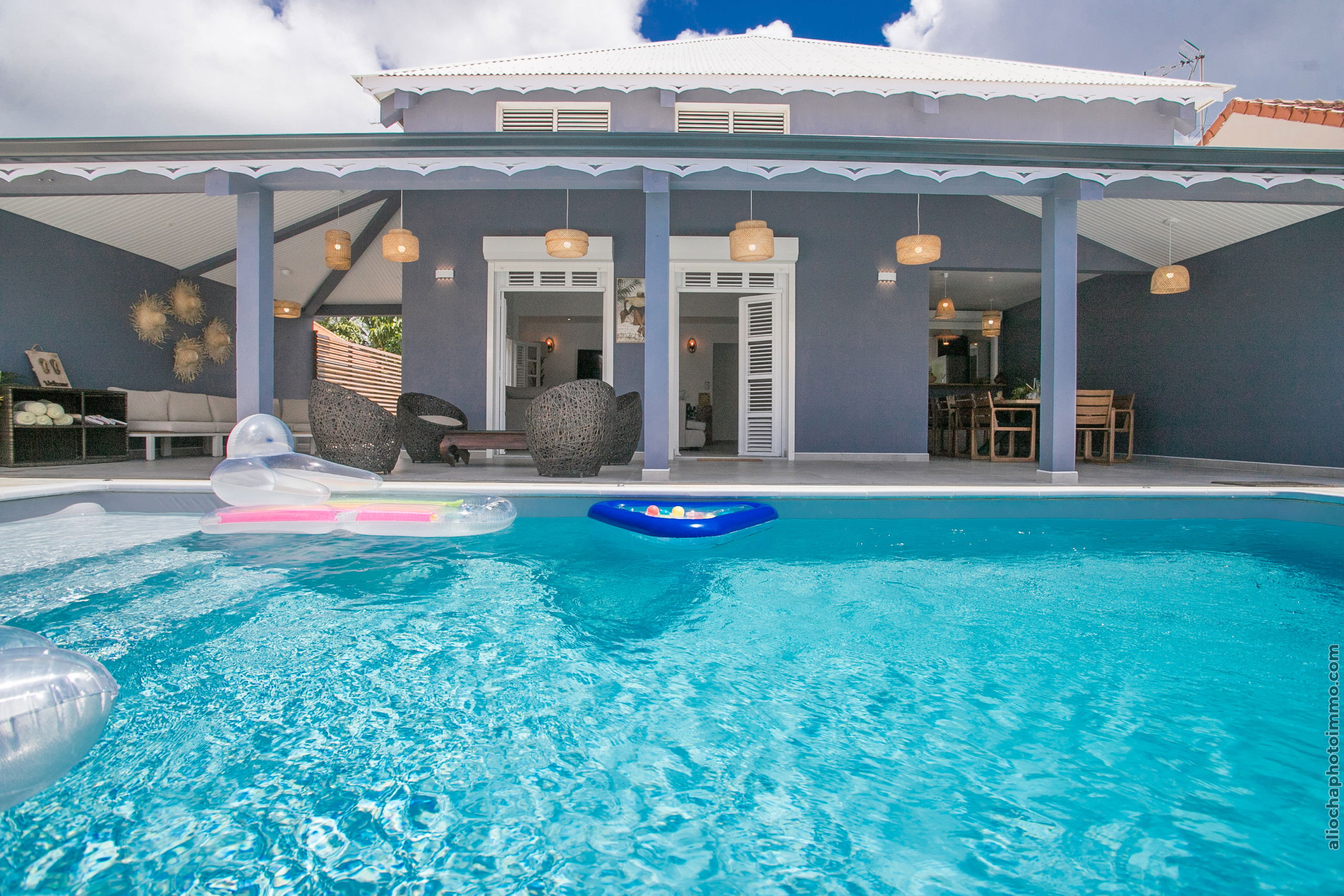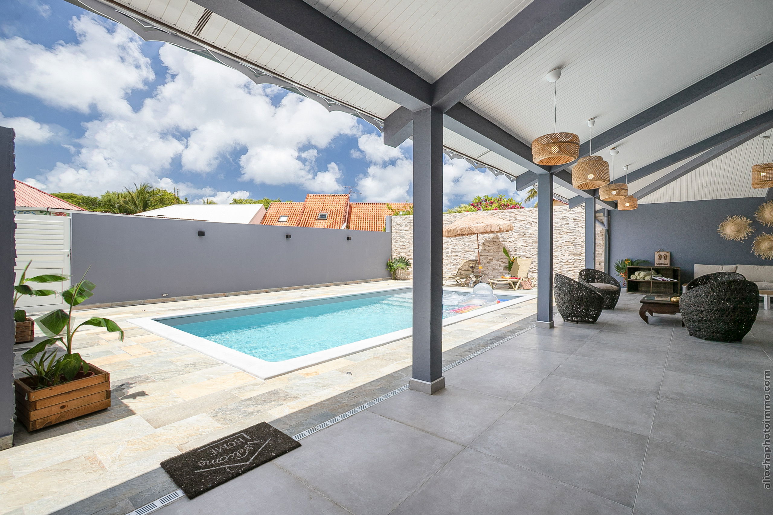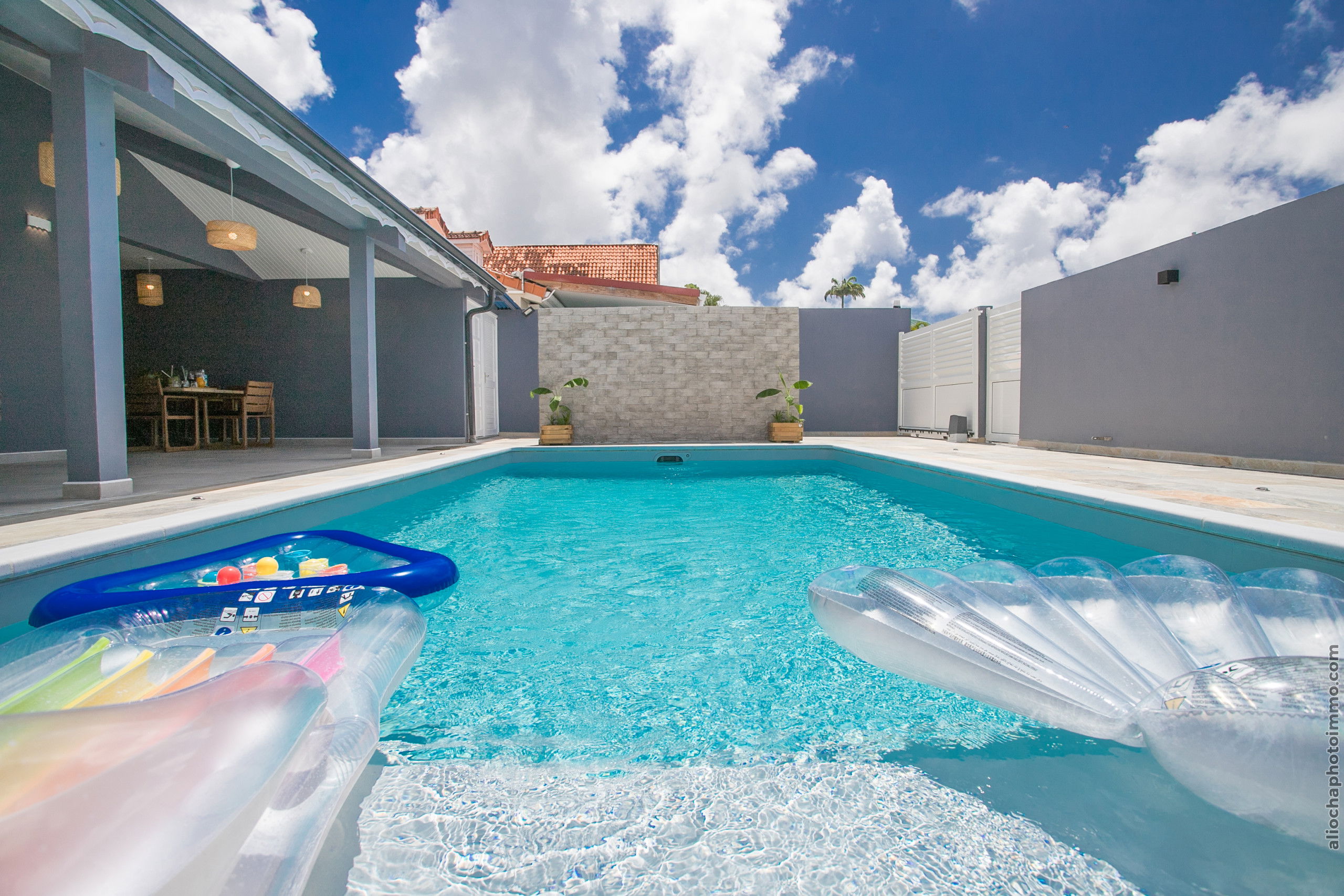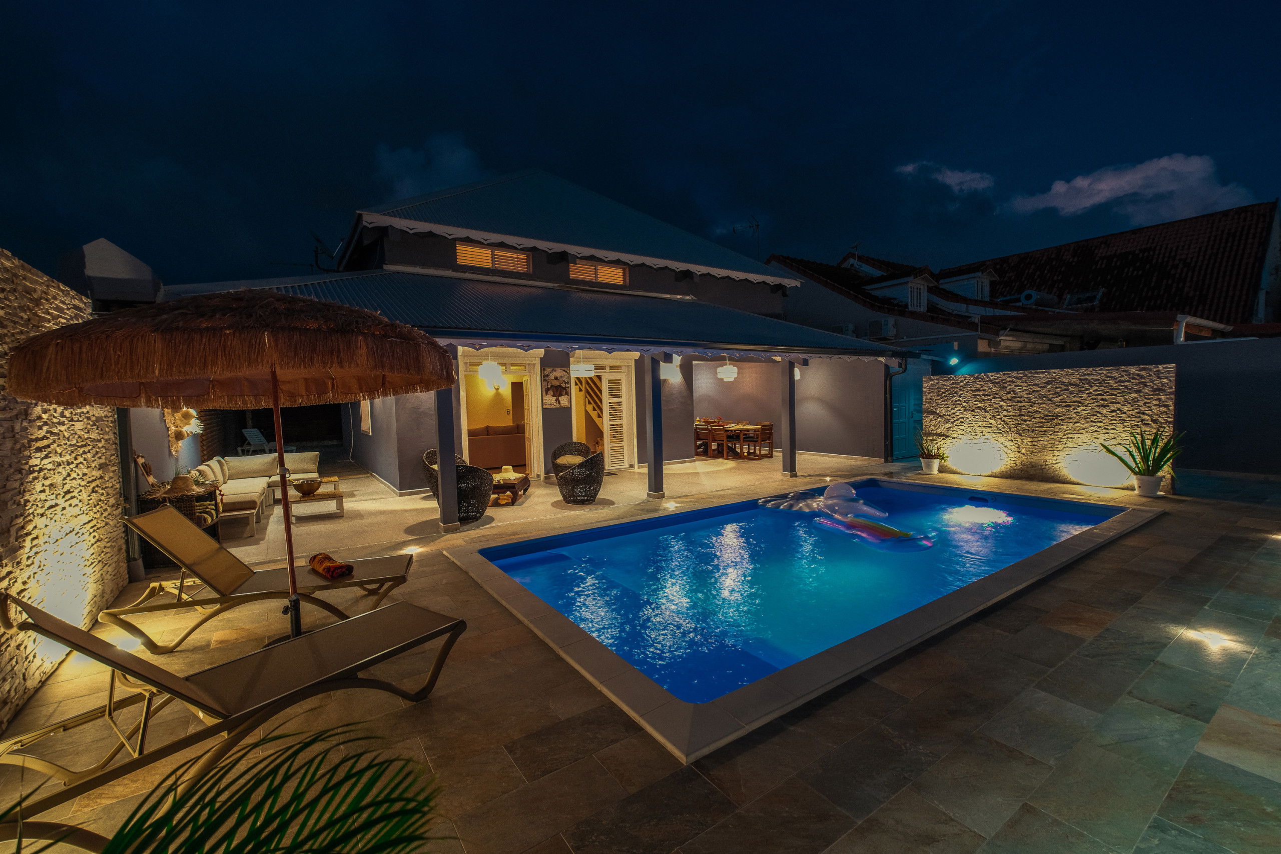 The private swimming pool invites you to moments of relaxation and freshness, while the immediate proximity of the Pointe Marin beach allows you to enjoy the turquoise sea and white sand on foot.