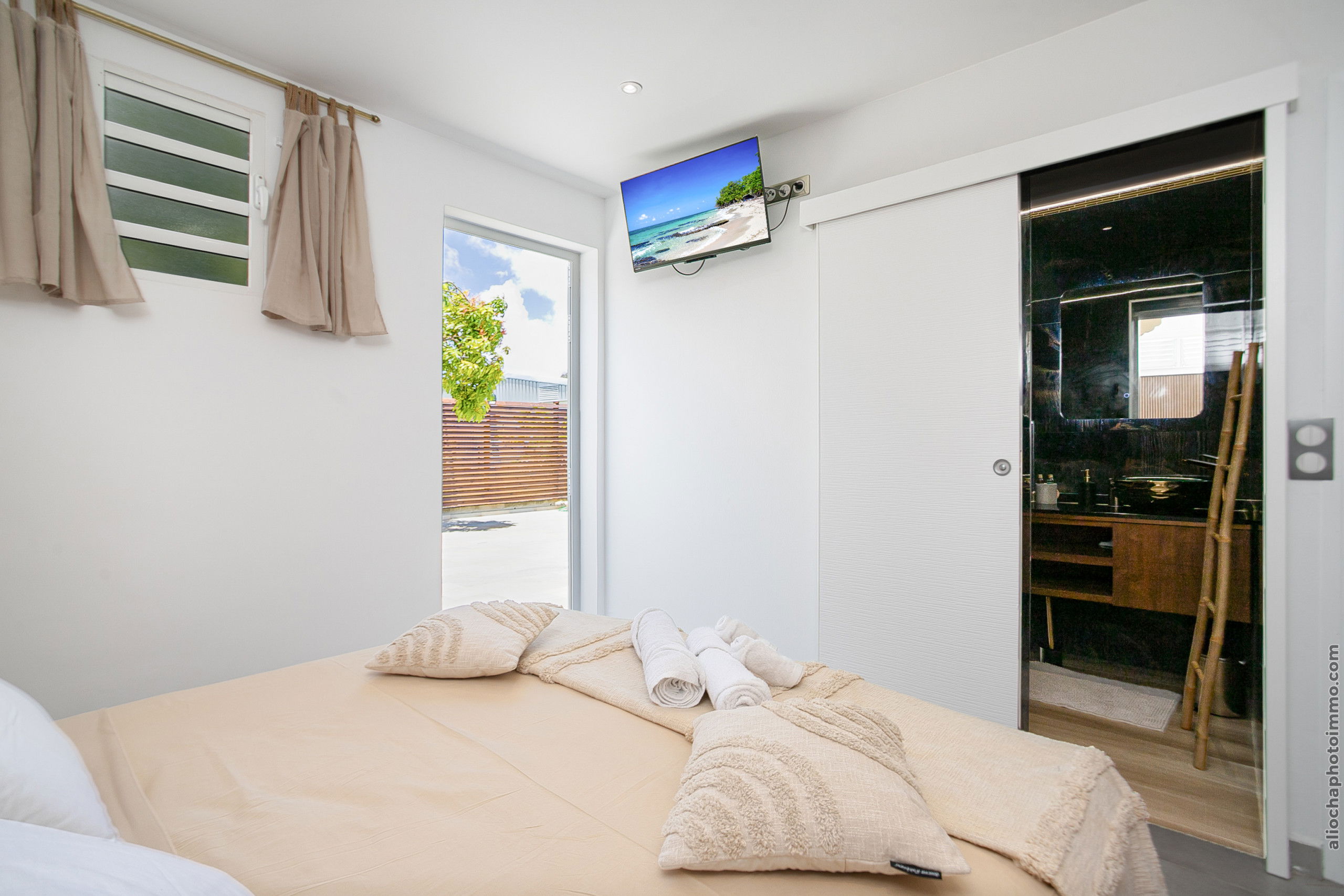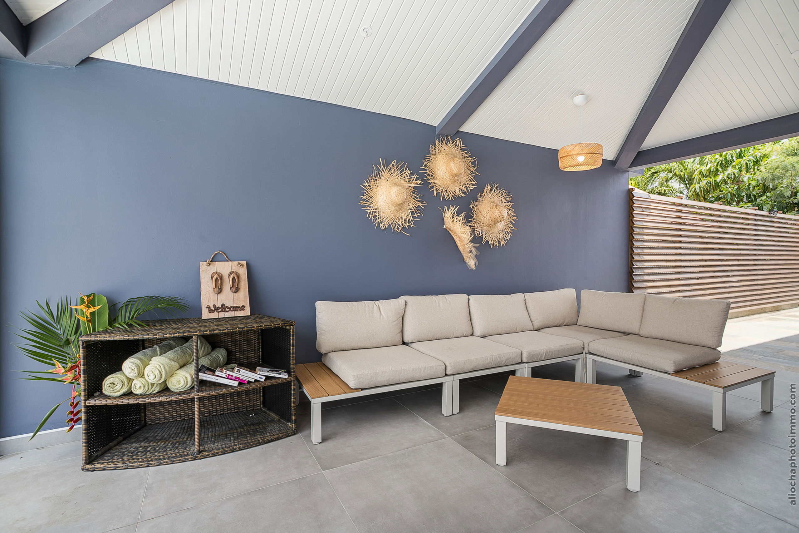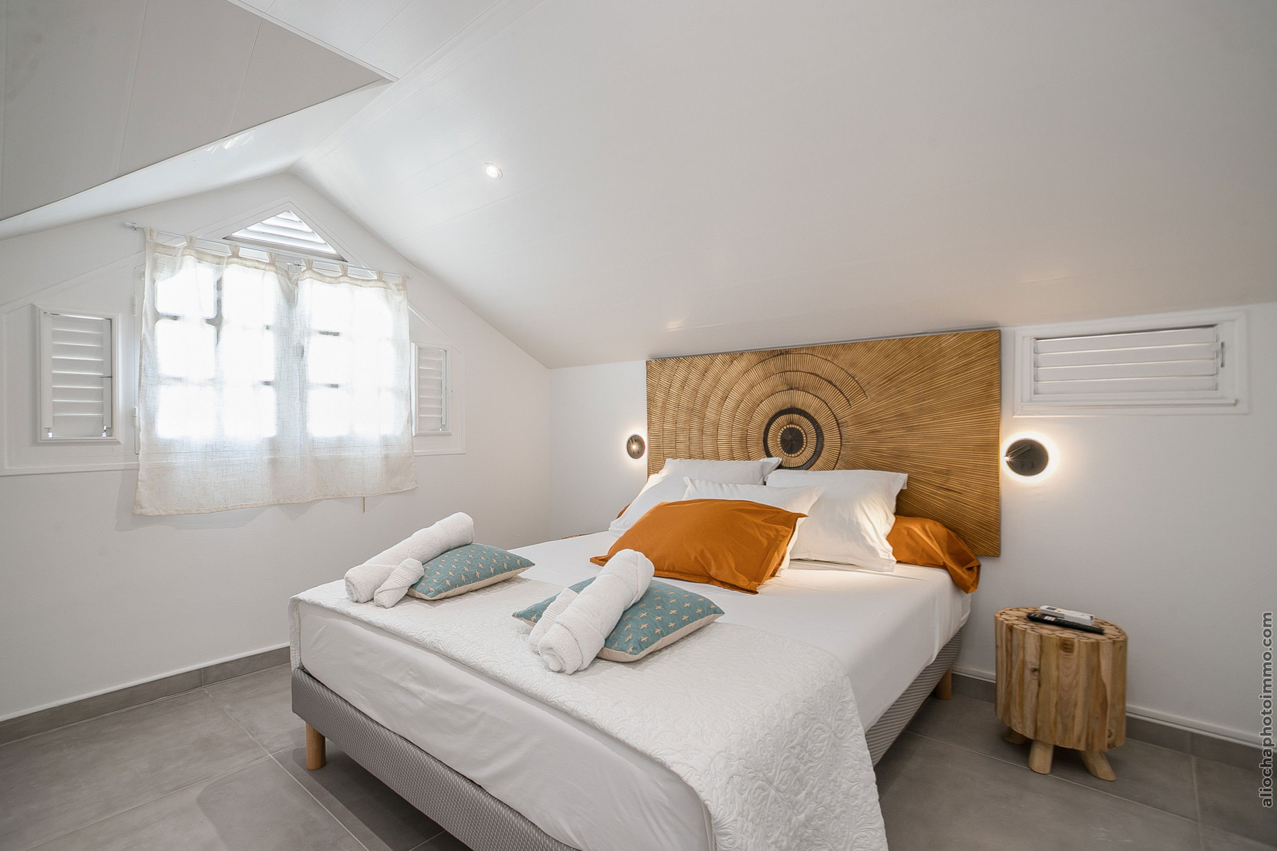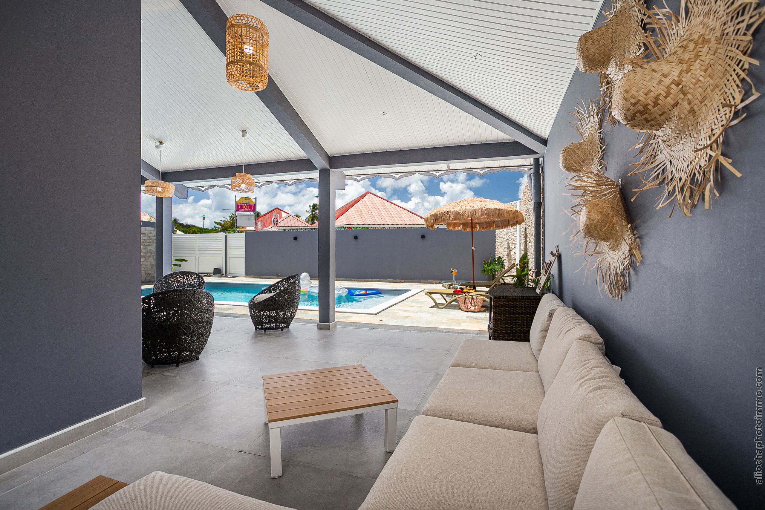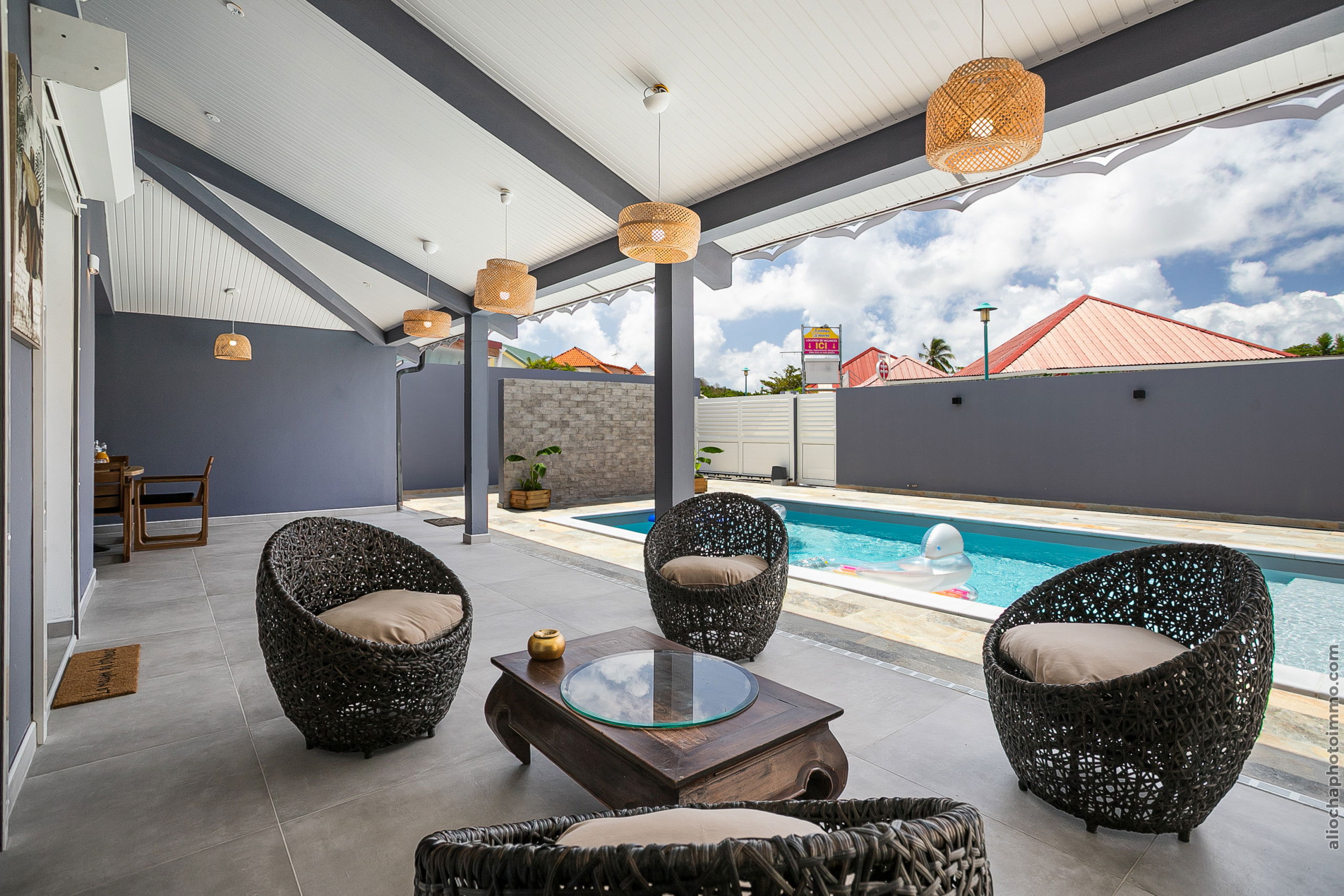 The private swimming pool invites you to moments of relaxation and freshness, while the immediate proximity of the Pointe Marin beach allows you to enjoy the turquoise sea and white sand on foot.