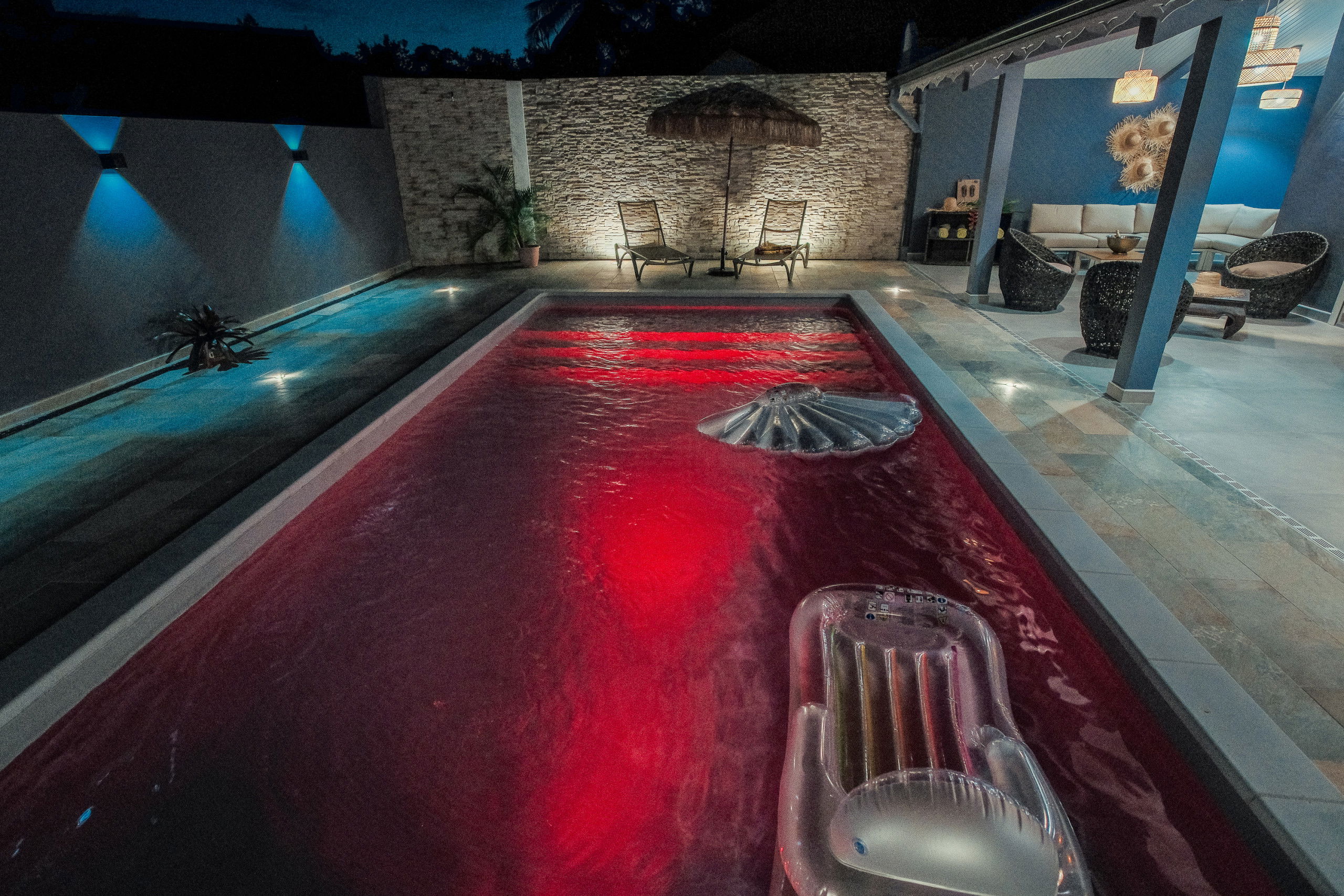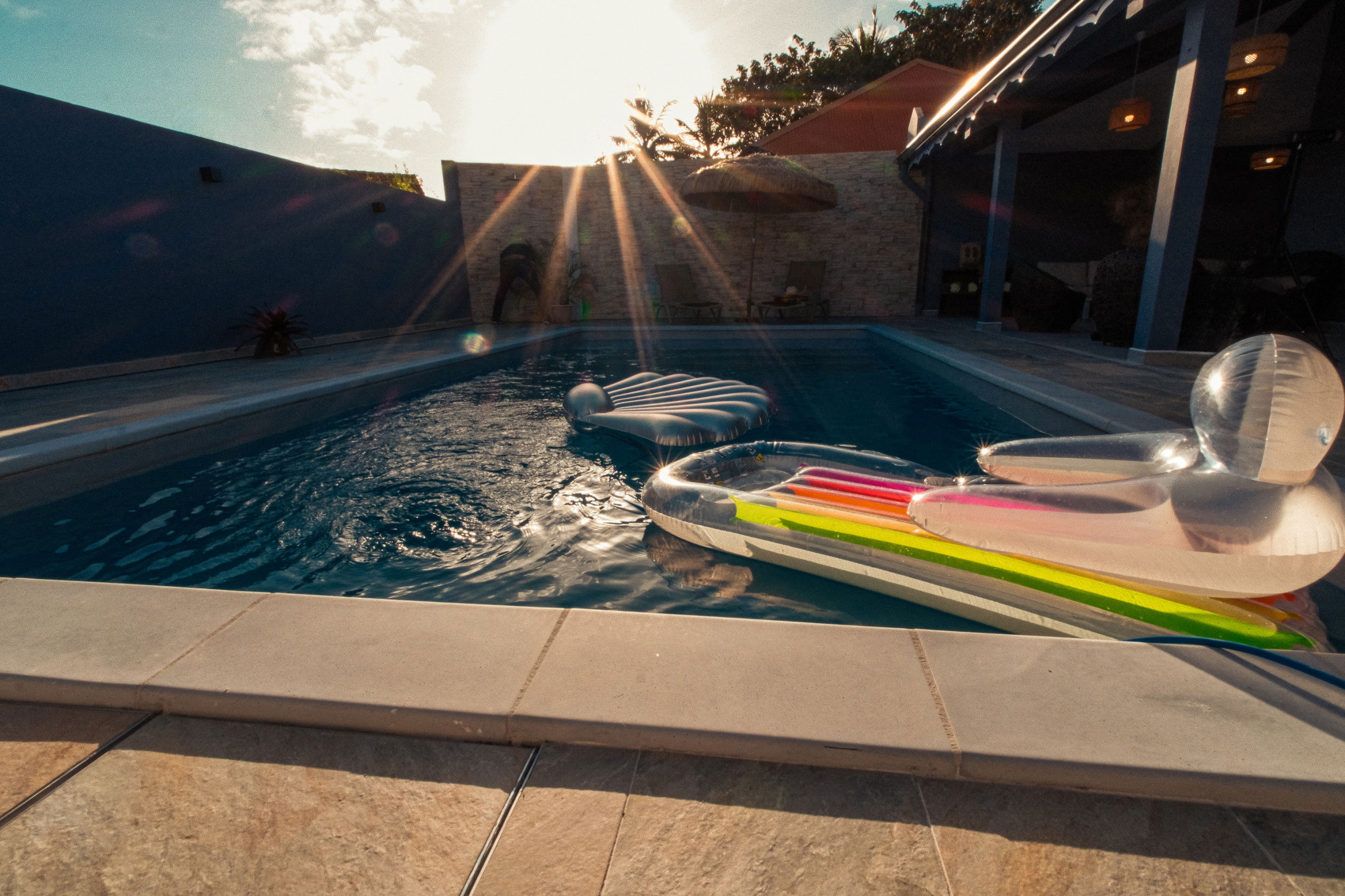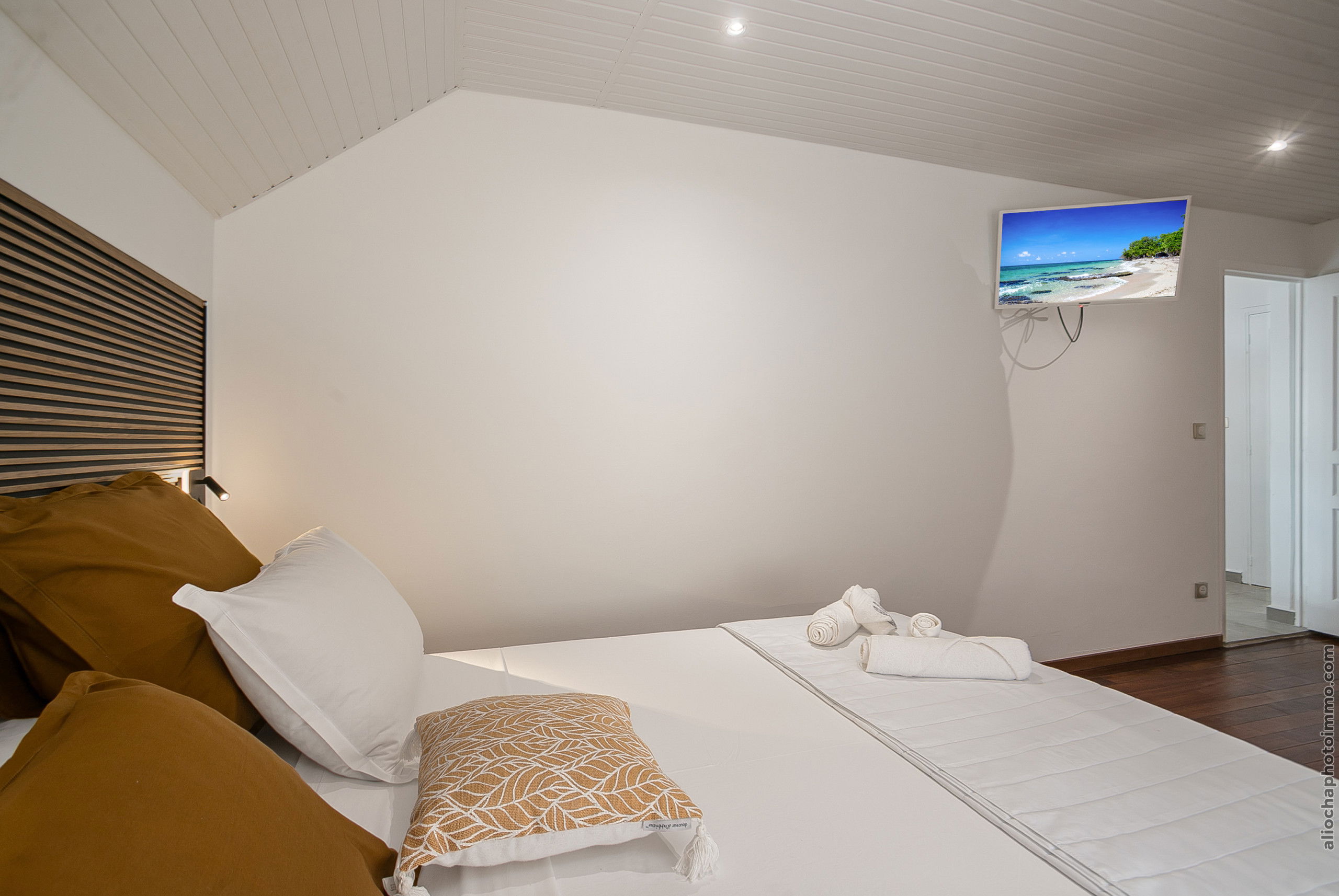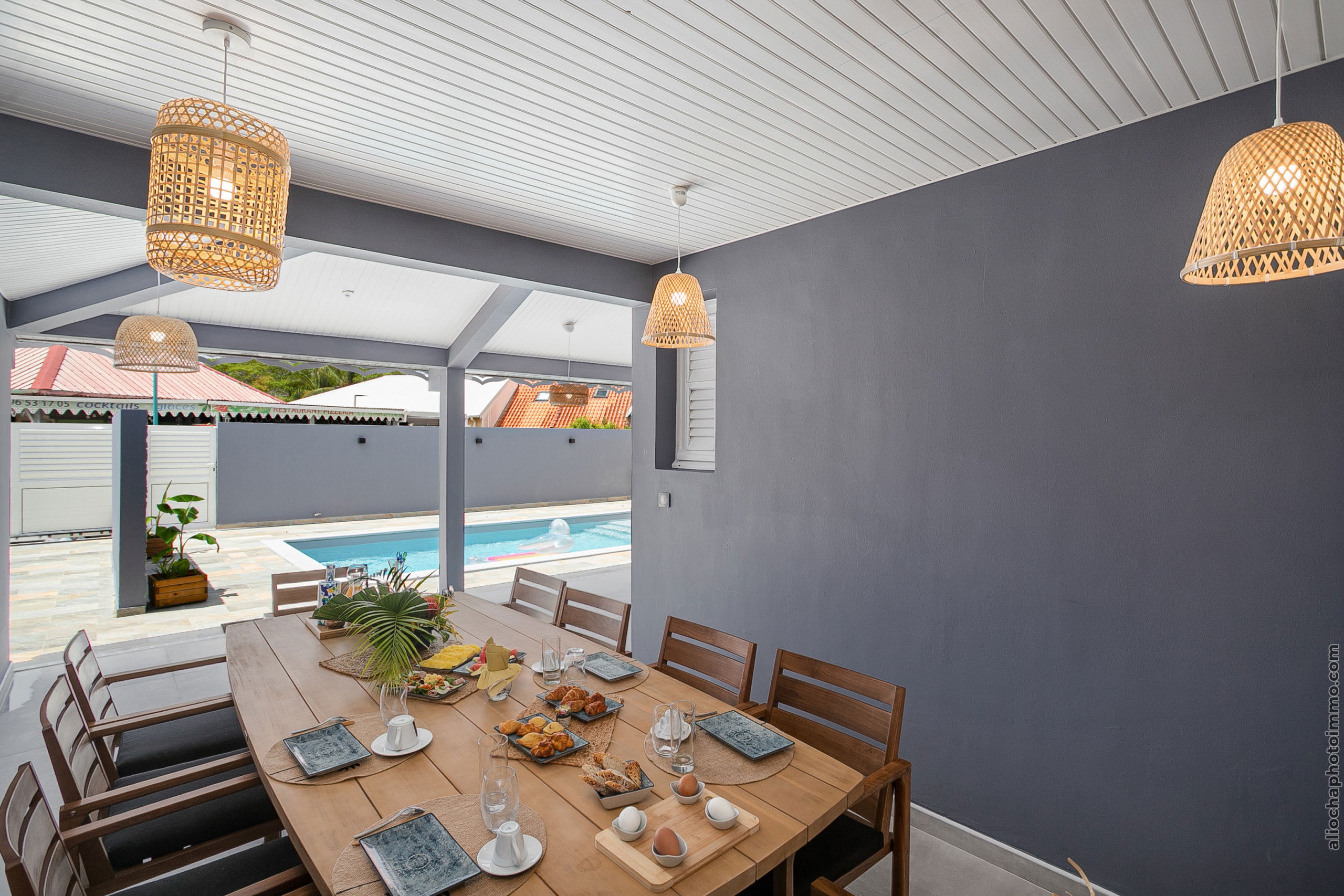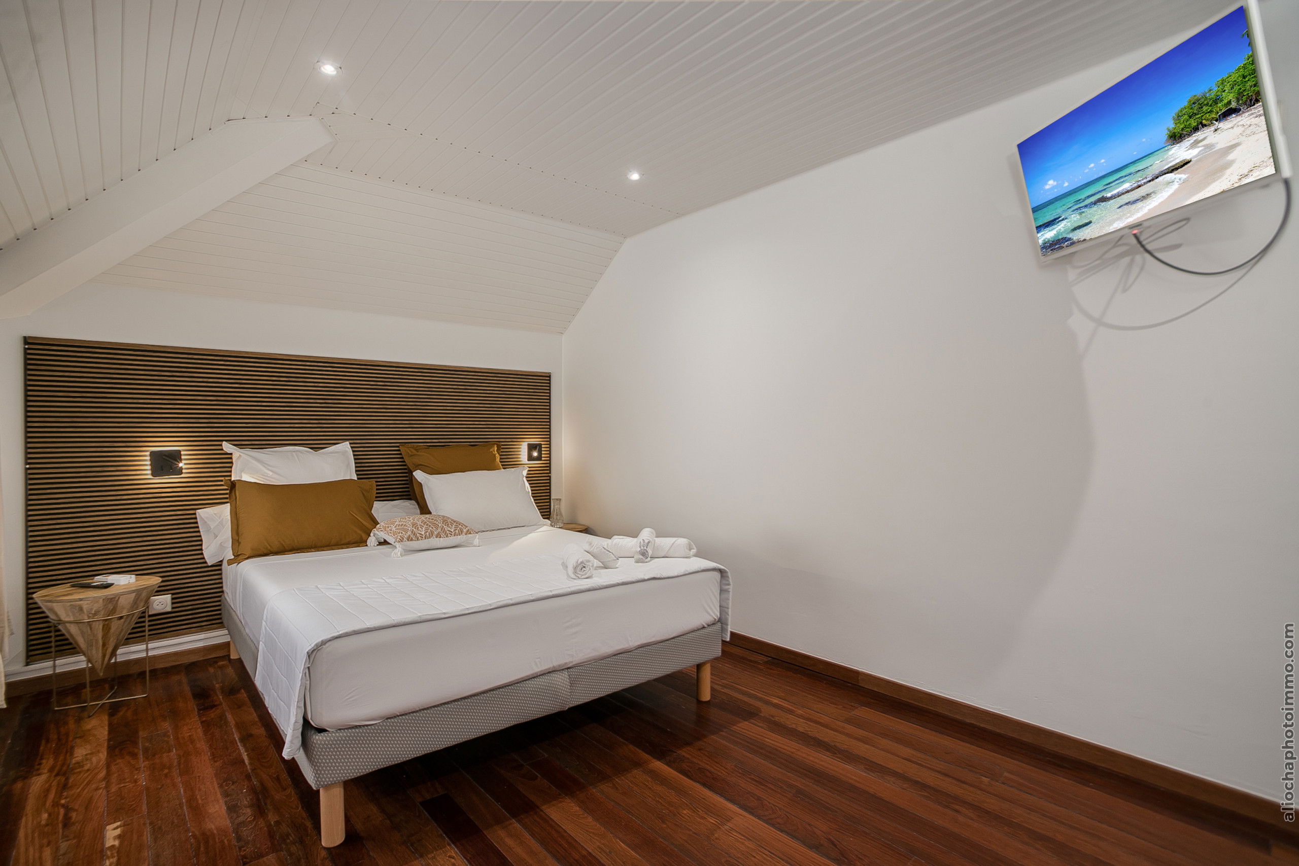 The private swimming pool invites you to moments of relaxation and freshness, while the immediate proximity of the Pointe Marin beach allows you to enjoy the turquoise sea and white sand on foot.