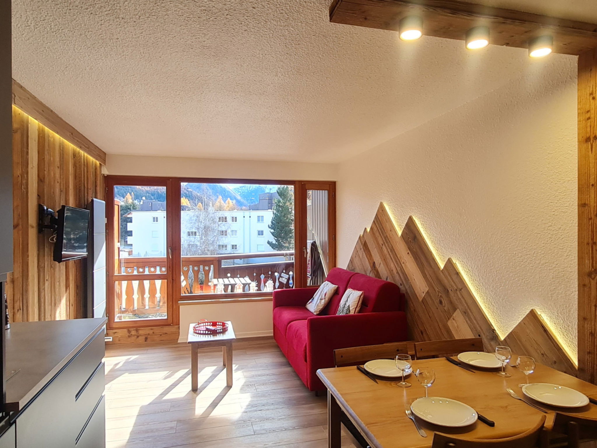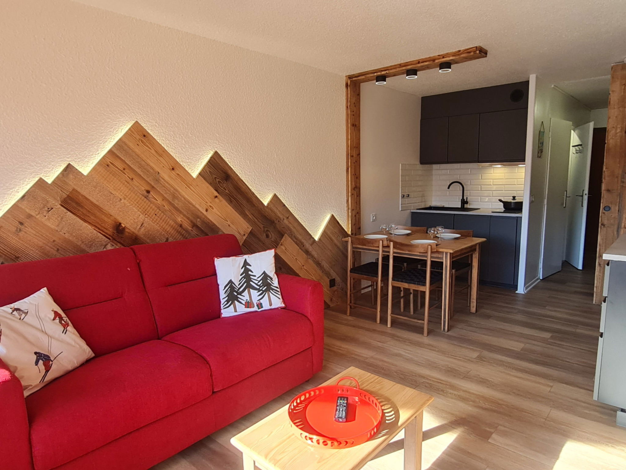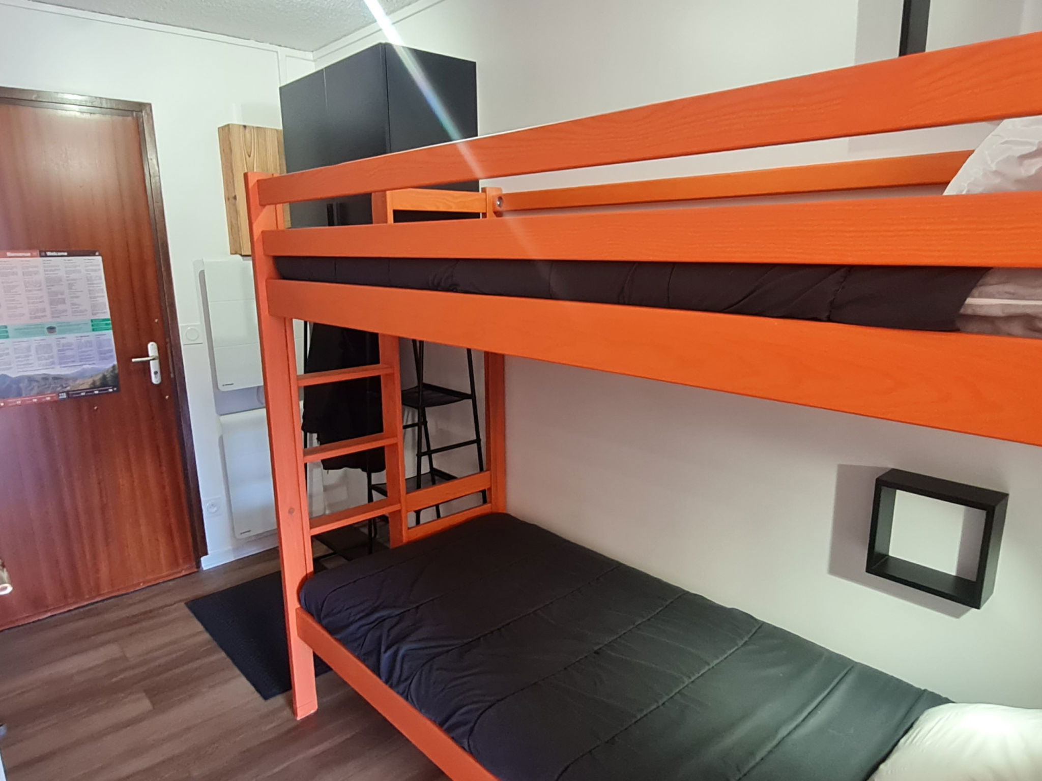 "Plein Sud C", 1-room studio 27 m2 on 1st floor. Object suitable for 4 adults. Living room with 1 sofabed and 1 x 2 bunk beds, 1 pull-out bed. Open kitchen (2 hot plates, dishwasher, microwave, electric coffee machine). Bath/WC. Balcony. View of the mountains. Please note: non-smokers only. Smoke alarm. Offer by a commercial proprietor according to Art. 155, IV, CGI 38253002991MX