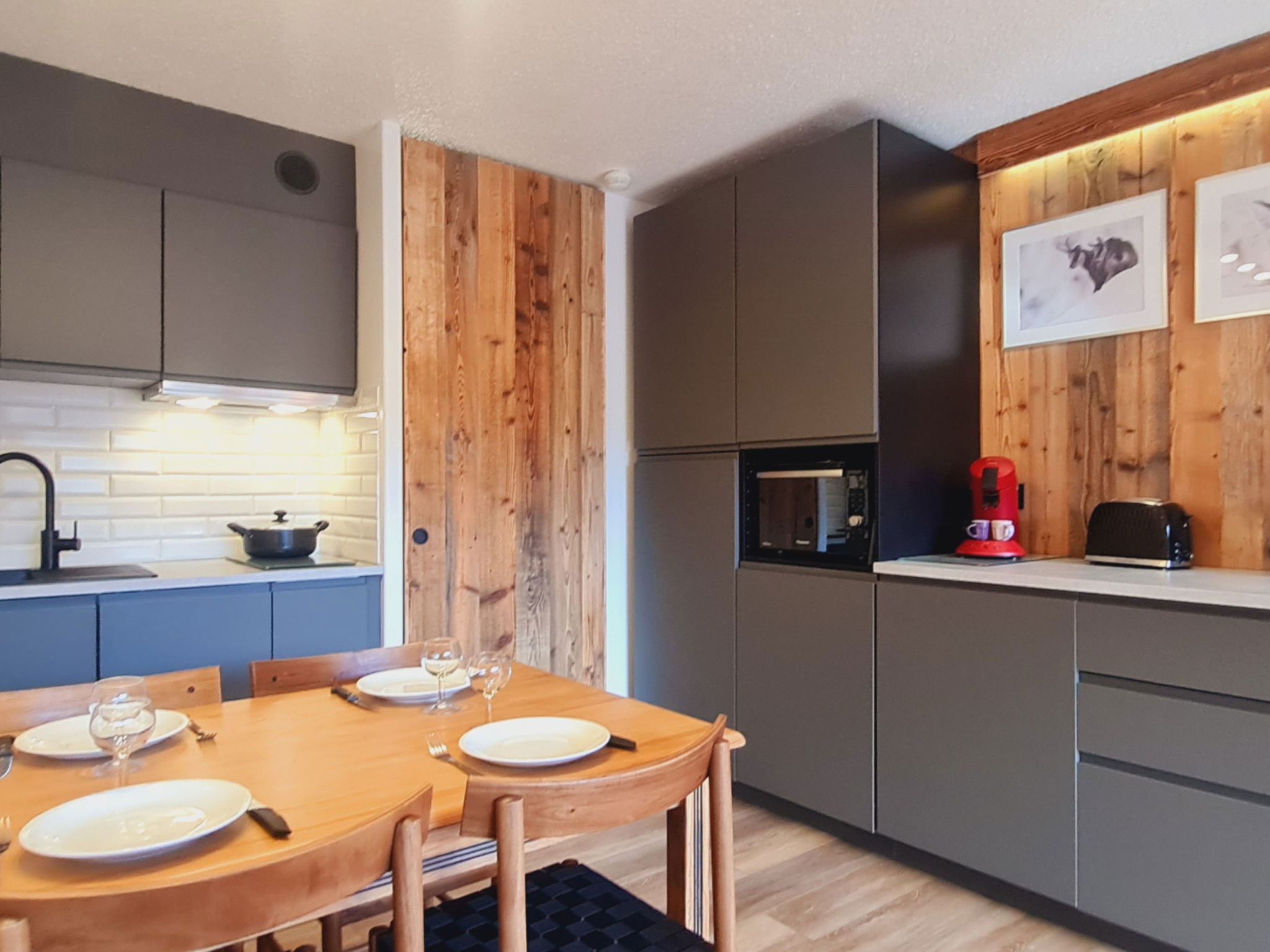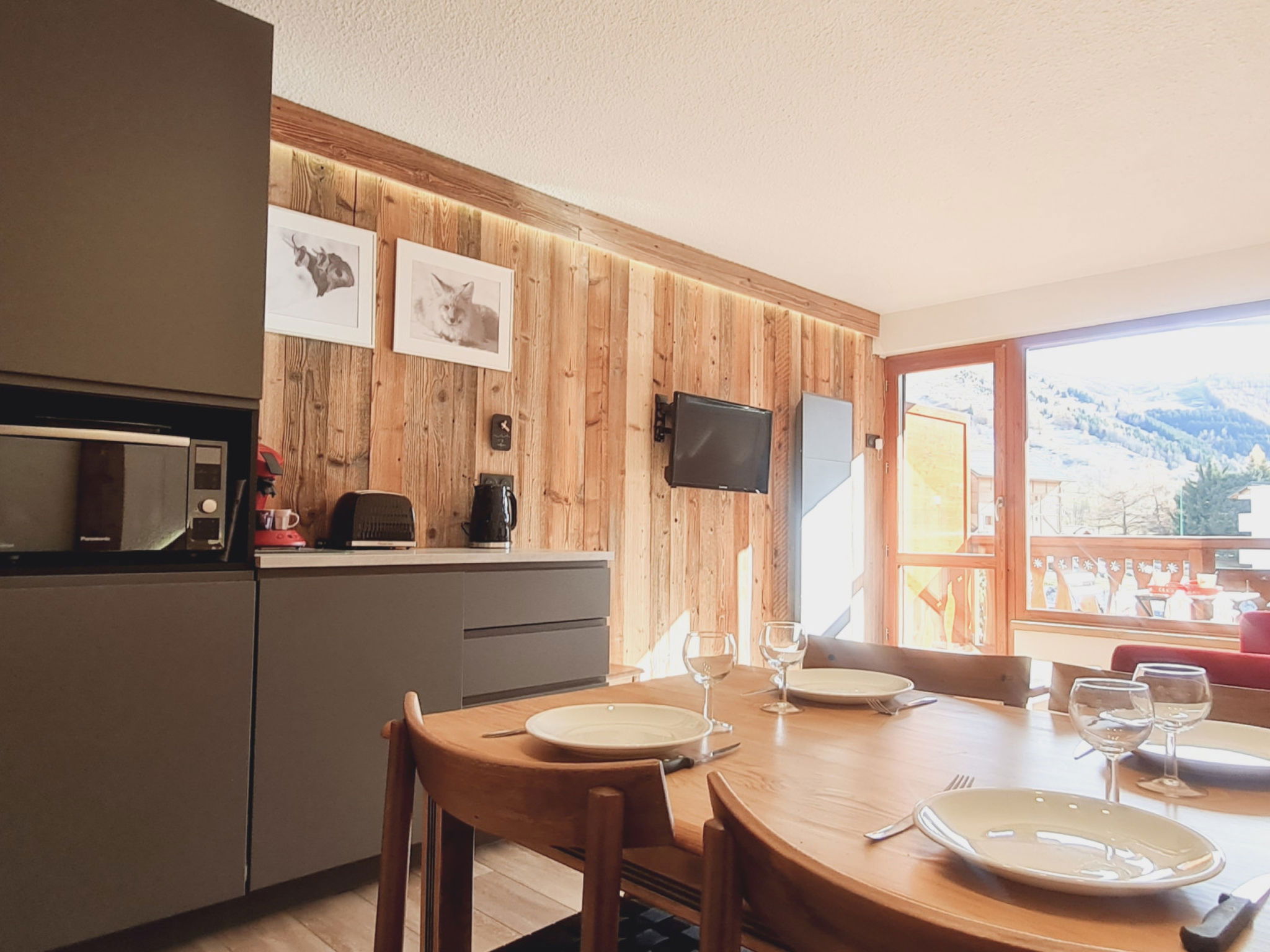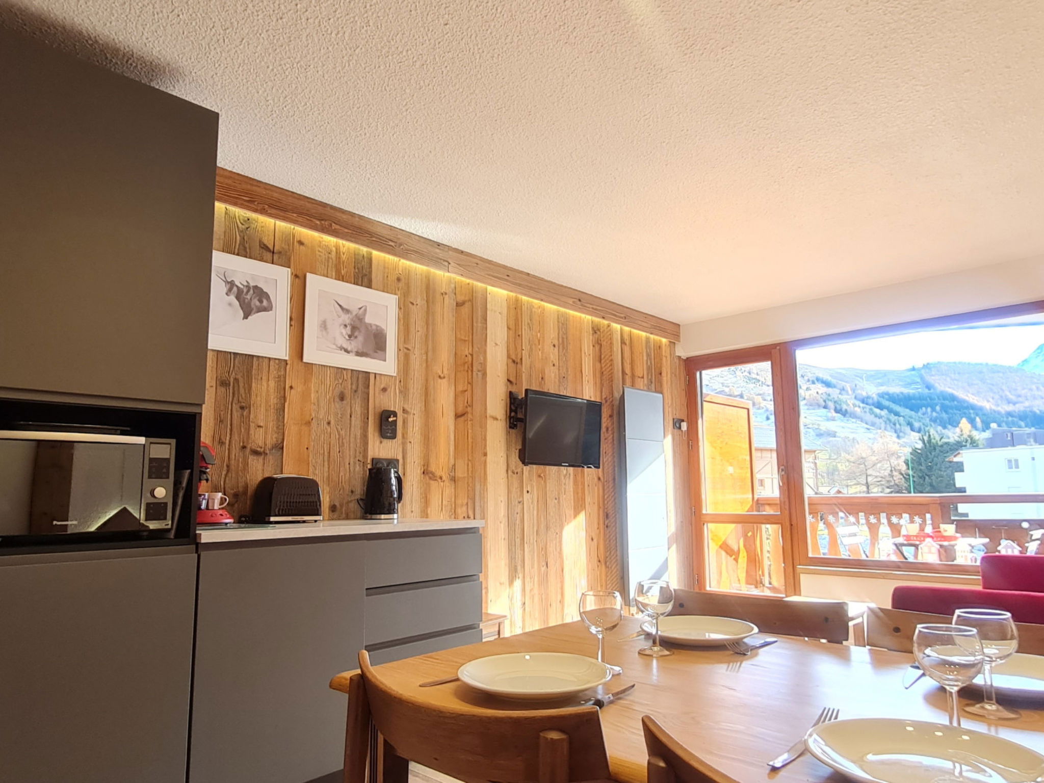 "Plein Sud C", 1-room studio 27 m2 on 1st floor. Object suitable for 4 adults. Living room with 1 sofabed and 1 x 2 bunk beds, 1 pull-out bed. Open kitchen (2 hot plates, dishwasher, microwave, electric coffee machine). Bath/WC. Balcony. View of the mountains. Please note: non-smokers only. Smoke alarm. Offer by a commercial proprietor according to Art. 155, IV, CGI 38253002991MX
